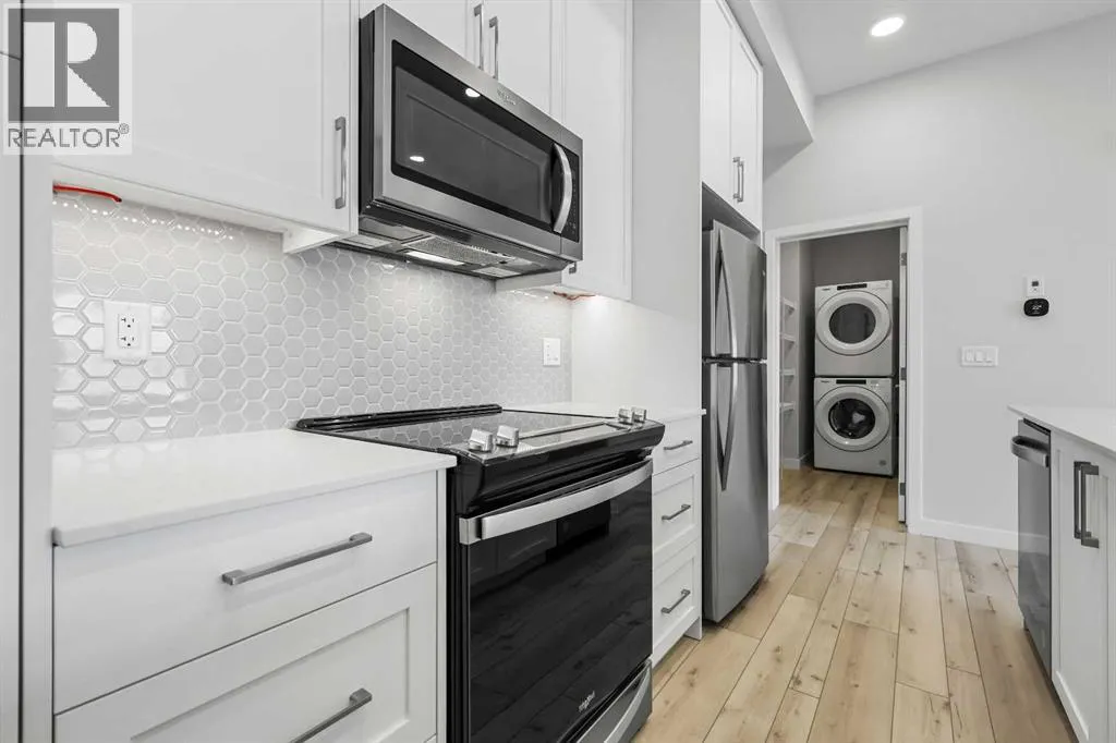 LOVE YOUR LIFESTYLE! Les Jardins by Jayman BUILT next to Quarry Park. Inspired by the grand gardens of France, you will appreciate the lush central garden of Les Jardins. Escape here to connect with Nature while you savor the colorful blooms and vegetation in this gorgeous space. Ideally situated within steps of Quarry Park, you will be more than impressed. Welcome home to 70,000 square feet of community gardens, a stunning Fitness Centre, a Dedicated dog park for your fur baby, and an outstanding OPEN FLOOR PLAN with unbelievable CORE PERFORMANCE. You are invited into a thoughtfully planned 2 Bedroom, 2 Full Bath plus expansive balcony beautiful Condo boasting QUARTZ COUNTERS throughout, sleek STAINLESS STEEL WHIRLPOOL APPLIANCES featuring a Whirlpool refrigerator with top mount freezer, dishwasher with stainless steel interior, electric freestanding range with self clean, microwave hood fan. Luxury Vinyl Plank Flooring, High End Fixtures, Smart Home Technology, A/C and your very own in suite WASHER AND DRYER. This beautiful suite offers bright bedrooms with large windows, a storage area with a hanging rack, a large Primary Suite with a walk-in closet and en suite, a spacious dining/living area with sliding doors, an open concept layout between the kitchen, dining, and living room, and ample kitchen and bathroom counter space. STANDARD INCLUSIONS: Solar panels to power common spaces, smart home technology, air conditioning, state-of-the-art fitness center, high-end interior finishings, ample visitor parking, luxurious hallway design, forced air heating and cooling, and window coverings in bedrooms. Offering a lifestyle of easy maintenance where the exterior beauty matches the interior beauty with seamless transition. Les Jardins features central gardens, a walkable lifestyle, maintenance-free living, nature nearby, quick and convenient access, smart and sustainable, fitness at your fingertips, and quick access to Deerfoot Trail and Glenmore Trail. It is located 20 minutes from downtown, minutes from the Bow River and pathway system, and within walking distance to shopping, dining, and amenities. Schedule your appointment today! (id:27476)