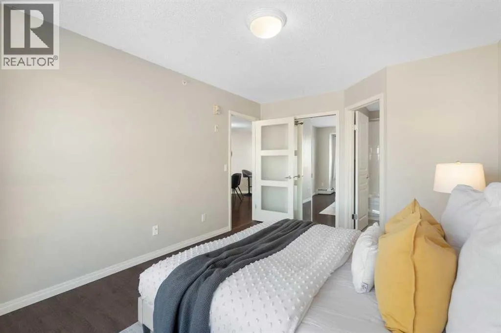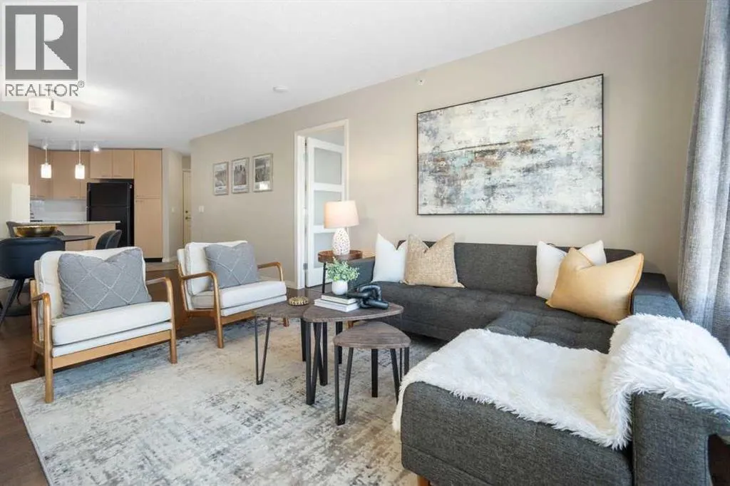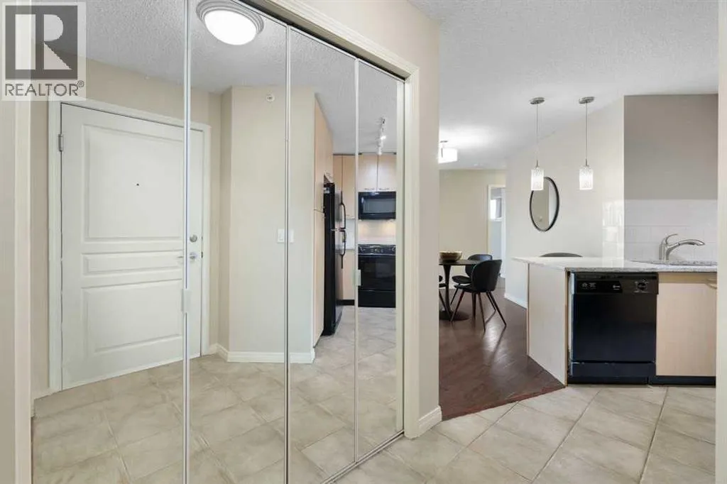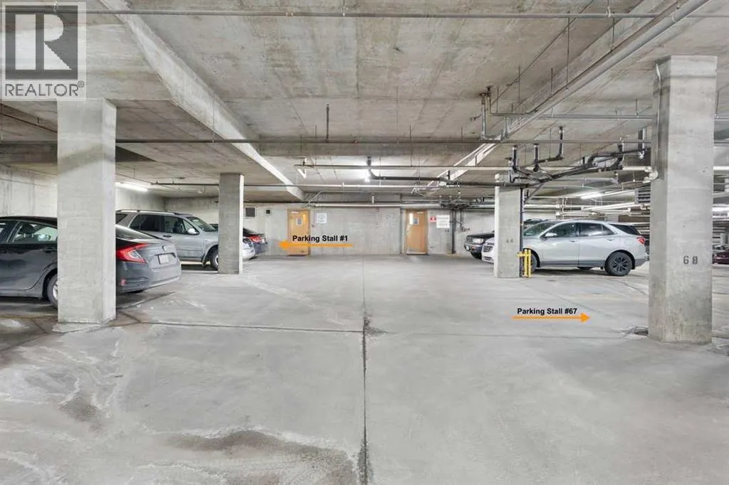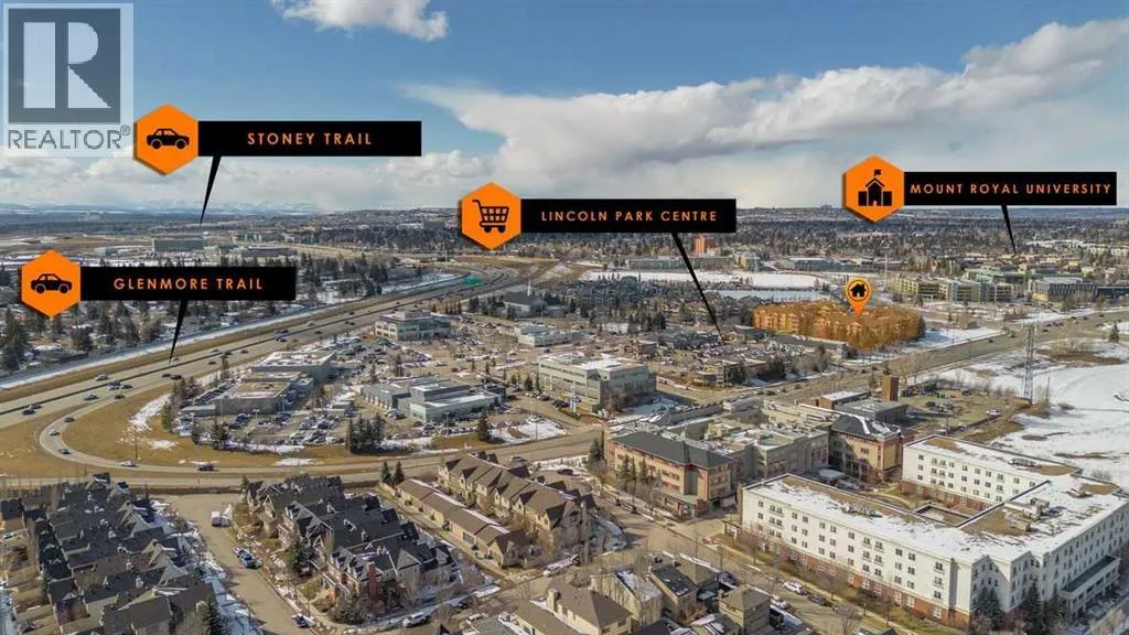 Perfect opportunity! Why rent when you can own this TOP-FLOOR CORNER UNIT w/ 2 TITLED STALLS + storage, steps from MRU! Welcome to UNIT 408 at Trafalgar House, a bright, spacious 2-BED + DEN, 2-FULL BATH condo offering +900 SQ FT of well-maintained living space. Upon entry, a generous front entry leads to a versatile bonus area that can serve as a mudroom, workspace, or cozy den with a full wardrobe closet, along with mirrored double doors concealing a standard-size washer and dryer and closet storage to keep essentials tucked away and out of sight. Just beyond, the kitchen impresses with white marbled quartz counters, ample cabinetry, and matching black appliances for a sleek, cohesive look. Island seating invites conversation while cooking and flows naturally into the dining and living areas, perfect for everyday life and when entertaining. Bright and airy, the living room is filled with plenty of natural light from the expansive windows, while a cozy gas fireplace adds warmth and charm. Step outside to the covered corner balcony, perfect for morning coffee or relaxing evenings, complete with a gas BBQ hookup for year-round grilling. The king-sized primary bedroom features a walk-through closet with custom built-ins and a private 4-piece ensuite complete with a soaker bathtub, while the second bedroom is set across the unit beside the main bath, ideal for privacy and separation when hosting guests, roommates, or family. This standout unit includes two titled heated underground parking stalls (a rare find and perk in the building) and an assigned secure storage locker, with convenient access to amenities: gym, party room, tire storage room, car wash bay, bike storage, and a landscaped courtyard retreat w/ gazebo. Located in Lincoln Park, this pet-friendly condo is minutes from major routes, transit, shops, and dining, ideal for walking, biking or casual strolls. Whether youâre a first-time home buyer, student, professional, investor, or downsizer seeking low-mainte nance living, this home checks every box: the desirable blend of size, layout, and lifestyle in a top-floor gem offering greater privacy, no overhead noise, elevated views, and lasting value. Check out the online virtual tour, schedule your private showing today, and donât miss the chance to own the spectacular Unit 408! (id:27476)