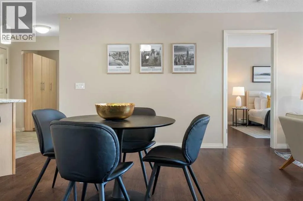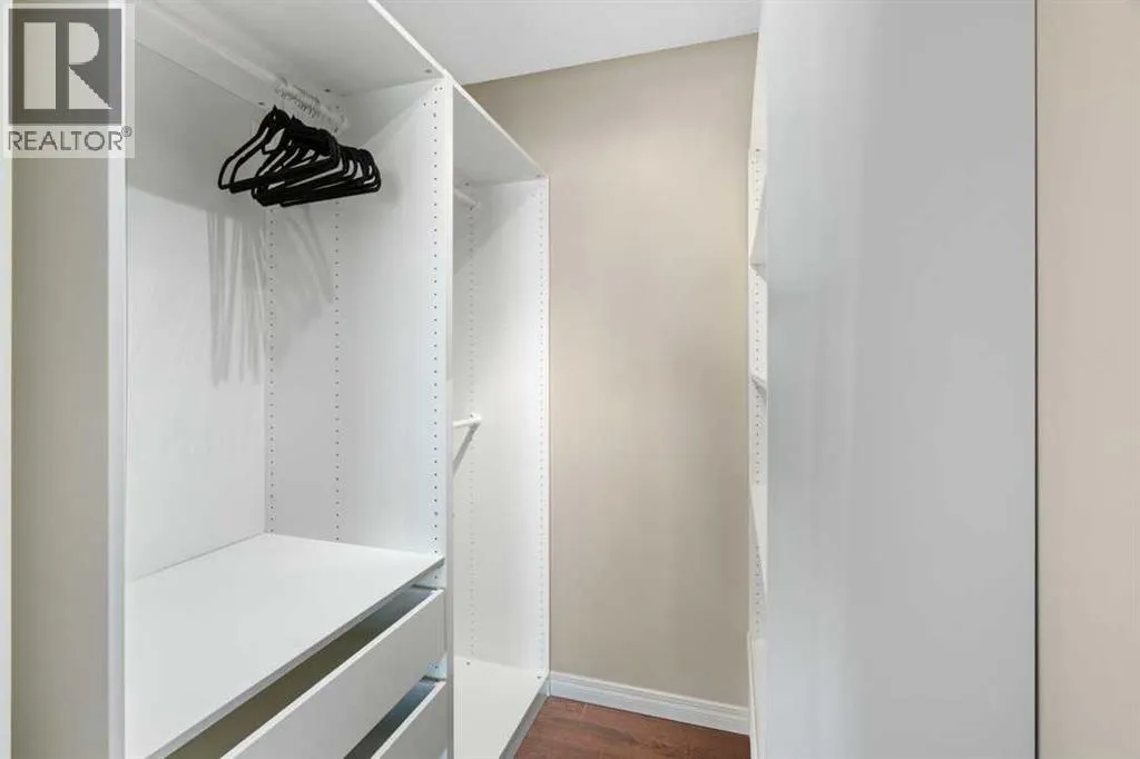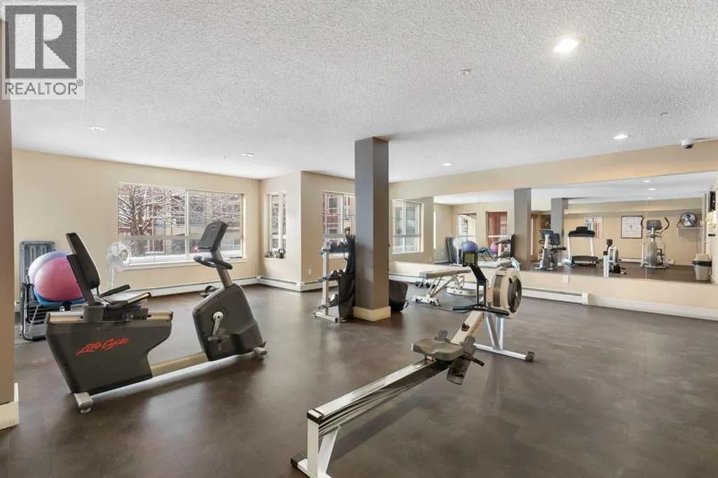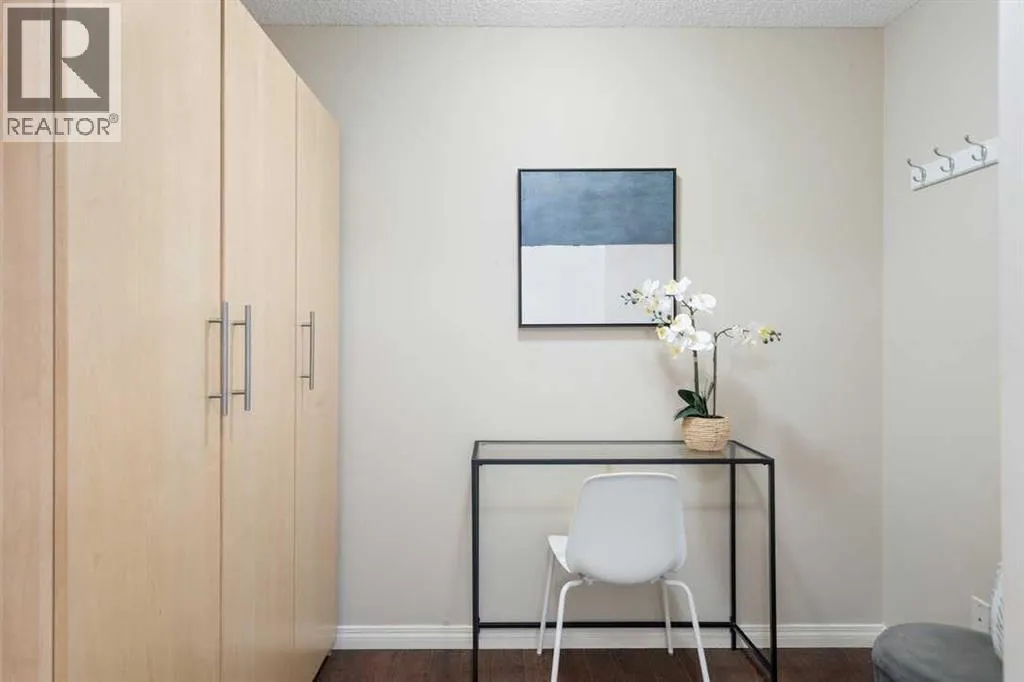 Perfect opportunity! Why rent when you can own this TOP-FLOOR CORNER UNIT w/ 2 TITLED STALLS + storage, steps from MRU! Welcome to UNIT 408 at Trafalgar House, a bright, spacious 2-BED + DEN, 2-FULL BATH condo offering +900 SQ FT of well-maintained living space. Upon entry, a generous front entry leads to a versatile bonus area that can serve as a mudroom, workspace, or cozy den with a full wardrobe closet, along with mirrored double doors concealing a standard-size washer and dryer and closet storage to keep essentials tucked away and out of sight. Just beyond, the kitchen impresses with white marbled quartz counters, ample cabinetry, and matching black appliances for a sleek, cohesive look. Island seating invites conversation while cooking and flows naturally into the dining and living areas, perfect for everyday life and when entertaining. Bright and airy, the living room is filled with plenty of natural light from the expansive windows, while a cozy gas fireplace adds warmth and charm. Step outside to the covered corner balcony, perfect for morning coffee or relaxing evenings, complete with a gas BBQ hookup for year-round grilling. The king-sized primary bedroom features a walk-through closet with custom built-ins and a private 4-piece ensuite complete with a soaker bathtub, while the second bedroom is set across the unit beside the main bath, ideal for privacy and separation when hosting guests, roommates, or family. This standout unit includes two titled heated underground parking stalls (a rare find and perk in the building) and an assigned secure storage locker, with convenient access to amenities: gym, party room, tire storage room, car wash bay, bike storage, and a landscaped courtyard retreat w/ gazebo. Located in Lincoln Park, this pet-friendly condo is minutes from major routes, transit, shops, and dining, ideal for walking, biking or casual strolls. Whether youâre a first-time home buyer, student, professional, investor, or downsizer seeking low-mainte nance living, this home checks every box: the desirable blend of size, layout, and lifestyle in a top-floor gem offering greater privacy, no overhead noise, elevated views, and lasting value. Check out the online virtual tour, schedule your private showing today, and donât miss the chance to own the spectacular Unit 408! (id:27476)