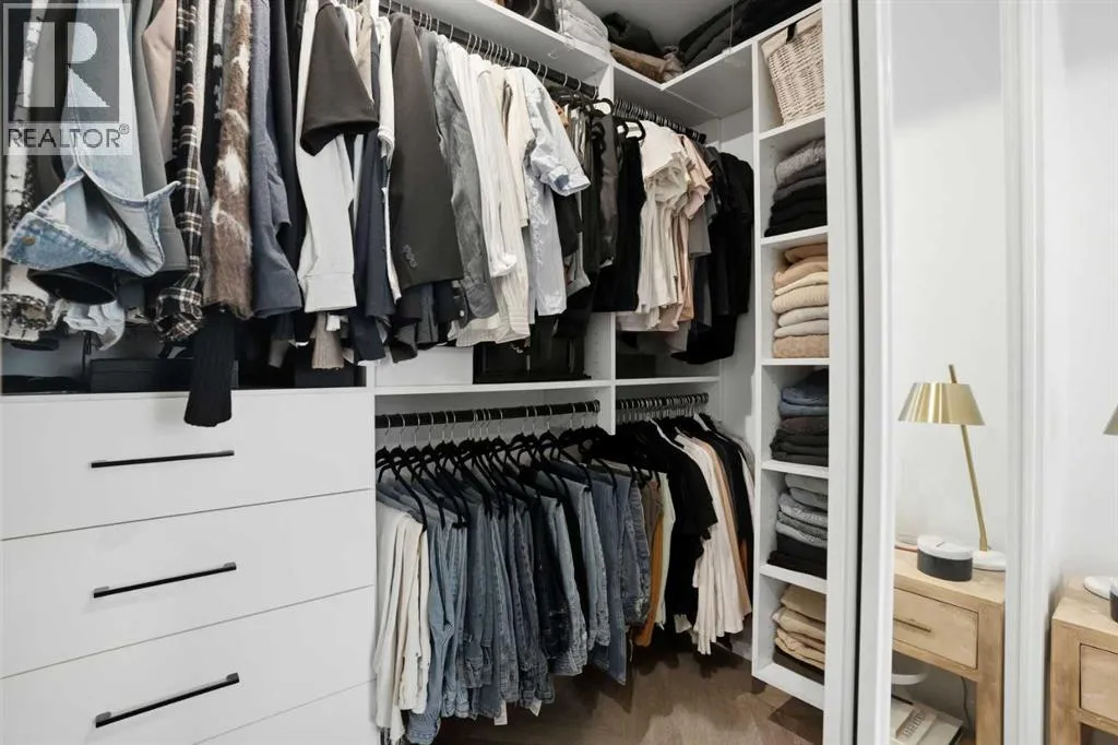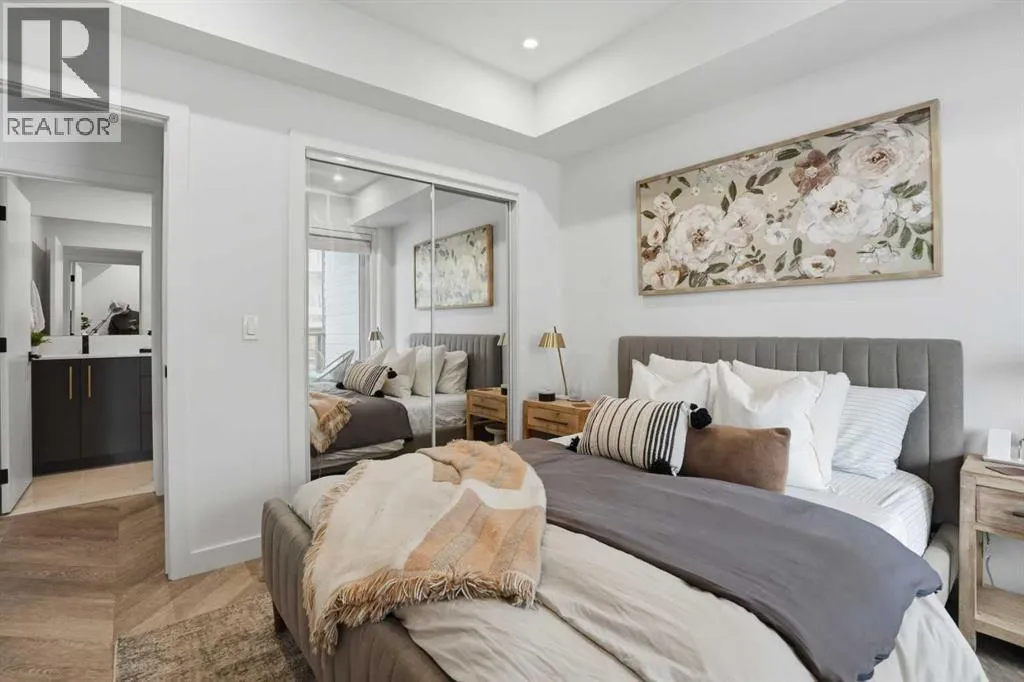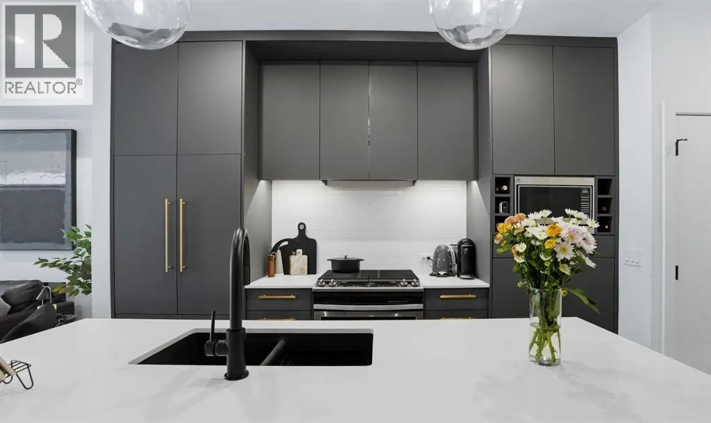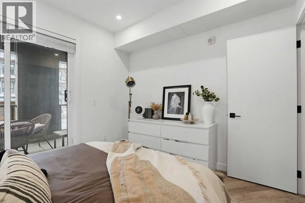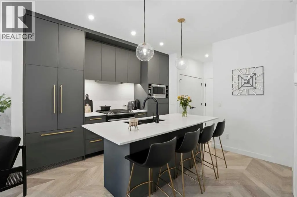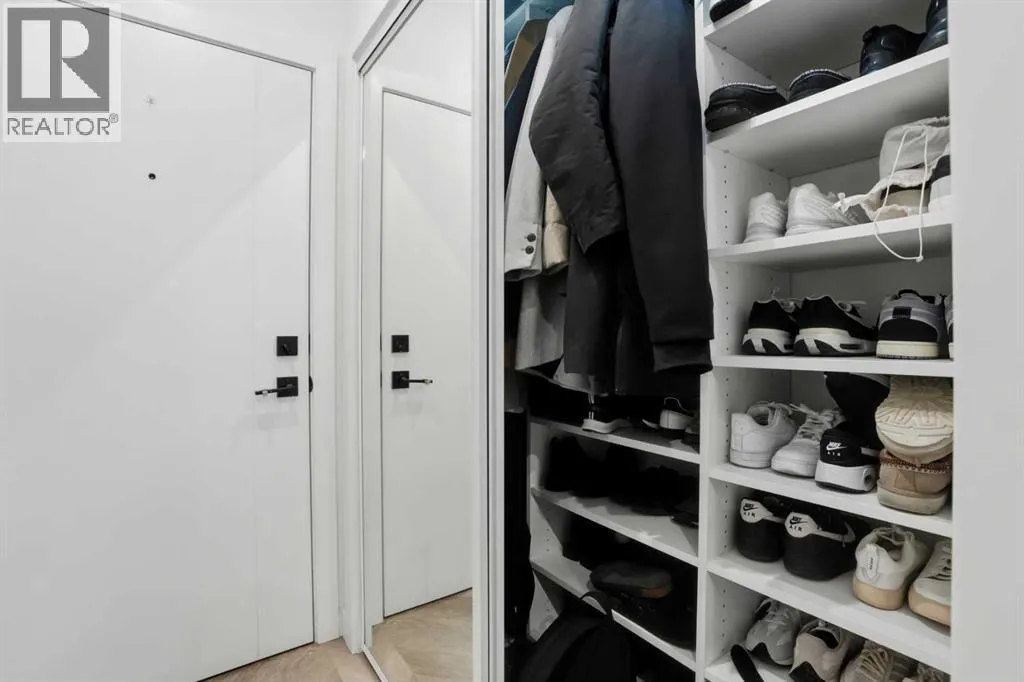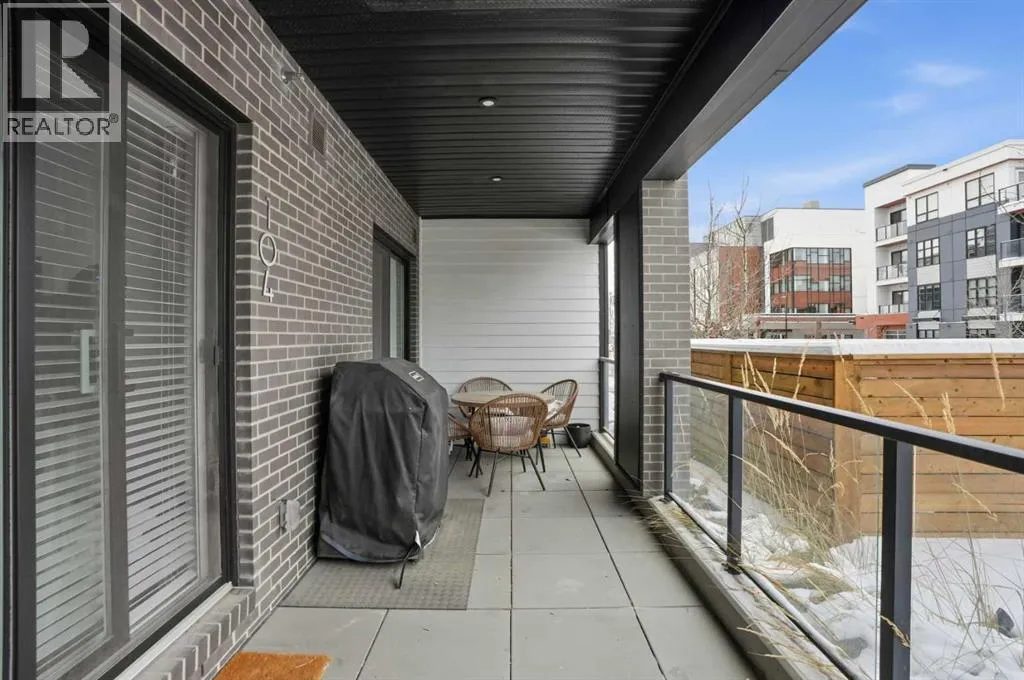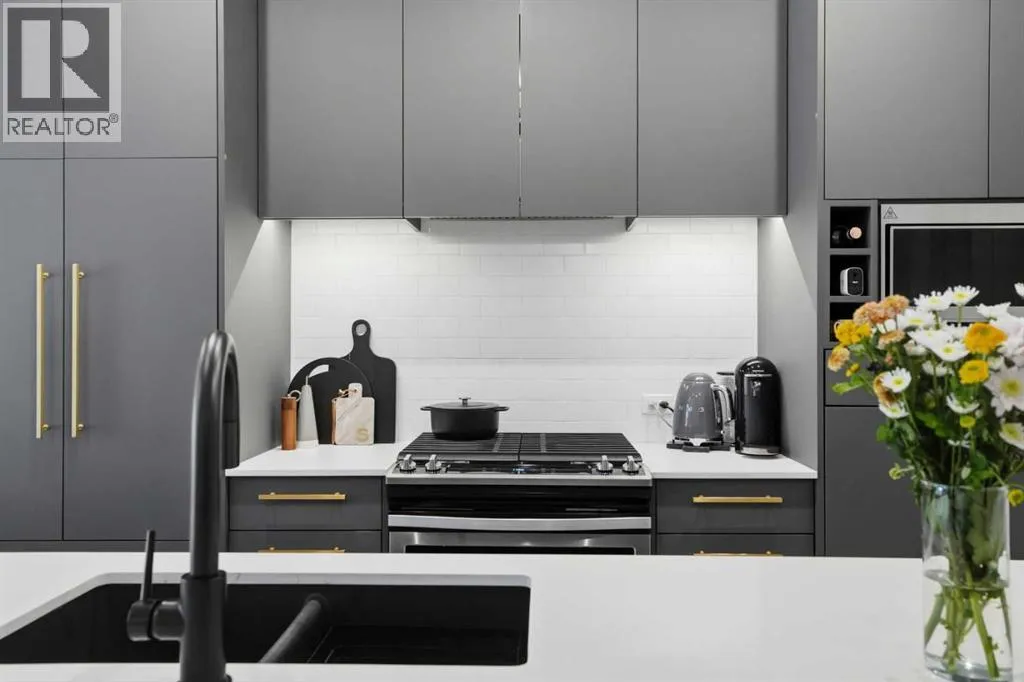 Step into contemporary living in one of Calgaryâs most sought after urban communities, the award-winning UNIVERSITY DISTRICT. This beautifully crafted TWO bedroom, one bathroom home offers stylish functionality and the rare benefit of a PRIVATE GROUND LEVEL ENTRANCE, creating the perfect blend of convenience and comfort.Inside, the thoughtfully designed layout welcomes you with soaring 9 foot ceilings, oversized windows with custom blinds, and a bright open-concept living area ideal for everyday living or hosting friends. The kitchen stands out with sleek quartz counters, full height soft close cabinetry, paneled appliances, a gas range, designer pendant lighting, and a large island that doubles as a casual dining space.Both bedrooms are spacious and versatile, whether used as sleeping quarters, a home office, or a guest room. The closets have been customized by CALIFORNIA CLOSETS, with full warranty remaining. The bathroom is elegantly finished with modern tilework and premium fixtures. Enjoy the everyday ease of in suite laundry with full sized washer and dryer. Luxury vinyl plank flooring throughout reinforces the homeâs modern aesthetic and durability.A highlight of this unit is the expansive covered patio with a gas hookup, perfect for outdoor dining, relaxing mornings, or entertaining year-round, all with effortless access thanks to the street-front walkout design.Esquire by Truman Homes offers exceptional resident amenities including a fully equipped fitness centre, bike storage and repair stations, and the building is professionally managed for peace of mind. A titled parking stall in the heated underground parkade, and an independent storage locker are also included.Live just steps to an incredible mix of shops, cafés, fitness studios, dining, and entertainment. Grab groceries at Save-On-Foods, sip at Monogram Coffee, enjoy brunch at OEB, or catch a movie at Cineplex VIP â all without getting in your car. Endless green spaces, dog parks, and the B ow River pathway network elevate your outdoor lifestyle. Plus, the University of Calgary, Alberta Childrenâs Hospital, Foothills Medical Centre, and Market Mall are moments away, with quick transit or driving access to downtown.Offering professional appeal, a walkable lifestyle, and refined finishes throughout, this home is the ultimate choice for first time buyers, downsizers, and savvy investors alike. Welcome to University District living at its finest. (id:27476)