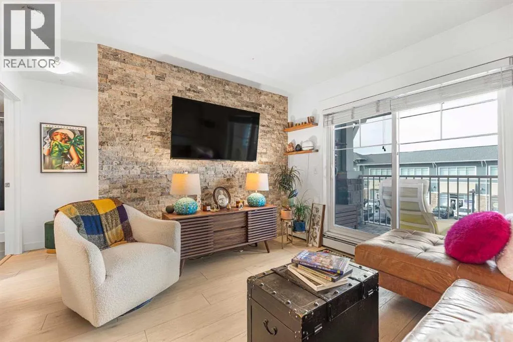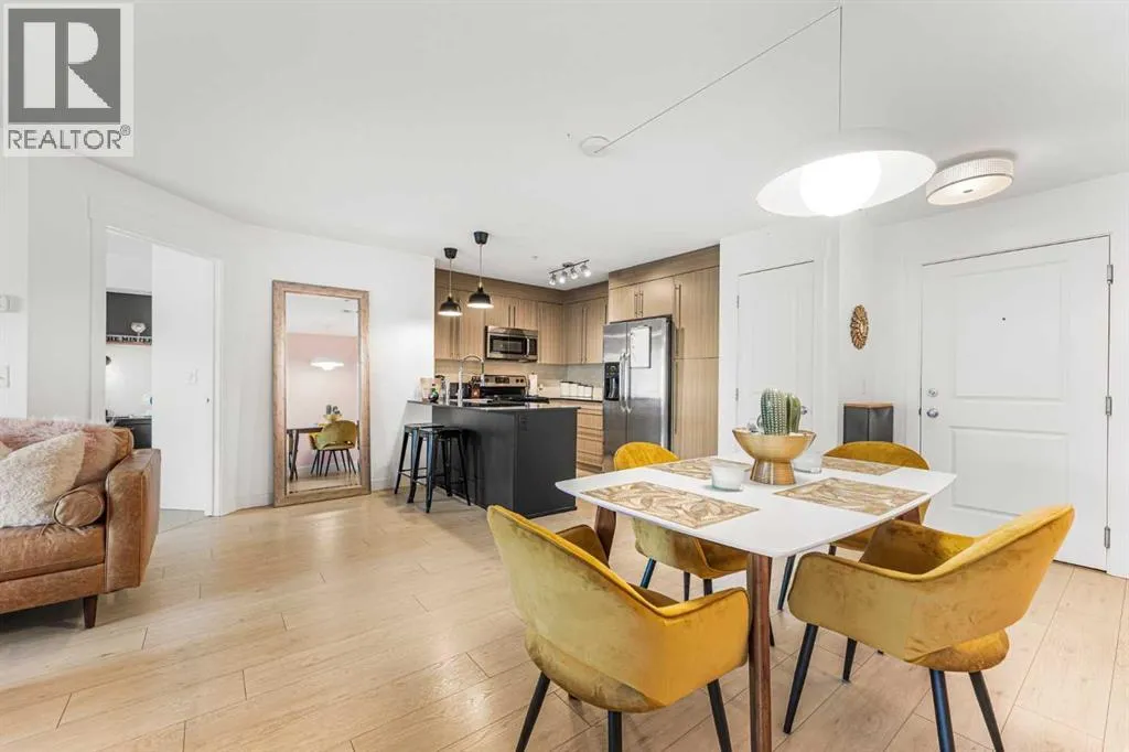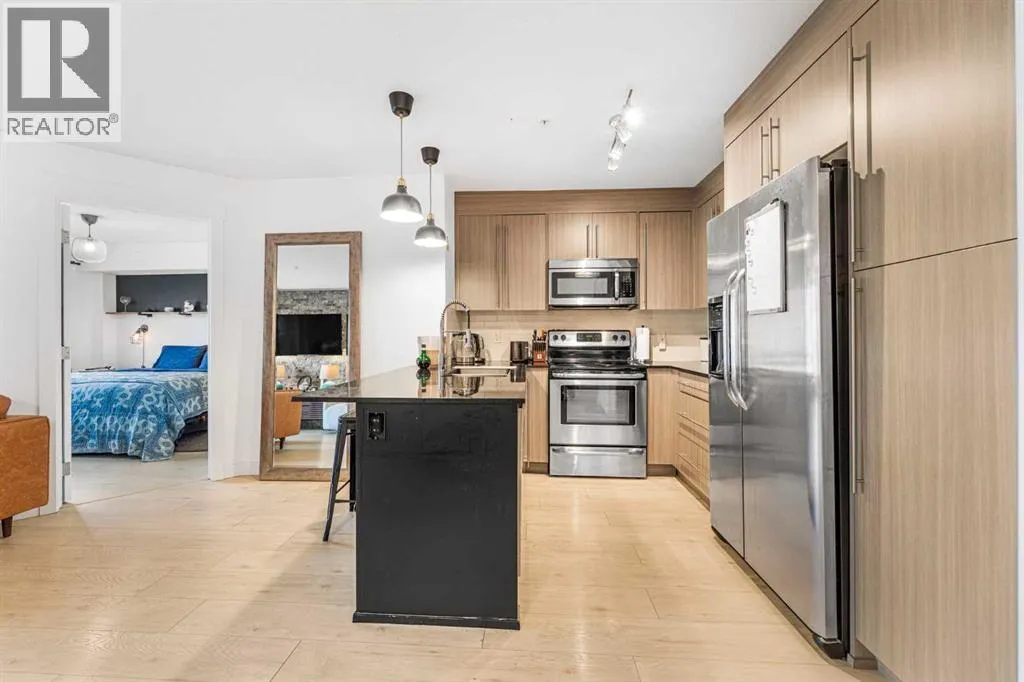 Welcome to 51 Oak! This stunning West-facing, 3rd-floor showstopper delivers pure STYLE & PIZZAZZ. Featuring a spacious 2 Bed (+ DEN), 2 Bath layout, this home is defined by airy laminate flooring, custom feature walls, and upgraded designer lighting throughout.The modern kitchen is a culinary dream, boasting floor-to-ceiling cabinetry, granite countertops, stainless steel appliances, and a sleek eat-in bar for quick meals. Flow seamlessly into the formal dining room, or retreat to the cozy, quiet den with discreetly integrated laundry. The living area serves as the heart of the home, anchored by a striking stone feature wall and sliding doors that open to your sun-drenched balcony.This unit offers the ultimate split-bedroom floorplan, ensuring superior privacy by separating the sleeping quarters with the living space. The primary retreat features walk-through his/her closets and a private ensuite, while the second bedroom is generously sized with adjacent bath access. Located steps from shopping and a short stroll to the Mahogany Beach Club, this is an unbeatable lifestyle opportunity. Call your REALTOR® todayâat this price, it won't last long! (id:27476)