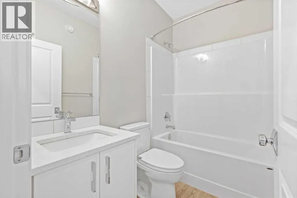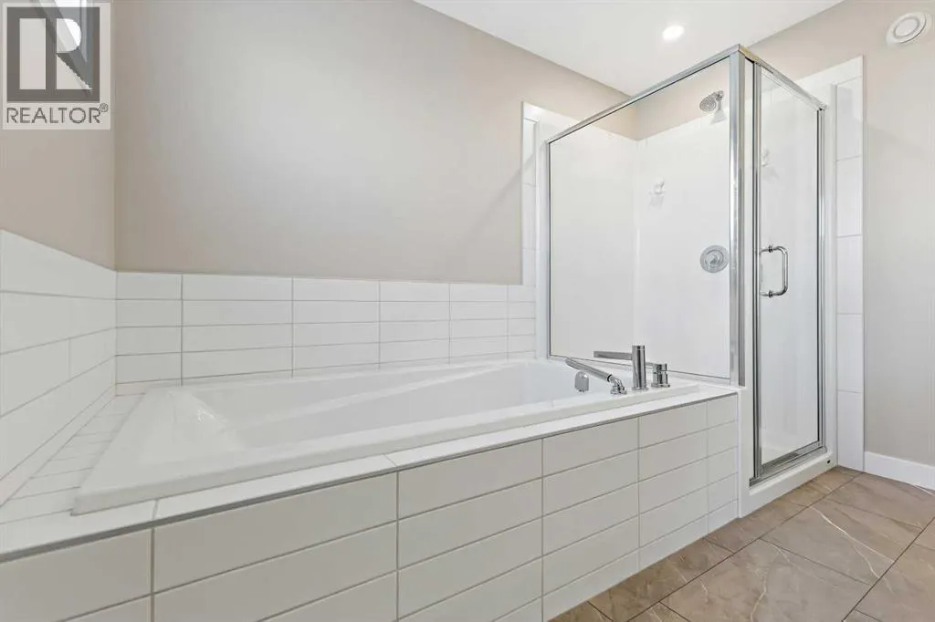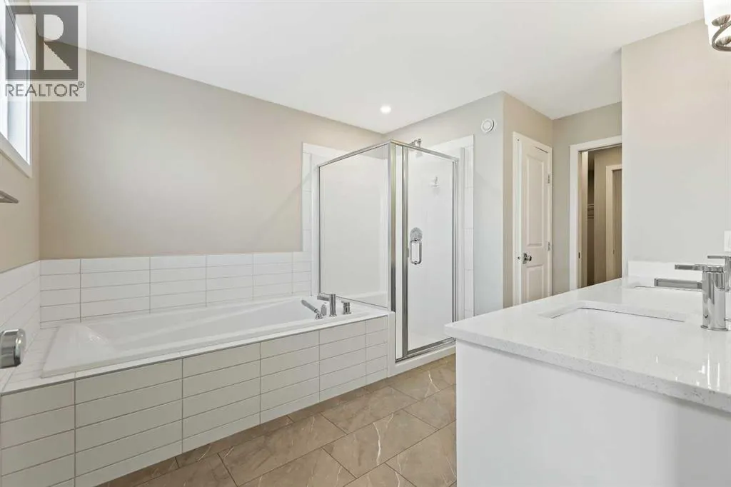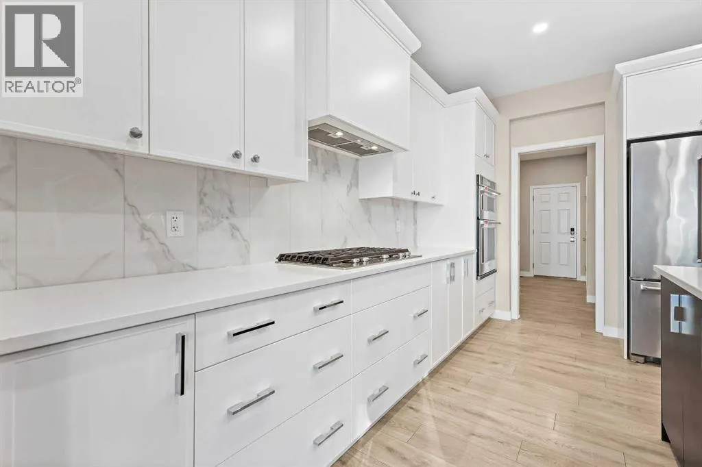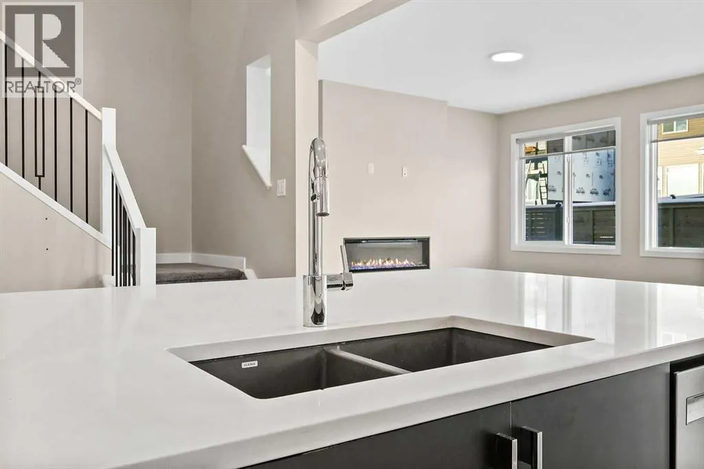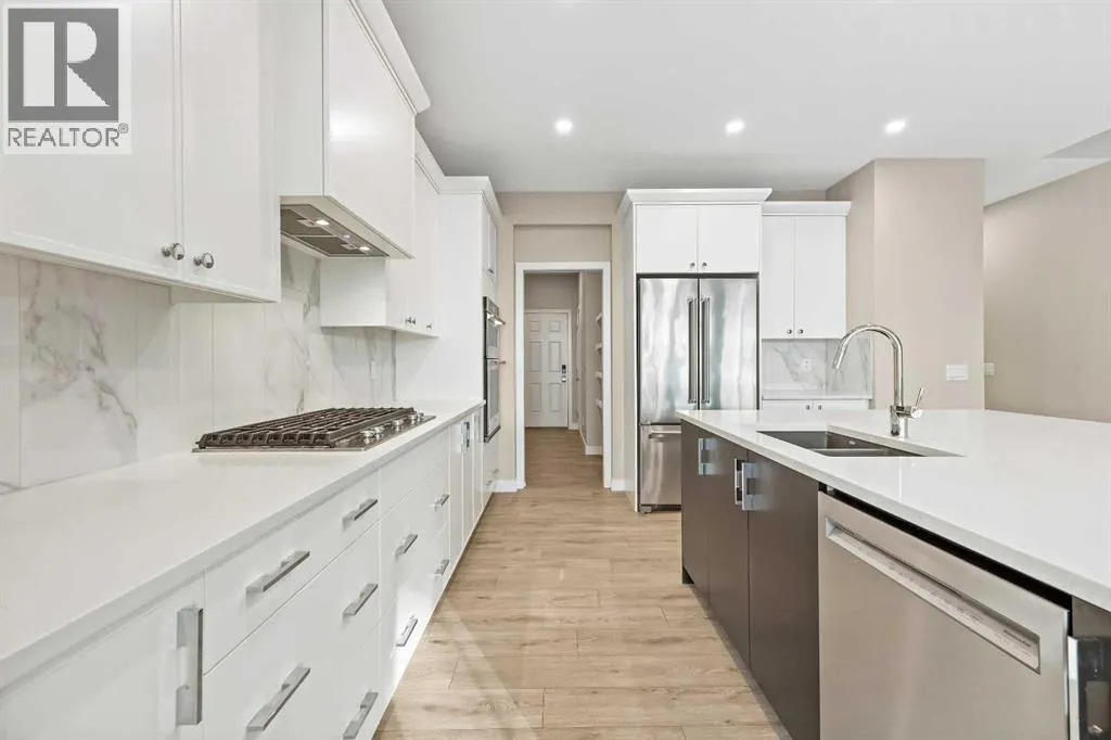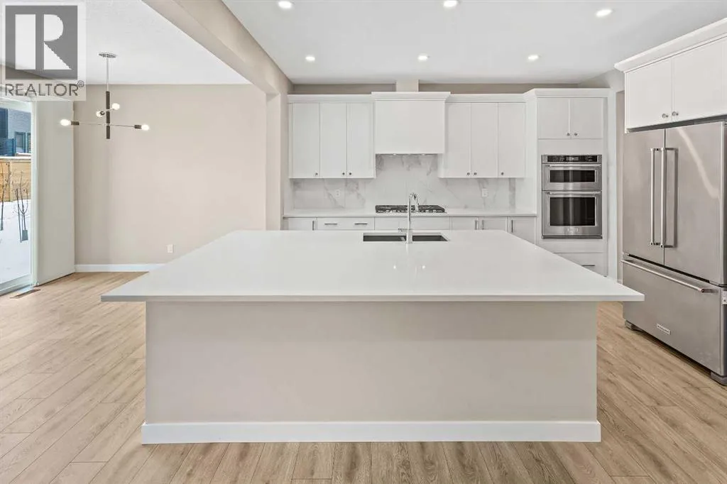 ** 164 Wolf River Drive SE will be sure to impress! **JAYMAN CERTIFIED KARMA 24 FLOOR PLAN** Boasting 2279+ square feet of gorgeous upgraded Fit and Finish design and décor that will appeal to the most discerning buyer. Immediately upon entering, you are invited into an open floor plan that exudes beauty. Seamlessly transitioning to the 4TH BEDROOM and FULL BATH, could easily be your Den/Home Office. The main floor plan opens up to showcase a stunning, oversized, Elegant White Quartz island framed by the same stunning quartz countertops around the perimeter. Boasting stunning Glacier White cabinets, stylish chrome hardware, soft-close drawers, and a beautiful full tile backsplash, the kitchen will check off all your boxes. Sleek stainless steel KitchenAid appliance package includes a 36" gas cooktop, built-in wall oven with convection microwave, French door refrigerator with water dispenser and ice maker, dishwasher with stainless steel interior and Broan power pack built-in hood fan with designer shroud. Complimenting the main floor, you will discover Divine Maestro Forte laminate flooring throughout, with 12x24 Divine Luxury Vinyl tile in the Main Bath, en suite, and laundry. To complete this outstanding main-floor area design, you will also find a cozy electric fireplace and a sliding glass patio door that will lead you out to your future backyard. The upper level features a centralized Bonus Room with a tray ceiling, along with three more sizeable bedrooms, with the primary suite offering a 5-piece 'spa-like' en suite. Dual vanities, oversized soaker tub, stand-alone shower, and a spacious walk-through closet to the 2nd-floor laundry for ease of access. Excellent design for the busy family. James Hardie board on the front exterior, along with the elevated contemporary prairie elevation and EXTRA Fit & FINISH. Enjoy the DOUBLE FRONT ATTACHED GARAGE and CONVENIENT SIDE ENTRANCE. Wolf Willow is a highly sought-after community located in the Bow River Valley adjacen t to the Blue Devil Golf Course. Breath-taking and inspiring with plans to include parks, schools and additional amenities, Wolf Willow offers 9km of pathways alone. Not to mention the abundance of trails surrounding the neighbourhood. A quiet retreat allowing you to enjoy nature's best while being close to the big city amenities and quick access to McLeod Trail and 22X. Welcome Home! (id:27476)