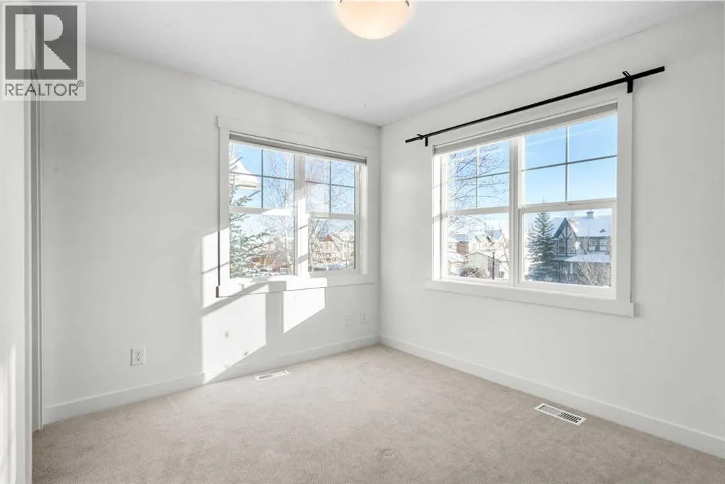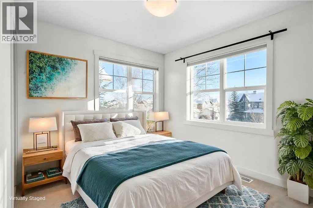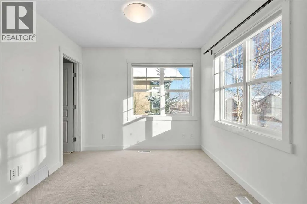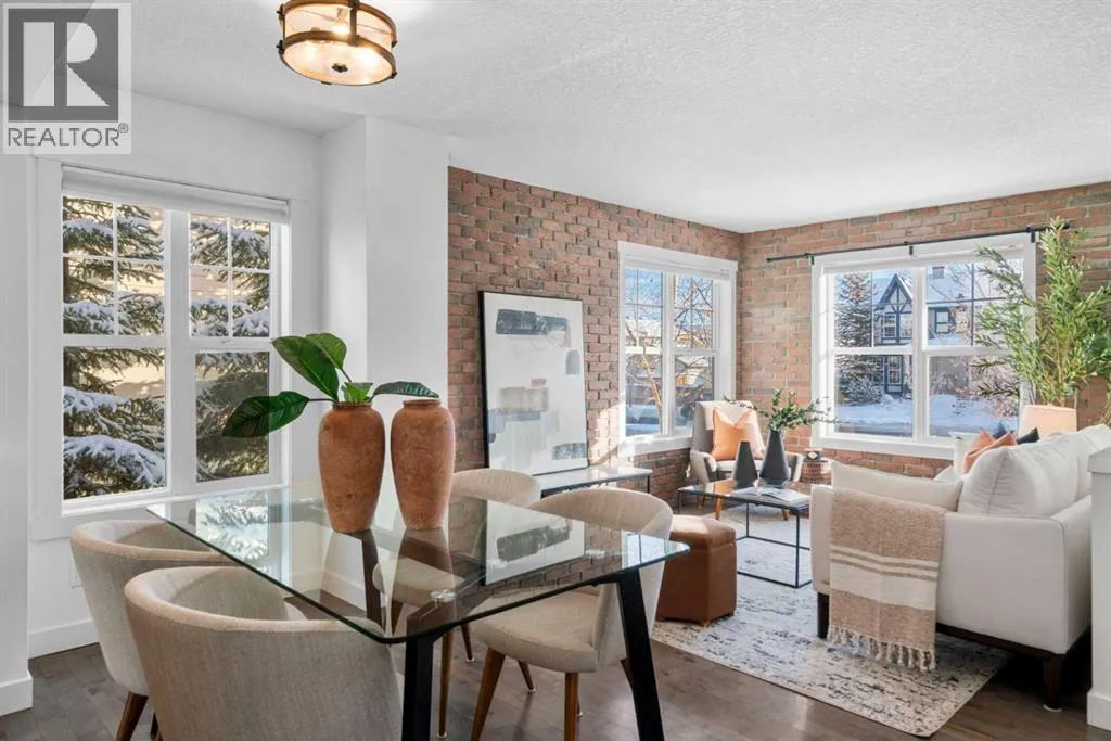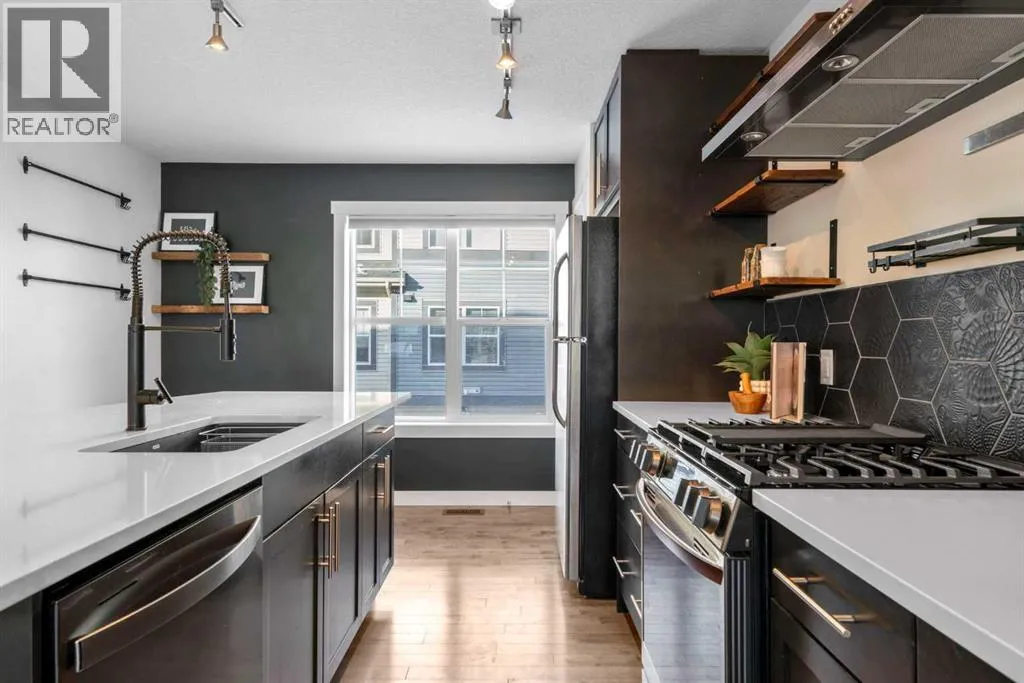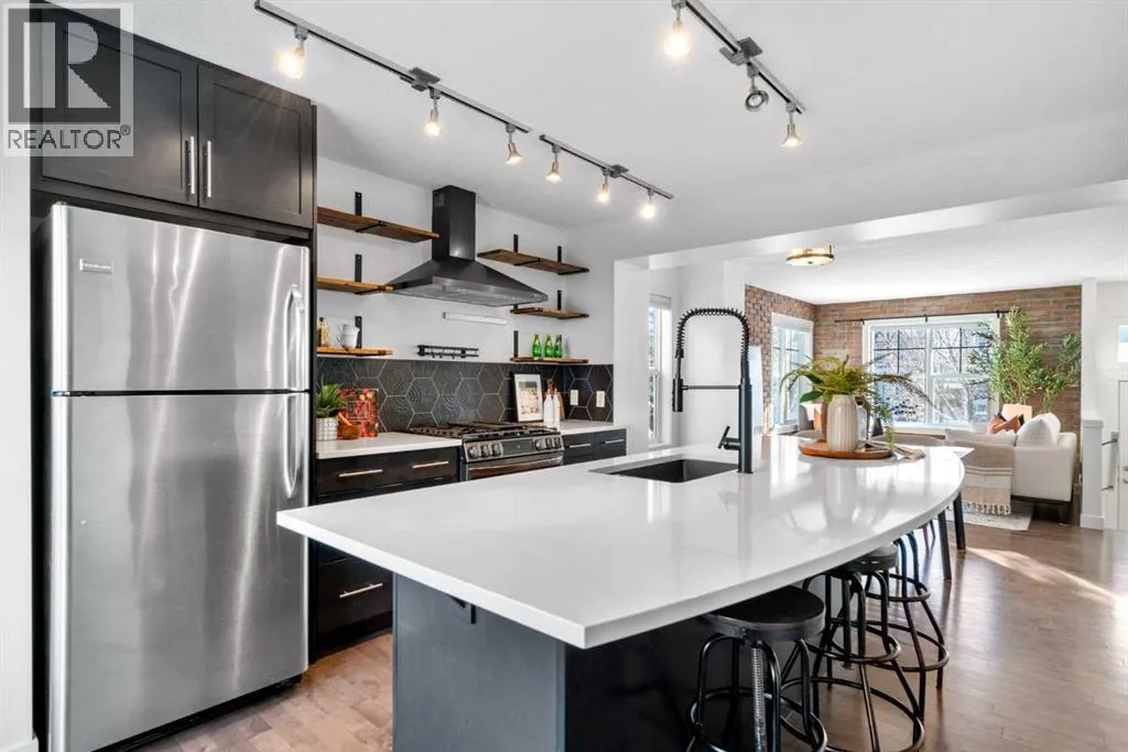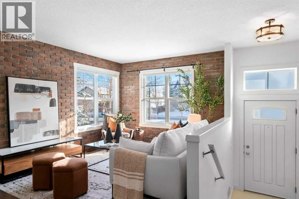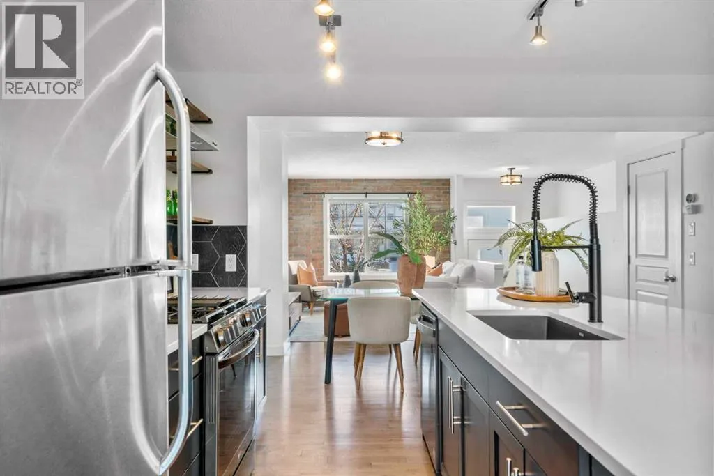 This stunning END UNIT in McKenzie Towne offers the best energy, light, and an unmistakable New Yorkâinspired vibe that sets it apart from anything else on the market. Sunlight pours through an abundance of oversized windows, hitting the rich hardwood floors and warming the entire main level with an inviting, urban sophistication. The living room becomes an instant focal point with its exposed brick feature walls - both chic and comforting - creating the perfect backdrop for slow mornings with coffee or lively evenings hosting friends. Just beyond, the space flows effortlessly into a kitchen designed for those who love both style and function. Sleek black cabinetry contrasts beautifully against crisp white quartz countertops, while open shelving and pot racks bring character and culinary charm. Stainless steel appliances including GAS STOVE reflect the light and elevate the space, making every meal feel intentional and elevated. The dining area sits right in the heart of the home, grounding the open-concept layout with a sense of connection and ease. Upstairs, two generously sized bedrooms offer the luxury of privacy, each with its own walk-in closet and four-piece ensuite. In between the bedrooms is a good sized flex space - offering a great spot for a desk or reading nook. The convenience of upper-floor laundry adds to the everyday ease. Downstairs, the lower level opens into a spacious DOUBLE ATTACHED GARAGE - a highly valued feature - paired with an impressive utility and storage area that gives you room for bikes, gear, seasonal decor, or even a future home gym. Enjoy your morning coffee in the front fenced patio space - notice the Central AC unit to keep you cool in the hot summer days! Everything has its place here. McKenzie Towne delivers the kind of community homeowners fall in love with. Walkable streets, charming architecture, and a true small-town feel create a sense of belonging thatâs hard to find in the city. Boutiques, cafés, and restaurants in High Street make weekend strolls a delight, while nearby parks, ponds, and pathways invite you outdoors year-round. Add in quick access to major routes, transit, schools, and amenities, and itâs easy to see why people stay in McKenzie Towne for years. End units like this donât come around often. Ready to experience it for yourself? Come see why this townhouse is the one you wonât want to let pass by. (id:27476)