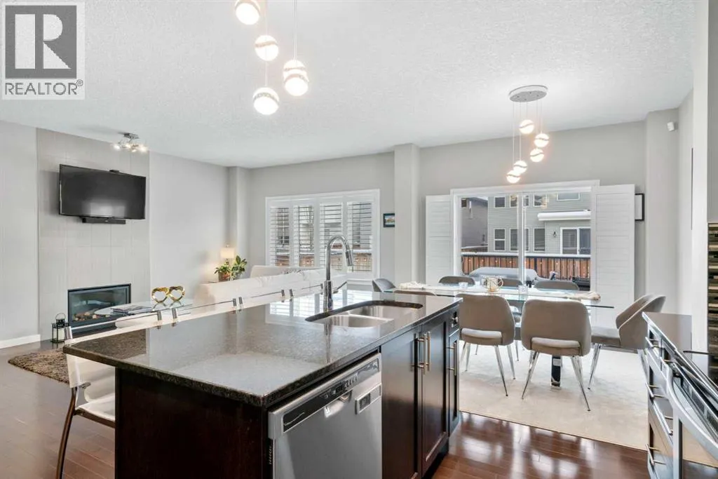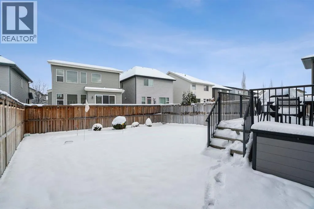 In the heart of Walden, one of Calgaryâs most loved family communities, this beautifully maintained Centrix built home offers space, comfort, and polished style. From the moment you step inside, the gleaming hardwood floors and rich brown cabinetry set a warm, comforting tone, while every room reflects true pride of ownership. The main floor unfolds with effortless flow: a bright open-concept living space where the kitchen, dining room, and living room connect seamlessly. Pot lights and pendant lights illuminate the kitchenâs stainless steel appliances and large island, while the dining area opens onto a large rear deck, creating a natural extension for summer evenings and effortless entertaining. Tucked at the front, a versatile flex room adapts to your lifestyle - home office, playroom, or creative studio. And at the back of the home, the living room draws you in with its gas fireplace making the entire space feel grounded and intimate. Upstairs, the homeâs thoughtful design really shines. A generous bonus room anchors the level, giving families room to spread out and recharge. The primary suite feels like a true retreat with large walk-in closet, abundant natural light, and a well-appointed 5-pc ensuite w/ soaker tub and walk-in shower. Two additional bedrooms, a 4 pc bathroom, and upper-floor laundry featuring a nearly new washer and dryer, complete this level. The developed basement expands your living experience with a spacious rec room, a fourth bedroom with a walk-in closet, a Marriott Hotel inspired 3 pc bathroom, and excellent storage ideal for multigenerational living, teens, guests, or simply stretching into that extra breathing room. Then there's the backyard - your private sanctuary featuring a custom putting green that turns downtime into fun time. Exterior soffit Christmas lighting ensures the home looks stunning year-round, Central AC keeps you cool in the summer and shutter-style blinds inside add a layer of elevated finishing that completes the ho meâs polished feel. Smart home compatible lights, thermostat, garage door, etc - all can be controlled by a Google Console. Extra long driveway can fit 4 compact cars/SUVs. Set on a quiet, family-friendly street in vibrant Walden with parks, paths, restaurants, and amenities all just moments away. Enjoy quick and convenient access to major routes, including Stoney Trail and Macleod Trail, making commuting and exploring the city a breeze. This home wonât last long. Come experience the lifestyle waiting for you here. Book your showing today. (id:27476)