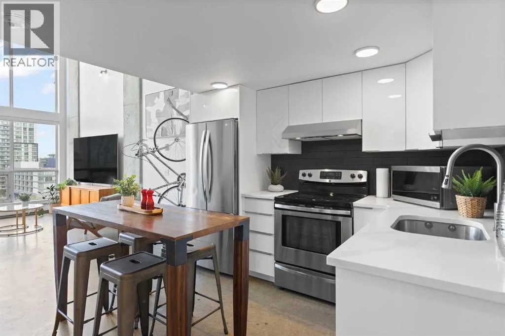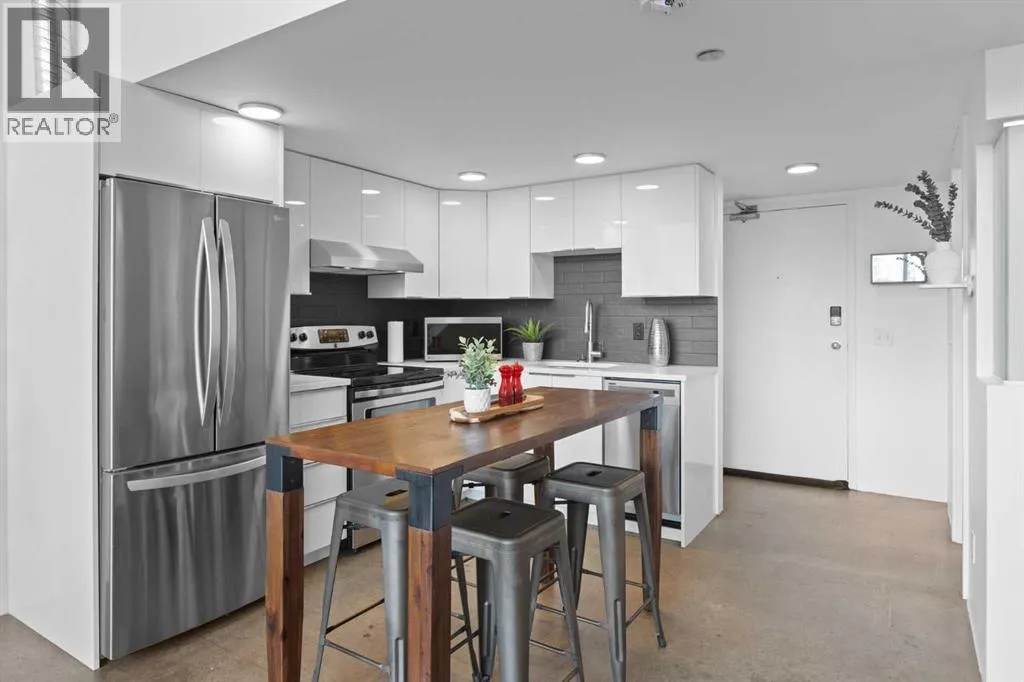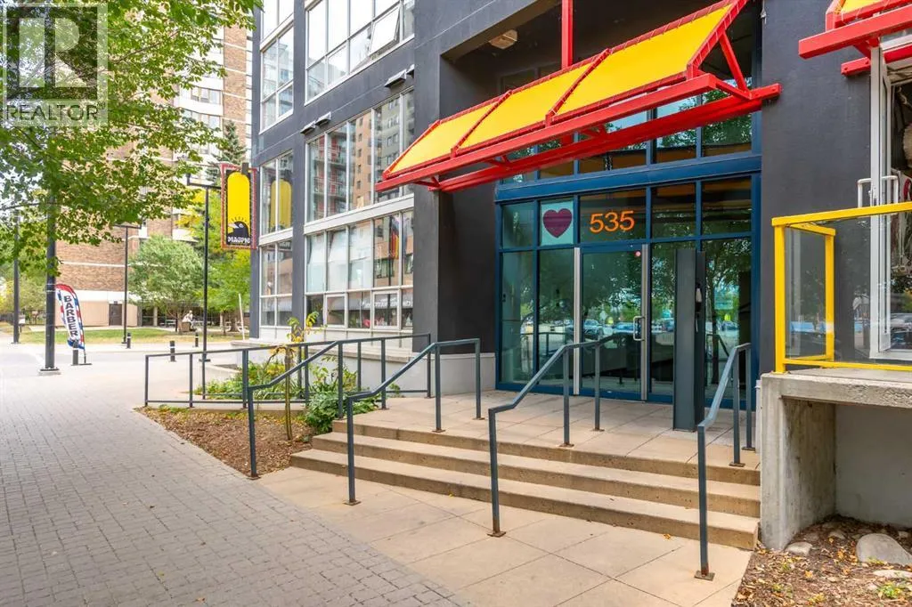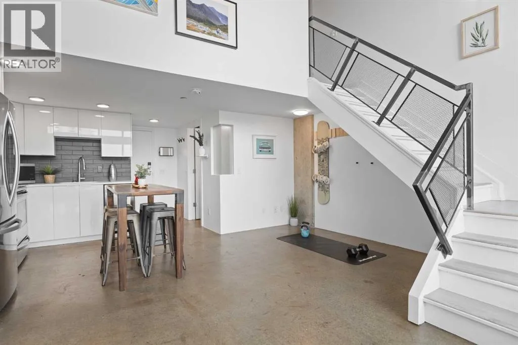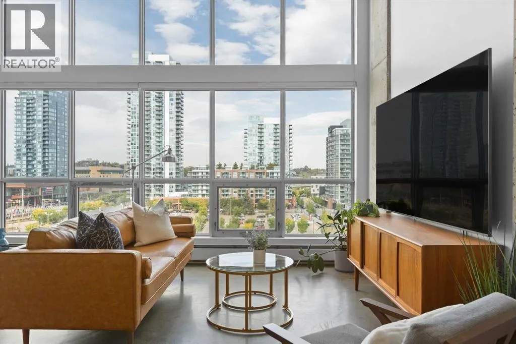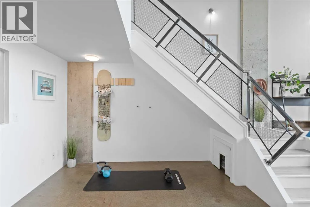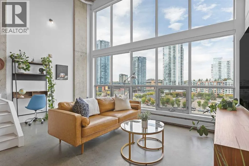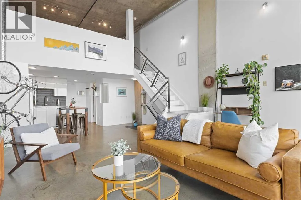***OPEN HOUSE - SATURDAY DEC 13, 1-3PM*** Welcome to urban living at its finest in the iconic Orange Lofts! This bright and spacious pet friendly loft offers soaring ceilings and a spectacular 16x16â glass wall with unbeatable views. The open-concept design creates the perfect flow for both everyday living and entertaining.The stylish kitchen is complete with high-gloss acrylic cabinetry, sleek quartz countertops, and stainless steel appliances, making it a chefâs delight. The bathroom has been thoughtfully updated with a stand-up shower and sliding glass doors, offering a spa-like retreat.Upstairs, youâll find a large bedroom with abundant closet space, while thoughtful upgrades throughout the unitâincluding automatic black out blinds, laminate flooring and fresh paintâadd modern comfort.This home also includes a titled underground parking stall, ensuring convenience year-round. Step outside to the rooftop patio with two gas BBQs, perfect for hosting friends while enjoying breathtaking city views.Located in the heart of Downtown East Village, youâll be steps from trendy restaurants, cafés, shopping, river pathways, public transit, and just minutes to vibrant Inglewood.Donât miss your chance to own in one of Calgaryâs most sought-after loft buildings! (id:27476)