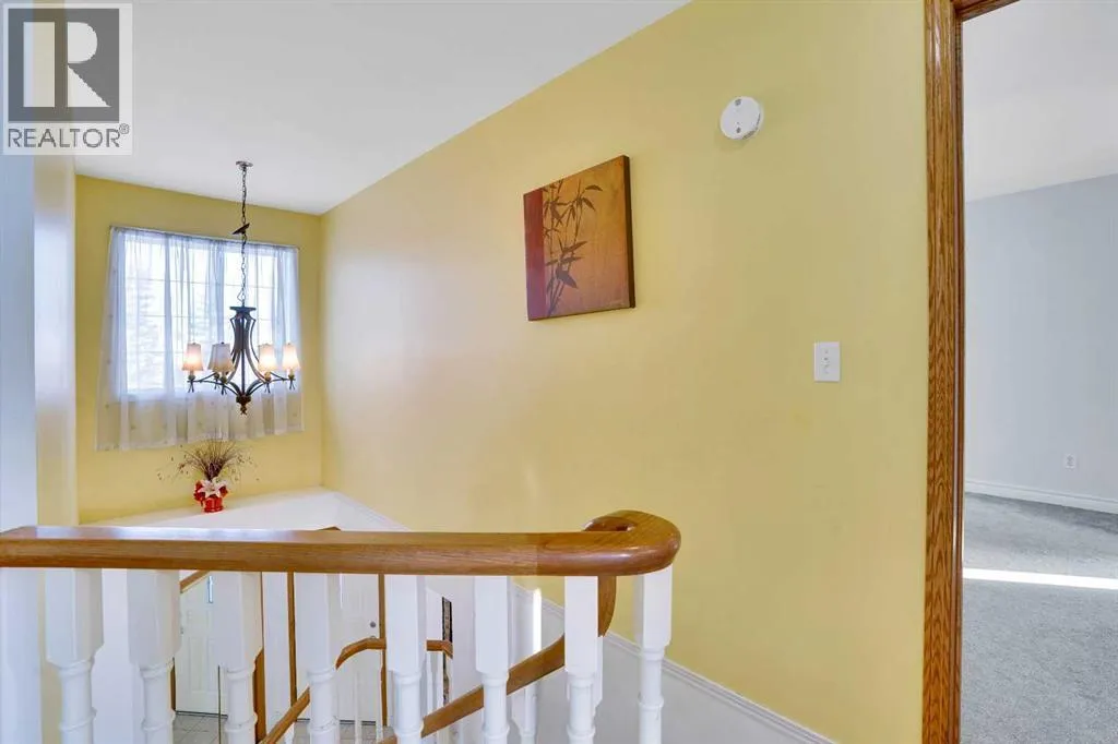 Open House 1 pm - 3:30 pm Sunday on Dec.7th. Exceptional property in a fantastic location - enjoy the sunny south deck on a huge pie lot backing onto green space leading to water park ( Tennis, Basket, Kids Facilities , Community Center etc.) or school. Spacious entrance views the cool north living room with hard wood flooring. Everyone loves a spacious kitchen with an abundance of cabinets, pantry, center moveable island, a gourmet stainless-steel sink and solid wood counters! It is a pleasure to work in this sunny kitchen overlooking the large mature landscaped south yard. The attached family room has a feature brick fireplace and hardwood flooring. Massive master bedroom and an ensuite to die for with oversized jet tub, extended vanity & mirror & separate shower. All bedrooms are generous size. Main floor laundry. Rough in Central Vacuum system. Double garage fully insulated & drywalled. Triple Pine Windows of all north side. NEW ROOF and SIDINGS IN 2022, NEW COMPOSIT DECK IN 2024, Newer carpet thru upper level. All this and an easy walk to the LRT, shopping, school and water park. (id:27476)