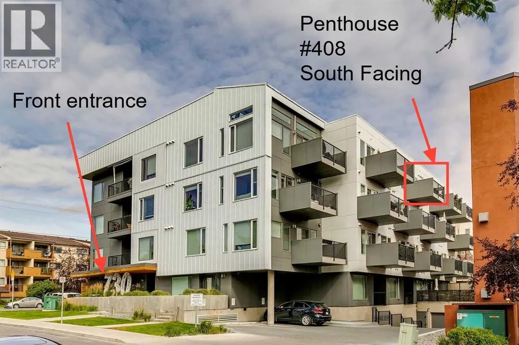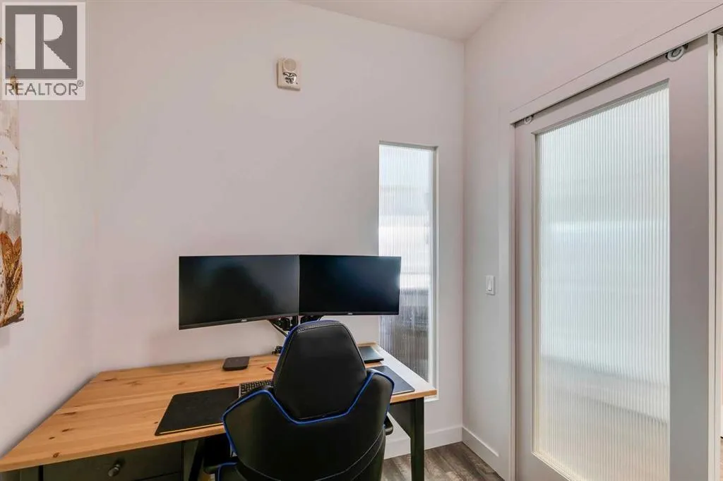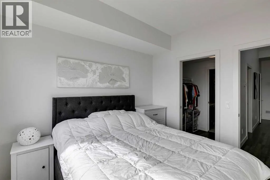 Experience PENTHOUSE living in Renfrew with sweeping, UNOBSTRUCTED VIEWS of downtown, the rolling hills of South Calgary, and even the MOUNTAINS, visible from both your living room and primary bedroom. This top-floor, striking architecture with everyday comfort, featuring 20-ft VAULTED CEILINGS with oversized SKYLIGHTS that pour natural light across the entire home.The kitchen is designed for real living and entertaining, not just looking good. Youâll appreciate the OVERSIZED ISLAND with an integrated eating table, DEEP full-height cabinets, and QUARTZ countertops that offer ample prep space for cooks and hosts alike. The open layout flows effortlessly into the living area and out to your private BALCONY, complete with a GAS line ready for your BBQ.Retreat to a spacious bedroom where morning views greet you daily. A WALKTHROUGH CLOSET leads directly into a well-appointed 4-piece bathroom with a SOAKER tub, creating a spa-like transition from day to night. A separate den/office provides the flexibility to work from home or create a dedicated hobby space.Comfort is top of mind with IN-FLOOR HEATING, AC, and custom WOOD-PLANK WINDOW COVERINGS and BLACKOUT curtains in the bedroom that add warmth and style. STORAGE is never a concern thanks to thoughtful cabinetry throughout.This home includes TITLED underground parking, a HEATED DRIVEWAY into the parkade, designated visitor stalls, plus ample FREE street parking for your guests. Located in one of Calgaryâs best inner-city communities, you'll enjoy quick access to downtown, local cafés, parks, and transit.A rare penthouse offering that blends luxury, functionality, and breathtaking viewsâwelcome home to elevated urban living in Renfrew. (id:27476)