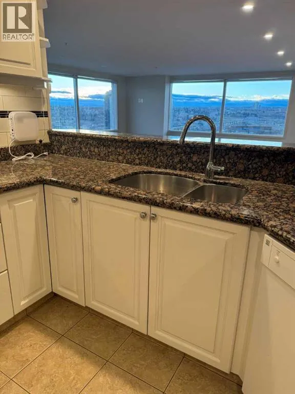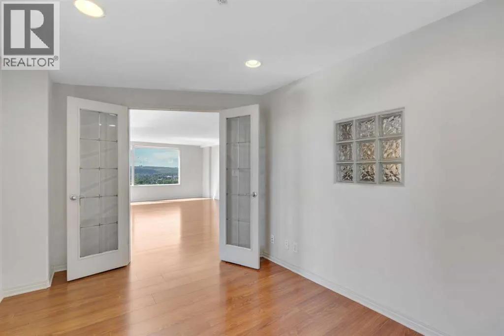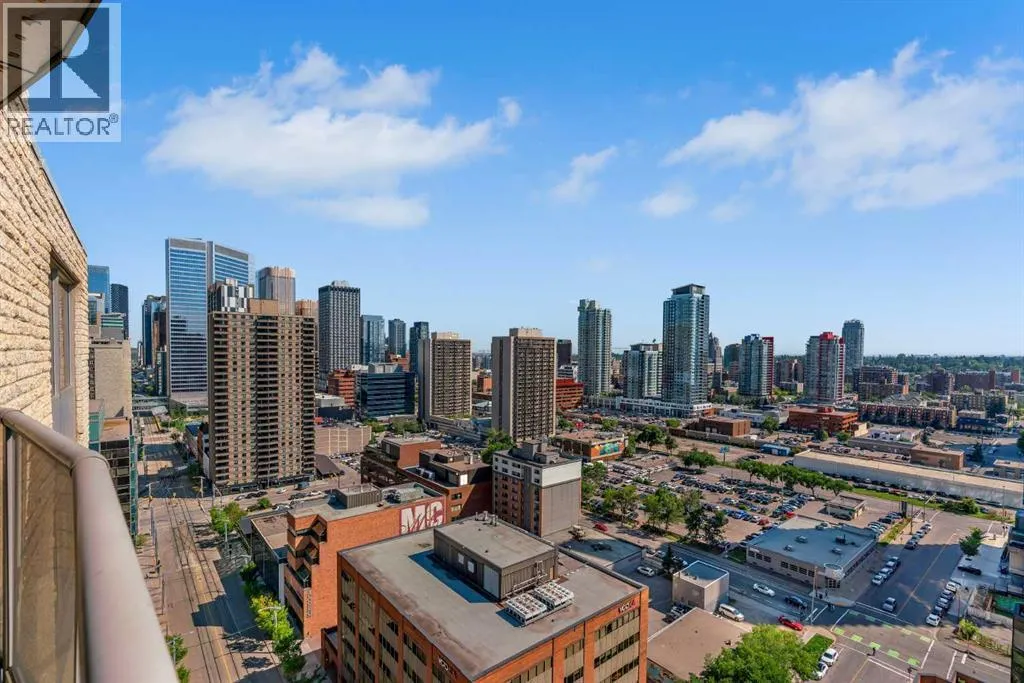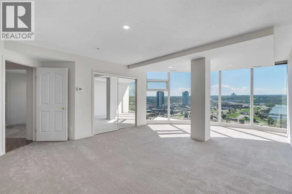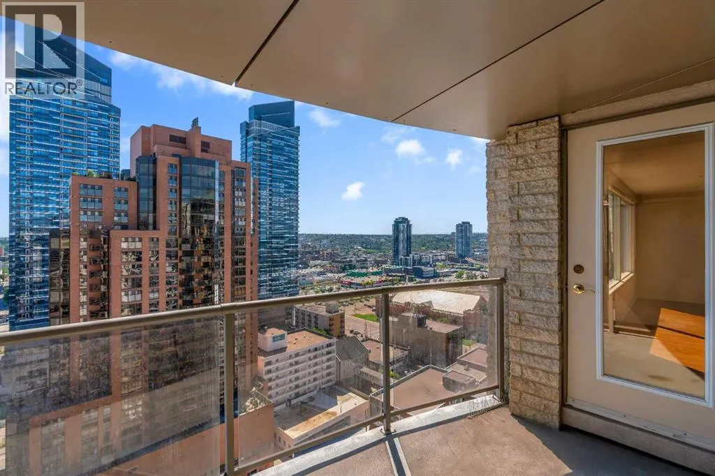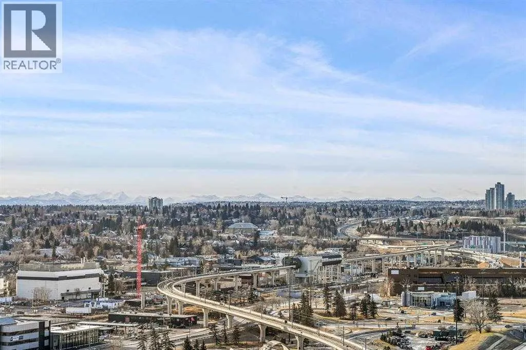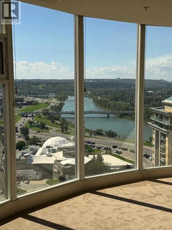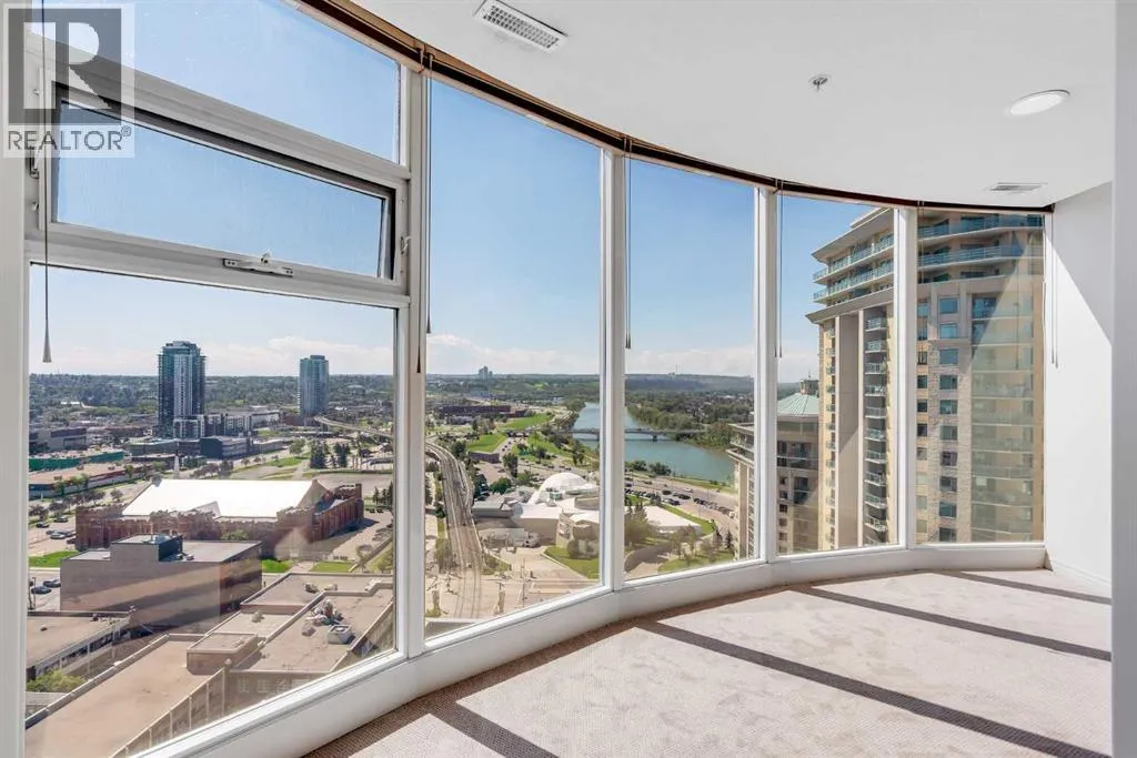 Unparalleled, Spectacular PANORAMIC VIEWS of the mountains, Bow River, and sparkling city lights! This nearly 1,600 sq. ft. luxury condo offers 2 bedrooms plus a den, 2 full baths, and 2 secure titled, underground parking stalls. Beautifully updated with hardwood floors, new carpet, fresh paint, and custom window coverings. Expansive windows fill the open living space with natural light, highlighting the raised panel cabinetry, granite countertops, pot lighting, and quality finishes throughout. Enjoy year-round comfort with full air conditioning and the sought-after south and west exposure. Ideally located in West Downtown with the Kerby LRT station right at your doorstep, and just steps to Shaw Millennium Park, river pathways, and all the conveniences of the city. Easy in-and-out access to downtown makes this the perfect urban retreat. This is the place to "right-size"! (id:27476)