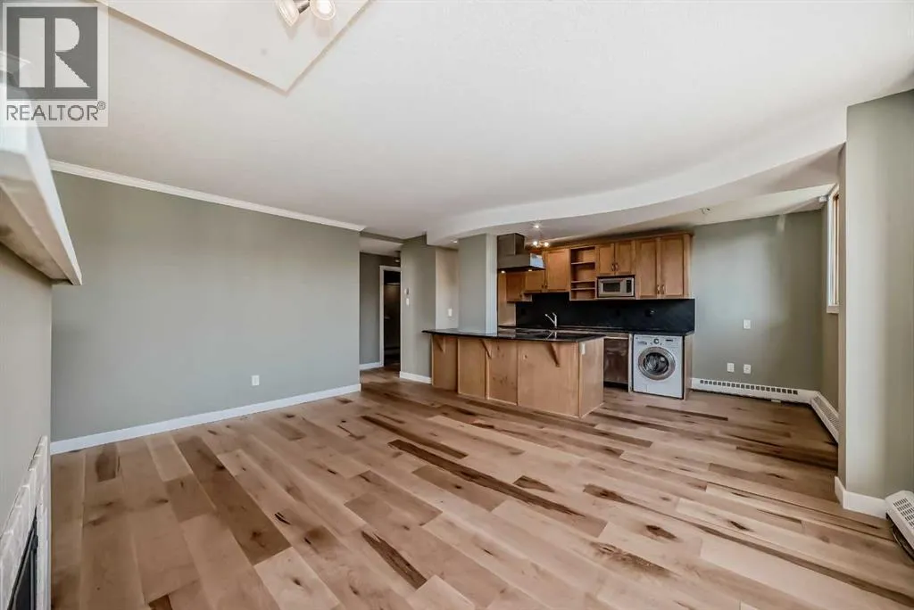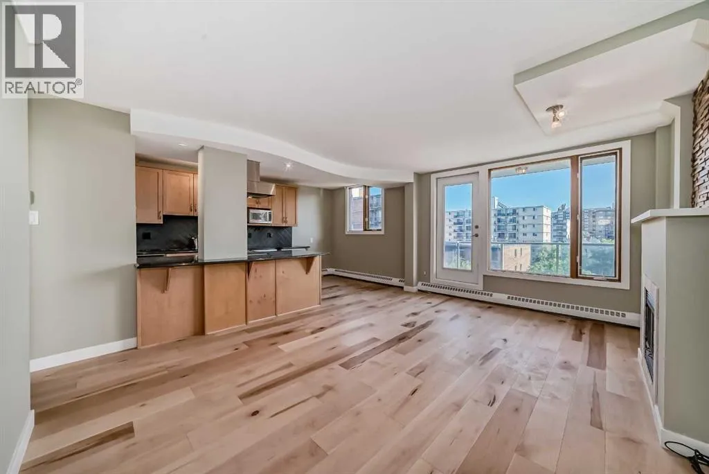 Discover an exceptional opportunity to own a two-bedroom, south-facing apartment in Calgary's vibrant Beltline neighborhood. This court-ordered sale offers approximately 850 square feet of thoughtfully designed living space in The Biltmore, a sought-after building overlooking the serene Thompson Family Park. The apartment features an open-concept layout with hardwood flooring, complemented by a spacious kitchen with maple wood cabinets, granite countertops, and a mosaic-tiled backsplash. A built-in European-style washer and dryer combo adds convenience, while the cozy gas fireplace, finished with stylish subway tiles, creates a warm and inviting atmosphere. The unit includes two well-appointed bedrooms and a full bathroom, complete with a soaker tub surrounded by elegant tile and a separate shower. Residents of this pet-friendly building enjoy the added benefit of no size or breed restrictions, subject to board approval. The property also includes an assigned parking stall and condo fees that cover all utilities, including electricity. This is a rare chance to secure a modern, well-located apartment in one of Calgary's trendiest areas. Donât miss out on this unique investment opportunity. (id:27476)