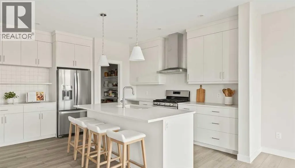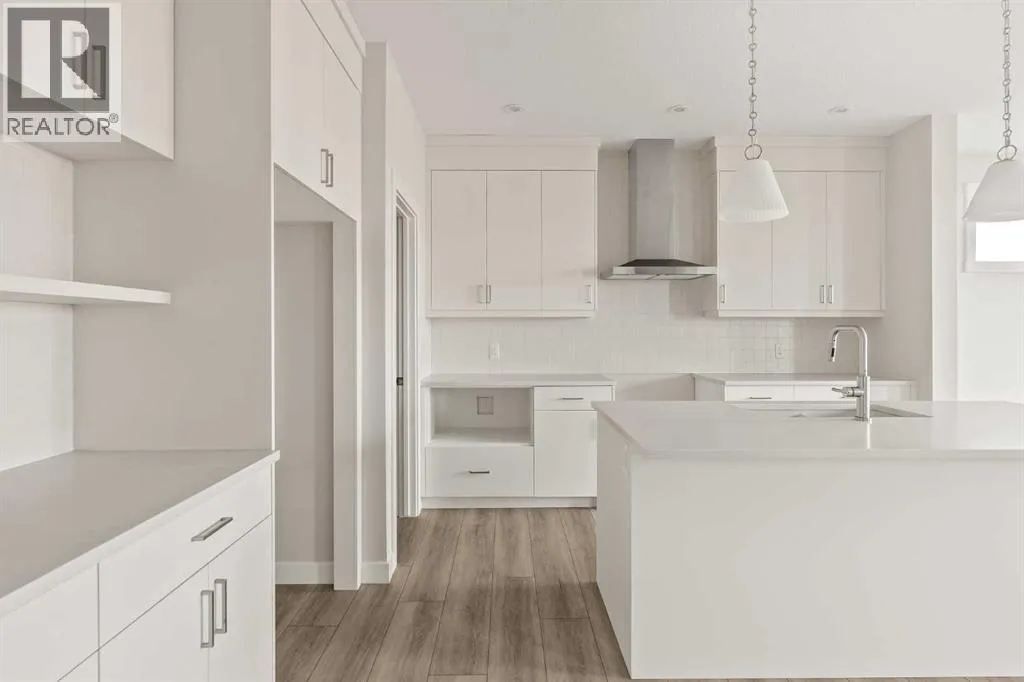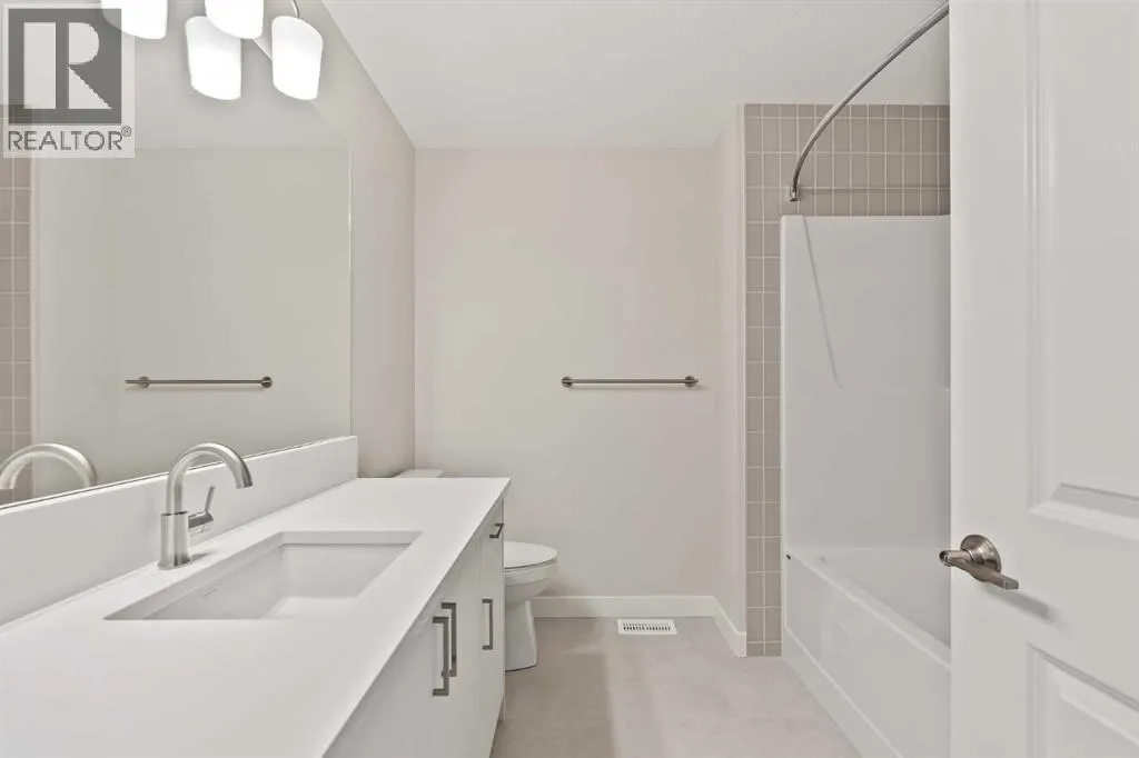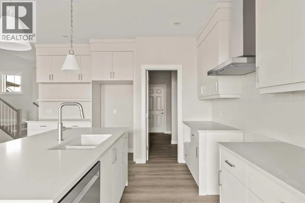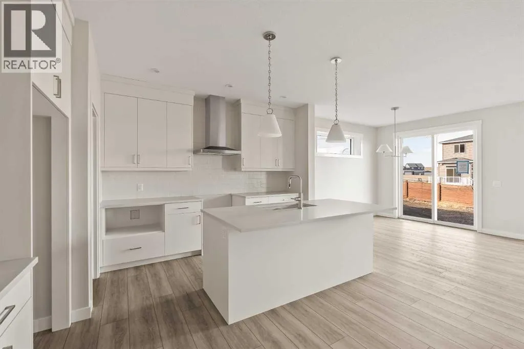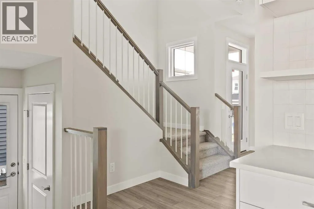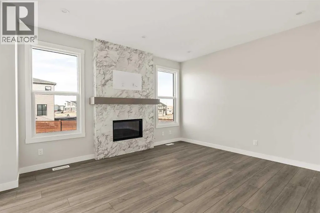 Introducing the Purcell 26 in Livingston - a beautifully curated, move-in-ready home that blends thoughtful design with everyday functionality. Professionally styled with timeless finishes and elevated details, this residence offers versatility for growing families, multigenerational households or investors seeking a polished, turnkey property. With 2,425 sq. ft. of developed living space, the layout provides a flex room, two distinct living areas, three bedrooms, 2.5 bathrooms and an undeveloped basement awaiting your vision. Luxury Vinyl Plank flooring stretches across the main level, setting the tone for a durable yet refined interior. At the heart of the home is a striking kitchen complete with a built-in range hood, island microwave, quartz island and upgraded custom lighting. A full walk-through pantry connects seamlessly to an oversized mudroom, adding everyday convenience and storage. The dining and living spaces span the rear of the home, framed by expansive windows that invite natural light throughout the day. A central gas fireplace with a tiled surround is flanked by symmetrical windows, creating a beautifully balanced focal point. A grand front foyer, dual closets and a 2-pc powder room complete the level. The staircase, finished with natural wood and iron railing, leads to an upper level designed for separation and comfort. A central bonus room sits between the secondary bedrooms and the private primary retreat. The primary suite features generous windows for plenty of natural light, along with a spa-inspired ensuite offering a tiled walk-in shower, a soaker tub, dual vanities and a private water closet. Two additional bedrooms, a 4-pc bathroom and a laundry room with counter space complete the upper floor. A separate side entrance provides direct access to the basement, making it well suited for future development. This brand-new property is move-in ready and includes Alberta New Home Warranty, giving you confidence and peace of mind as you settle int o your new home. A rare opportunity to own a beautifully designed Purcell 26âcrafted for comfort, style and long-term living. (id:27476)