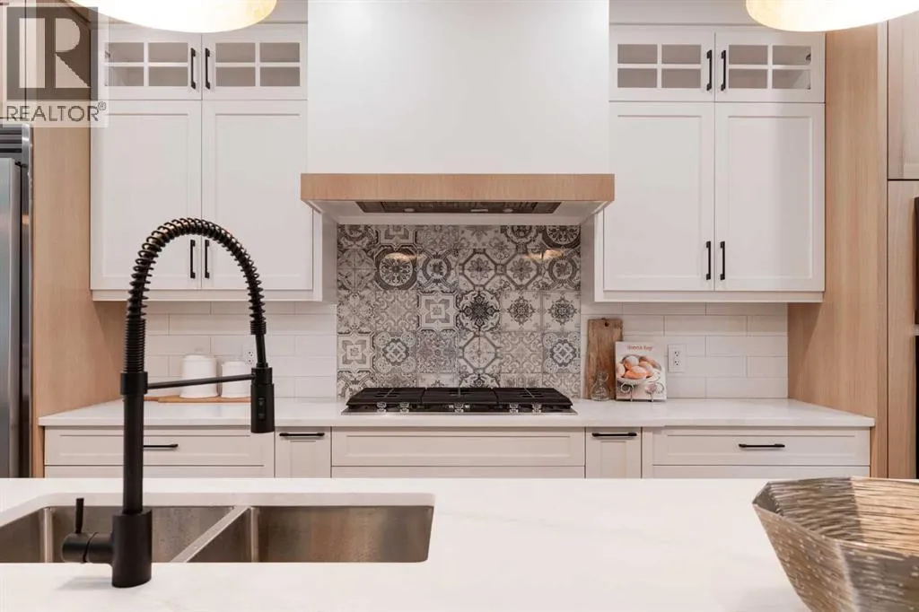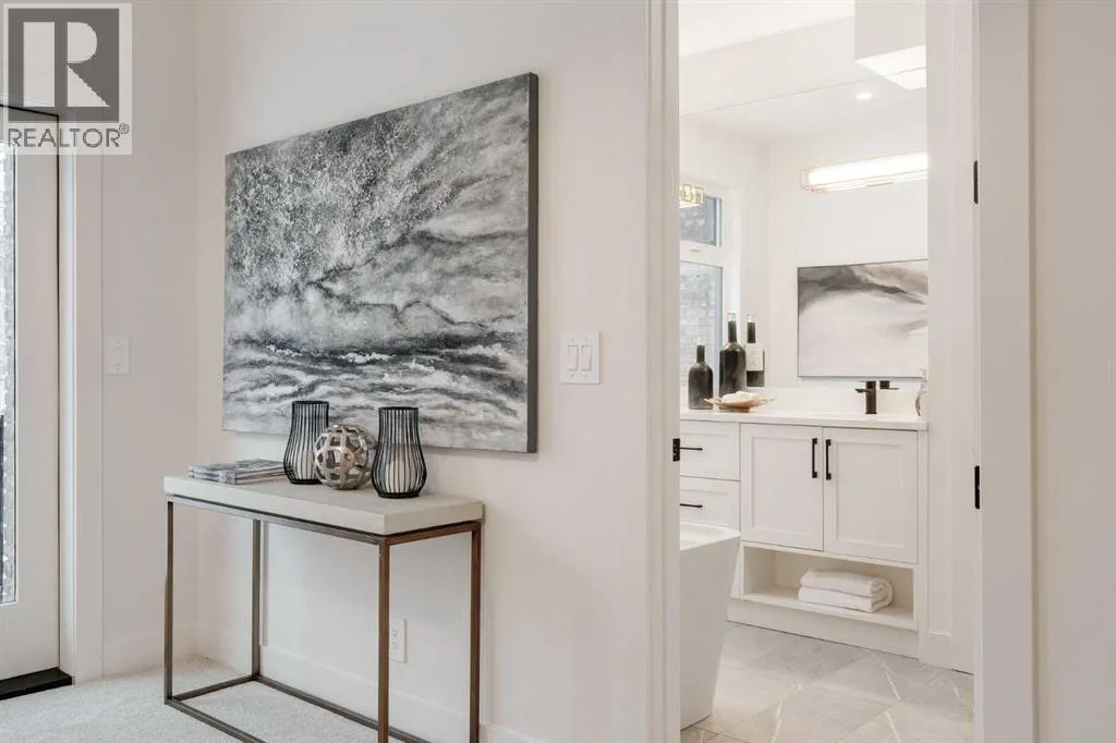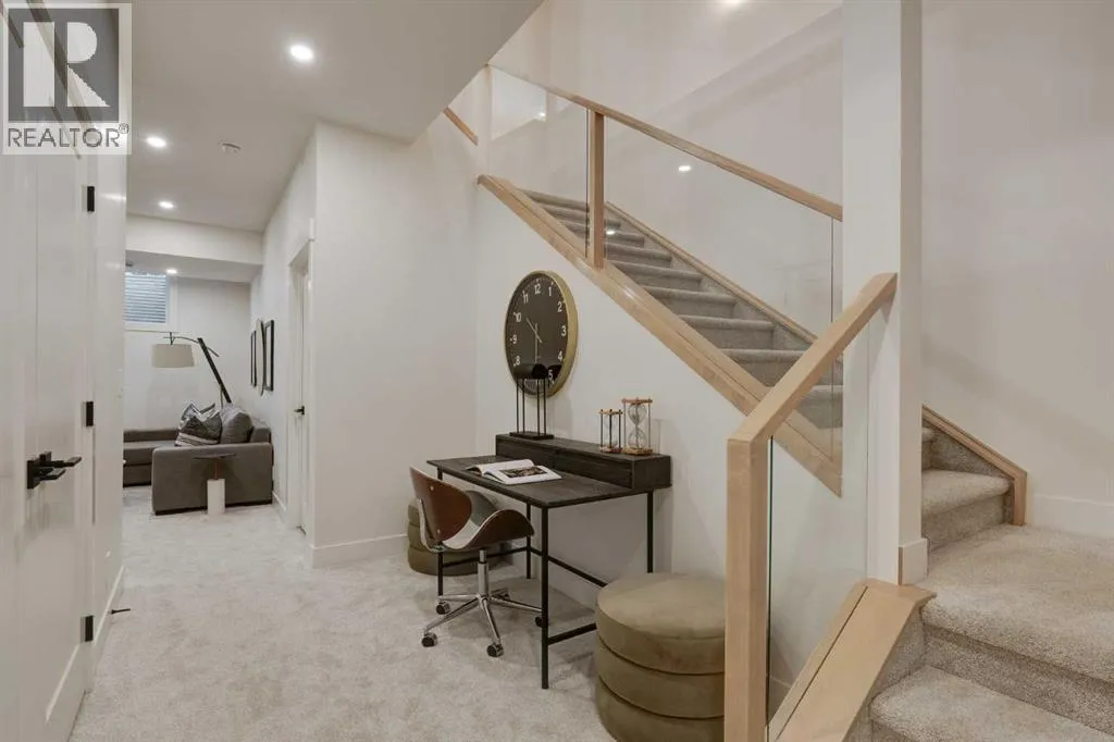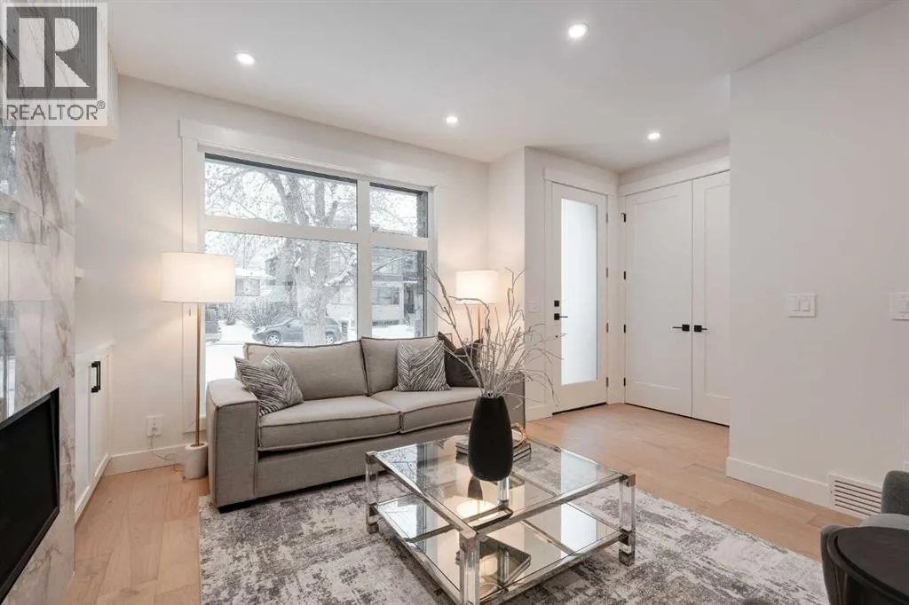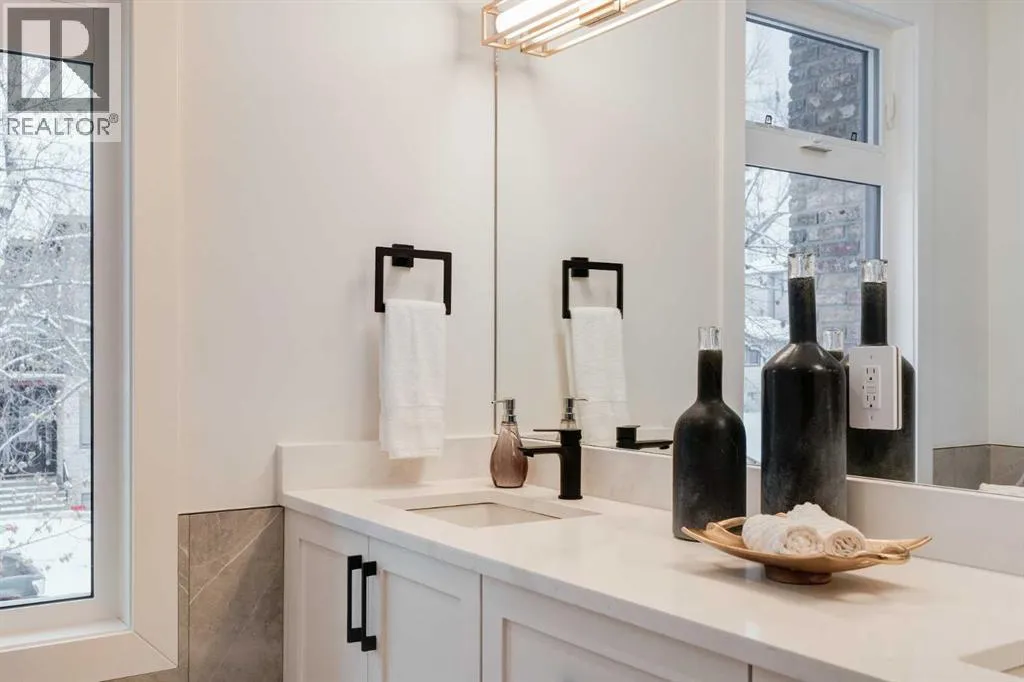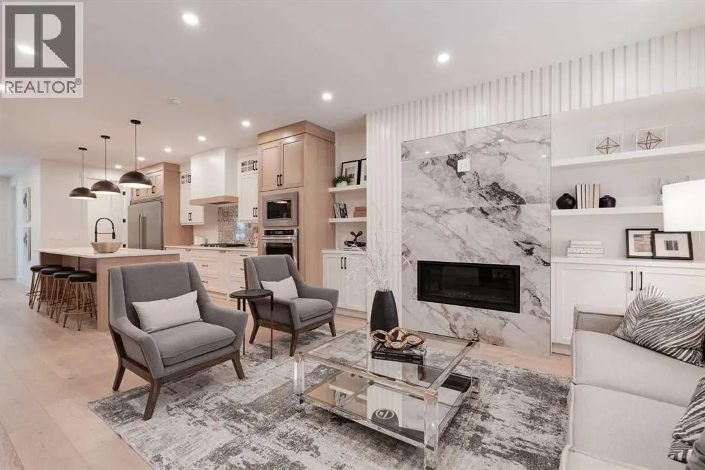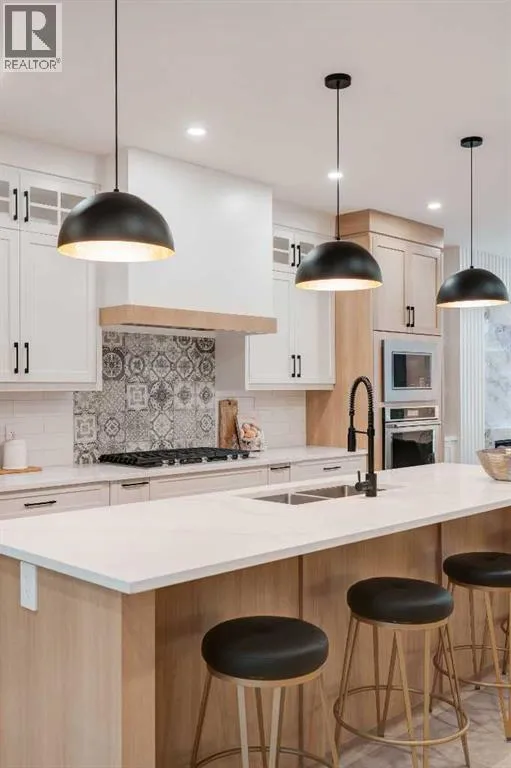 Priced to Sell! Discover modern luxury in this 5 bedroom + 4.5 baths, semi-detached home boasting 2,468 sq. ft. across three levels, plus a fully developed 868 sq. ft. lower level. The main floor features an elegant central Kitchen with long island, elegant two-tone cabinetry, gorgeous countertops, custom covered hoodfan, black accents, and upscale stainless steel appliances including a commercial grade fridge! This Kitchen layout is ideal for entertaining; complete with a convenient walk-in pantry with a countertop, shelves and drawers that makes organizing a breeze! White oak engineered hardwood flooring flows throughout, complementing high ceilings on the Main and Lower levels. The 2nd level features a spacious Primary bedroom with an impressive walk-in closet, luxurious 5 piece ensuite with deep pedestal soaker tub, over-sized shower, separate water closet and dual vanity with culture marble countertop. It also has its own private West-facing deck! There are also two more bedrooms, a 3-piece bathroom and an oversized laundry area with an impressive amount of countertop space, laundry sink and cabinetry. The 3rd floor bonus area has a very spacious living area, a large bedroom with an impressive walk-in closet, 3-piece bathroom and an additional walk-in closet. This floor also has an AMAZING outdoor living space that could easily fit a sectional, fire-table and dining set to enjoy those warm starry Calgary evenings! The lower let has another bedroom, a den, study nook, 3-piece bathroom, and a games/recreation/media area with a wet bar. Outdoor living with three decks adds so many living options. The property also has a private backyard with double detached garage and new fencing on both sides of the property. With impeccable design, ample space, and a prime, tree-lined, inner city southwest location in Killarney - just steps away from schools, parks, pathways and other conveniences, this home and location is a true gem! (id:27476)