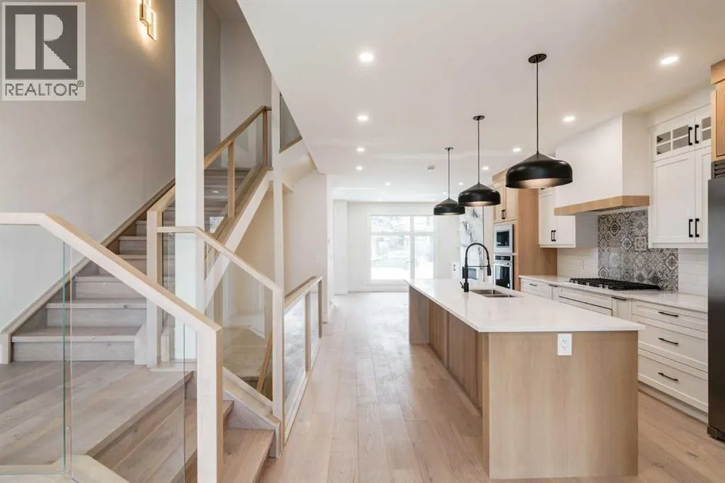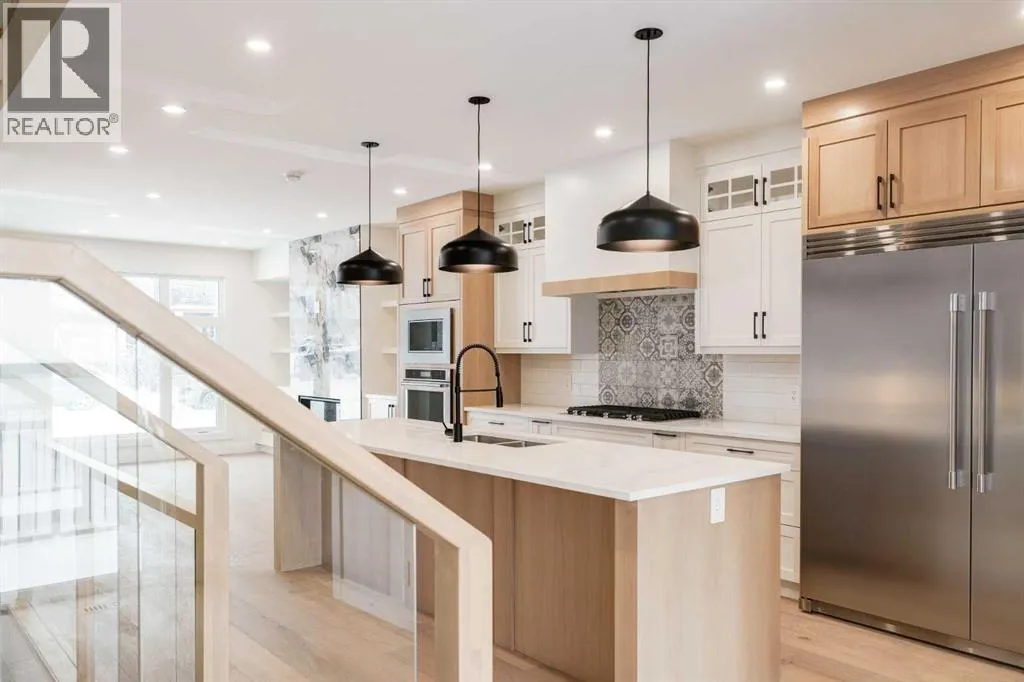 Priced to Sell! Over 3,300 livable square feet in this beautiful, brand new, 3-storey infill in the heart of the Killarney! With 5 bdrms + 4.5 baths, high ceilings, engineered hardwood, upgraded appliances and quartz countertops throughout this property offers so much! Walk into the spacious Main Foyer entrance, with custom closet, a 2-pc bath and impressively open floor plan; with Living Room cleverly located at the front. Imagine cozying up and relaxing next to the gas fireplace and built-in cabinetry with a good book. The nearby Kitchen features White Oak with large, long, island for extra seating and a separate pantry for extra storage. Here you'll also find higher end, stainless steel appliances including a built-in oven, microwave, dishwasher, gas cooktop and huge, commercial grade, fridge+freezer! The Dining Room features space to eat and entertain and a sliding patio door leads out to the rear deck - for extended seasonal living space. There's also a clever mudroom with storage space for all of your seasonal items, and a custom bench as well. Heading up to the 2nd floor, the stairs feature engineered hardwood and a glass railing, and you'll also find 3 spacious bedrooms and 2 elegant bathrooms. The Primary bedroom also includes a 5-pc ensuite spa bath with dual vanities, lavish soaker tub, stand up shower, a huge walk-in closet, and a balcony. The 2 other bedrooms, one with another beautiful walk-in closet, also share a common 3-pc bath. You'll also find located on the Laundry room with built-in sink and cabinetry here as well. On the 3rd floor you'll find more great living space in the Family Room with nearby balcony, and another bedroom with its own walk-in closet and a 3pc bath. The fully-developed Lower level has an additional bedroom, a den, a Rec room with wet bar and there's another 3-pc bath. Heading outside, you'll find the fenced backyard and room for Spring/Summer BBQ's, along with the detached double garage. This property shows well and is clos e to so much! (id:27476)