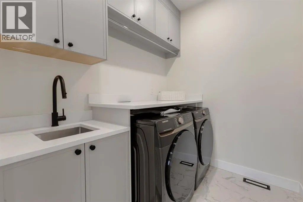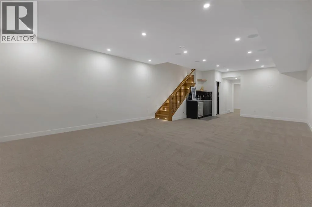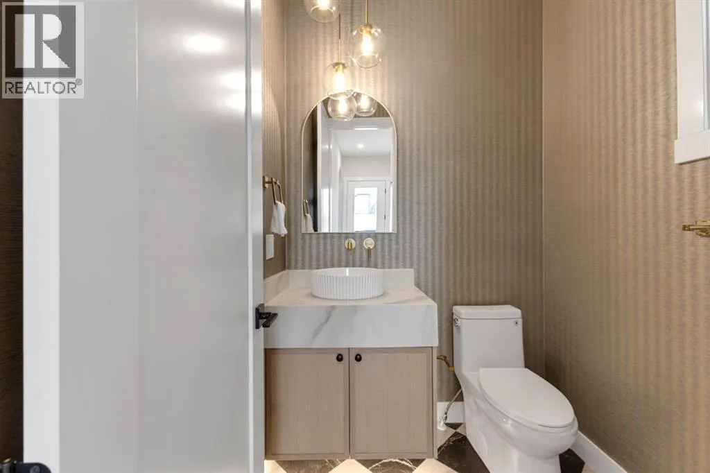 One Unit Remaining! Elegant French Chateau-Style Duplex in Richmond | Over 3,100 Sq Ft | Oversized Garage. Step into timeless sophistication with this beautifully crafted French chateau-inspired duplex, ideally located in the prestigious community of Richmond. Boasting over 3,100 sq ft of luxurious living space, this residence seamlessly blends classic charm with modern comfort. Engineered wood flooring flows throughout the main and upper levels, setting the tone for the refined finishes found throughout the home. Upstairs, you'll find three generously sized bedrooms, each complete with walk-in closets and private ensuites.. The stunning 5-piece primary ensuite is a true retreat, offering heated floors, a steam shower, a free-standing tub, a double vanity with a custom tower, and recessed lighting to create a spa-like atmosphere. The main floor is thoughtfully designed for both work and relaxation, featuring a convenient pocket office, a chef-inspired kitchen with a massive 15-foot island and high-end Kitchen Aid appliances, and an inviting living room centered around a cozy gas fireplace. A stylish mudroom with built-in cabinetry leads to the powder room and out to your private backyard through large patio doors. The fully finished basement offers a wet bar, bedroom with a 3 pc bathroom along with a huge rec area. Situated on a rare 135-foot deep lot, the backyard is generously sizedâperfect for outdoor entertainingâand complemented by a double oversized garage for added convenience. This is a one-of-a-kind home that perfectly balances elegance, comfort, and versatility in one of Calgaryâs most sought-after neighbourhoods. (id:27476)