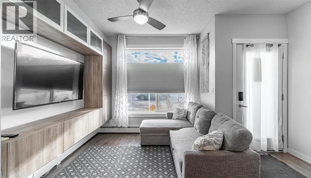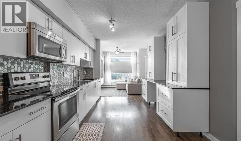 Welcome to this well kept townhome style condo in Mount Pleasant. It sits on a quiet, tree lined street with quick access to SAIT, the CTrain, Kensington, Confederation Park, Riley Park, restaurants, coffee shops and everything else the area is known for.The main floor feels open and bright with large windows and a clean modern look. The kitchen has quartz counters, stainless steel appliances and plenty of cabinet space, and it flows nicely into the living and dining areas. The unit also has air conditioning which is a huge bonus in the summer. You have a front patio for morning coffees and a private back patio for grilling or relaxing.The upper floor has a spacious bedroom and a large loft area. The loft is big enough to use as an office, workout space, guest area or anything else you need. A full four piece bathroom and laundry are also upstairs.The building is well managed and has a central courtyard along with titled underground parking and visitor parking. A comfortable home in a great location with flexible space and modern conveniences. Come see it in person. (id:27476)