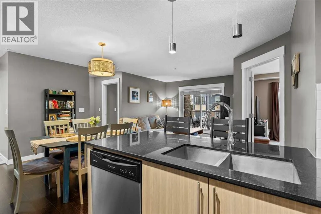 Welcome to life in the vibrant, four-season lake community of Mahogany! This beautifully designed 2nd-floor condo offers an ideal blend of comfort, style, and convenience, featuring 2 bedrooms, 2 full bathrooms, a private den, underground parking, and a separate storage locker. Step inside and youâll immediately appreciate the open-concept layout, thoughtfully arranged to maximize both functionality and flow. The generous living and dining areas easily accommodate a full-sized dining set and large living room furnitureâperfect for hosting friends or enjoying cozy nights in. The kitchen is finished with granite countertops, stainless steel appliances, rich cabinetry, designer colour palettes, and an eye-catching dining room light fixture that adds a touch of elegance. Just off the main living area, a dedicated office/den creates the perfect spot for working from home or organizing personal projects. This space leads to a spacious laundry room, offering exceptional in-suite storage and practicality. The two bedrooms are thoughtfully positioned on opposite sides of the unit, providing privacy for families, guests, or roommates. The primary bedroom features a walk-through closet and a 4-piece ensuite bathroom, while the second bedroom offers a walk-in closet and easy access to the second full bath. Large windows throughout the unit invite an abundance of natural sunlight, giving the home a bright, welcoming atmosphere. Step outside onto the generously sized balcony, perfect for morning coffee, evening relaxation, or container gardening through the warmer months. Additional perks include a heated underground parking stall, a large storage locker, and access to Mahoganyâs renowned year-round lake amenitiesâfrom swimming and beach days in summer to skating in the winter. All of this is just steps away from Mahoganyâs bustling shopping district, grocery stores, restaurants, schools, the South Health Campus, and countless everyday amenities. With low condo fees of only $497 /month, covering everything except electricity, this home offers tremendous value in one of Calgaryâs most sought-after communities. A wonderful place to live, relax, and truly call home. (id:27476)