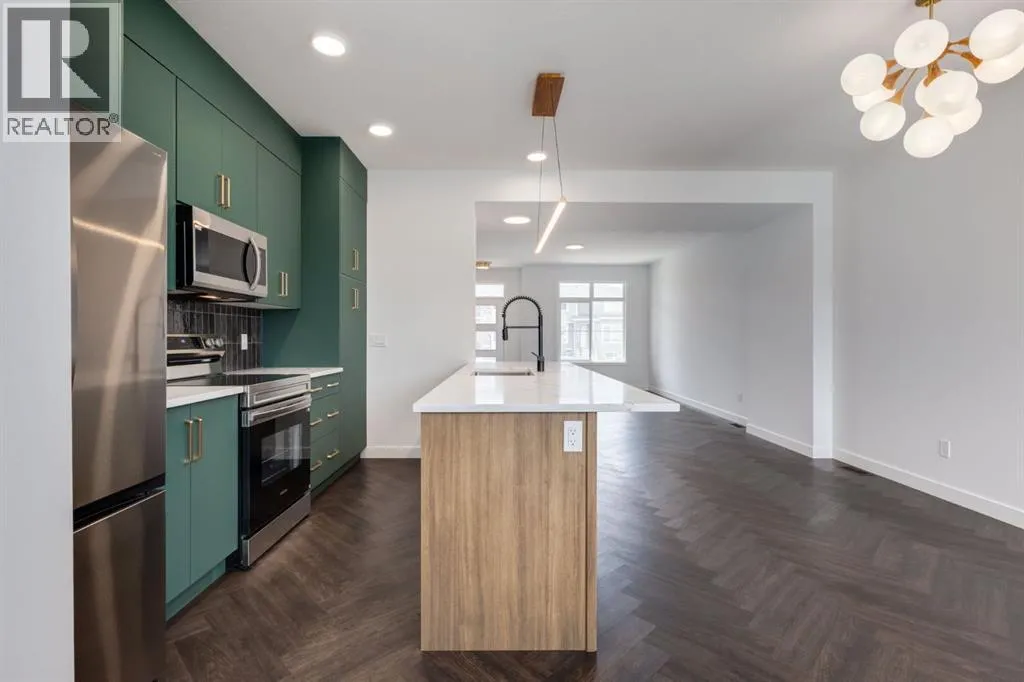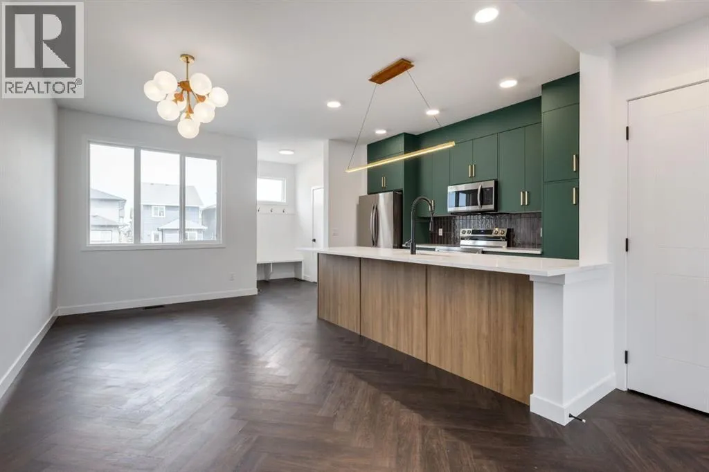 Brand new the No condo fee 'TALO' town floorplan by Rohit Homes, with unmatched design interiors and striking exteriors to create elevated living. Featuring 1500 sq ft, 3 bed/2.5 bath + Bonus. Note: This unit has not yet started construction. All Perfectly located In SE Calgary's 'Sora in Hotchkiss', close to a park, featuring a pond, paths, easy access to major highways and more. Step inside to an expansive open floor plan that seamlessly connects living/dining and kitchen. KITCHEN FEATURES: SS appliances, quartz counters, large island (with place for bar stools), desginer cabinets, boutique lighting - a perfect place to gather and create masterful meals. Off the kitchen is the dining, mid room and half bath. The TALO plan offers large windows across the back and front, and with the high ceilings as well as open floor plan, it leaves the home feeling bright and inviting. Upstairs, find 3 good size bedrooms, bonus room, laundry, 2 full baths. The primary retreat includes a walk in closet, and spa like retreat full en-suite. Ensuite features: Single vanity, window, bath/shower combo, quartz counters and beautiful tile work. The lot features alley access in the back to a concrete parking pad. Located just outside the ring-road, east of Stoney Trail, offering quick access to highways and other amenities on the southeast side of Calgary. All pictures and 3D tours are of the 'TALO' floorpan that is completed, your unit may have different (colors/finishings/spec upgrades/design interior/elevation) depending on Lot - confirm with builder. At Rohit Homes, we know itâs not just about having a functional floor plan, itâs about having a space that youâre proud to show off. Each of our homes features a distinct look that is inspired by you - our customers. Built by a 4-time Home Builder of the Year with Peace-of-mind 1-2-5-10 year new home warranty. Unparalleled level to townhome living awaits. Note: The listed price includes GST - The First-Time Home Buyers' GST Rebate could save you up to $50,000 on a new home! You must be 18+, a Canadian citizen or permanent resident, and haven't owned or lived in a home you or your spouse/common-law partner owned in the last four years. Terms and conditions are subject to the Government of Canada/CRA rules and guidelines. *Visit show home at 318 sora way SE Calgary mon-thurs 4-7pm, sat/sunday 2-5pm. Self guided tours available outside those times! (id:27476)
