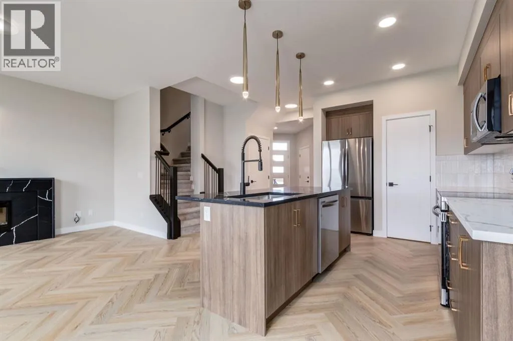 Brand new The "LANDON" half duplex by Rohit Homes, with unmatched design interiors and striking exteriors to create elevated living. Featuring 1,617 sq ft, 3 bed/2.5 bath + bonus room, double front attached garage and separate entrance to basement. Note: this unit will be ready for possession in 2026. All Perfectly located In SE Calgary's 'Sora in Hotchkiss', close to a park, featuring a pond, paths, easy access to major highways and more. Step inside to an expansive open floor plan that seamlessly connects living/dining and kitchen. KITCHEN FEATURES: SS appliances, quartz counters, large island (with place for bar stools), designer cabinets, boutique lighting - a perfect place to gather and create masterful meals. Off the kitchen is the dining, mud room, living room and half bath. The plan offers large windows across the back, and with the high ceilings as well as open floor plan, it leaves the home feeling bright and inviting. Upstairs, find 3 good size bedrooms, bonus room, laundry, 2 full baths. The primary retreat includes a walk in closet, and spa like retreat full en-suite. Ensuite features: Single vanity, window, bath/shower combo, quartz counters and beautiful tile work. The lot features alley access in the back. Located just outside the ring-road, east of Stoney Trail, offering quick access to highways and other amenities on the southeast side of Calgary. All pictures and 3D tours are of the floorpan that is completed, your unit may have different (colors/finishings/spec upgrades/design interior/elevation) depending on Lot - confirm with builder. At Rohit Homes, we know itâs not just about having a functional floor plan, itâs about having a space that youâre proud to show off. Each of our homes features a distinct look that is inspired by you - our customers. Built by a 4-time Home Builder of the Year with Peace-of-mind 1-2-5-10 year new home warranty. Unparalleled level to townhome living awaits. Note: The listed price includes GST - The First-Time Home B uyers' GST Rebate could save you up to $50,000 on a new home! You must be 18+, a Canadian citizen or permanent resident, and haven't owned or lived in a home you or your spouse/common-law partner owned in the last four years. Terms and conditions are subject to the Government of Canada/CRA rules and guidelines. *Visit show home at 318 sora way SE Calgary mon-thurs 4-7pm, sat/sunday 2-5pm. Self guided tours available outside those times! (id:27476)