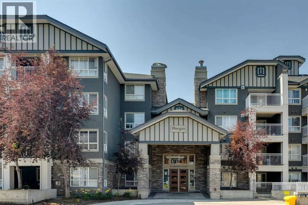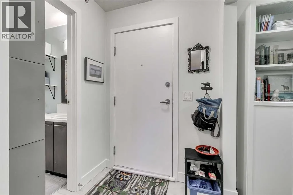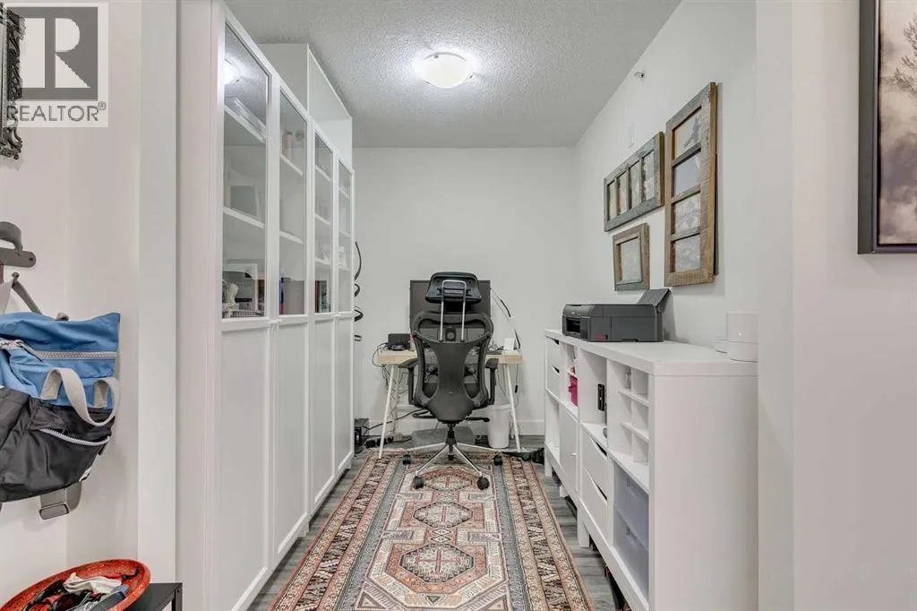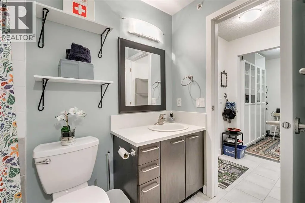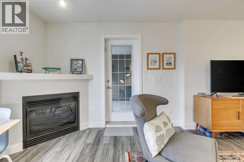 Tranquil top floor unit facing mature trees will help all your dreams come true in this 1-bedroom residence, ideally positioned in the heart of Lincoln Park, just steps from Mount Royal University & amenities. Whether youâre a discerning student, faculty member, or strategic investor, this sanctuary offers an unmatched lifestyle & opportunity.Thoughtfully updated, the home features a super functional kitchen with new fridge, stove, washer & dryer. Culinary enthusiasts will appreciate the gourmet kitchen, boasting cabinetry to the ceiling, and an impressive 8-foot quartz breakfast bar. Step outside onto the private 10' x 8' covered patio, an idyllic setting for your morning coffee or evening grilling with convenient gas BBQ hookup.Open-concept layout is both functional and inviting, enhanced by a dedicated den/office that truly has enough space to use for function. A charming corner gas fireplace anchors the living space, complemented by luxury vinyl plank flooring for a contemporary finish. The bedroom is a serene retreat, complete with plush carpeting, a ceiling fan, a generous double walk-in closet, and access to the beautifully updated 4-piece cheater ensuite with new tower shelf, curved shower rod, and a quartz vanity with elevated fixtures.Titled underground parking stall accompanies the unitâan invaluable feature in this sought-after building. You can also offer your guests underground visitor parking for their convenience.Residents of this impeccably maintained, pet-friendly building enjoy premium amenities, including a fully equipped fitness centre, a party room, and two guest suites for company so they can visit in comfort. Additional perks include secure storage locker, multiple bike storage rooms, and TELUS PureFibre connectivity for seamless, high-speed internet throughout.More than just a home, this exceptional property offers a refined, turnkey lifestyle in one of Calgaryâs most desirable southwest communities. (id:27476)