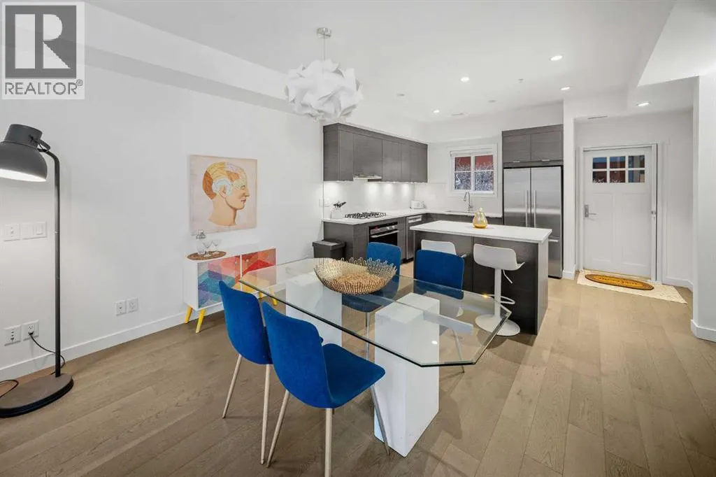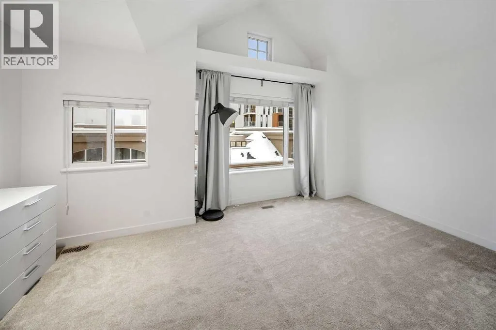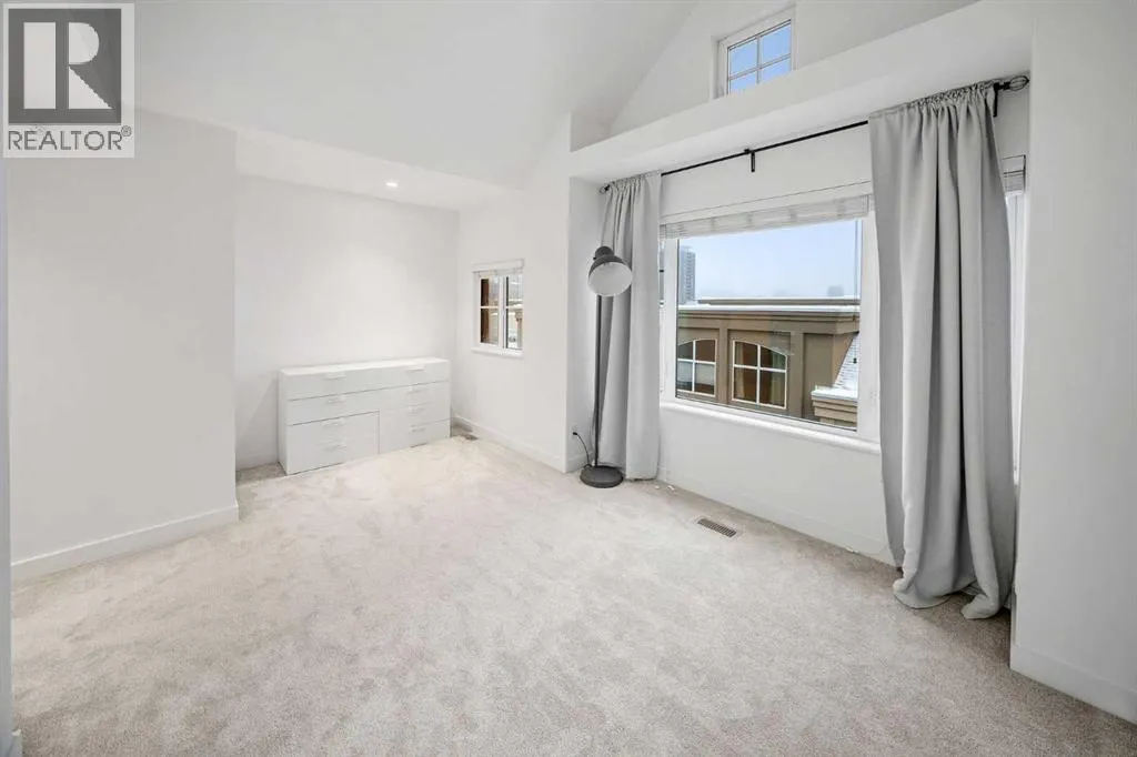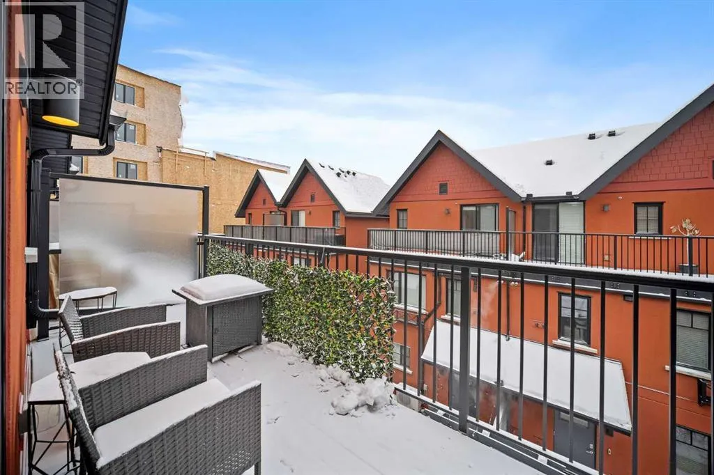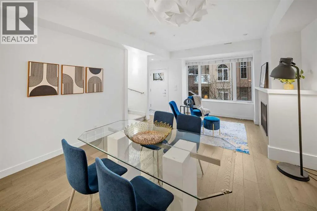 Three bedrooms, two bathrooms, dedicated storage, and titled parking come together in a boutique brick row building with subtle brownstone vibes and classic urban styling. This townhome blends vibrancy, privacy, and low maintenance living in one of Calgaryâs most walkable locations. Just moments from the energy of 17th Avenue and the Beltline, you are surrounded by fabulous local dining, cafes, boutique fitness, and everything that makes inner city living so coveted. Tucked away from the street for added peace, the secure setting of the building creates an inviting atmosphere where, in the warmer months, neighbours often unwind on their own private terraces with barbecues or a glass of wine, adding a warm community feeling while maintaining personal privacy. Inside, this home offers the spaciousness of a traditional layout with the ease of condominium living. The modern kitchen features quartz counters, stainless steel appliances including a five burner gas range, generous cabinetry, a breakfast bar for casual meals, and the option to take dinner parties to the dining table that easily seats six. It all flows naturally into the inviting living area where a cozy gas fireplace anchors the room. The second level includes two comfortable bedrooms, a four-piece bathroom, and full size laundry. One more level up is the dedicated entirely to the primary retreat, the true showstopper of the home. This primary bedroom feels both serene and elevated with its soaring vaulted ceilings, wrapped in windows and offers a truly calming sense of space. A generous walkthrough closet offers abundant hanging space and leads to the relaxing spa inspired ensuite complete with double vanities, a glass shower, a deep soaker tub, and the added luxury of heated floors. Topping off this decadent level is the private balcony, perfectly positioned to overlook the front courtyard while capturing beautiful westerly views. The lower parkade entry level has a spacious flex or storage room which prov ides loads of shelving for effortless organization. This home also includes two additional outdoor lounging spaces; A charming backyard area offers a quiet spot for al fresco dining and relaxing, while the welcoming front terrace is ideal for morning coffee, evening wine, and summer barbecuing with friends. Small pets are welcome too (with board approval), and some owners have created a cute outdoor relief spot in their backyard - on leash or with board approved fencing, ideal for quick winter outings with your furry friend. Your secured and titled indoor/heated parking stall is conveniently located beside your parkade door with room for a bike. This beautifully maintained unit is also offered turn-key (move-in ready) with itâs furnishings & all kitchen items ⦠for a seamless move. With only nine units in the building and close proximity to parks, schools, gyms, hot yoga, shopping, transit, and major routes, this home delivers elevated inner city living at its finest. (id:27476)