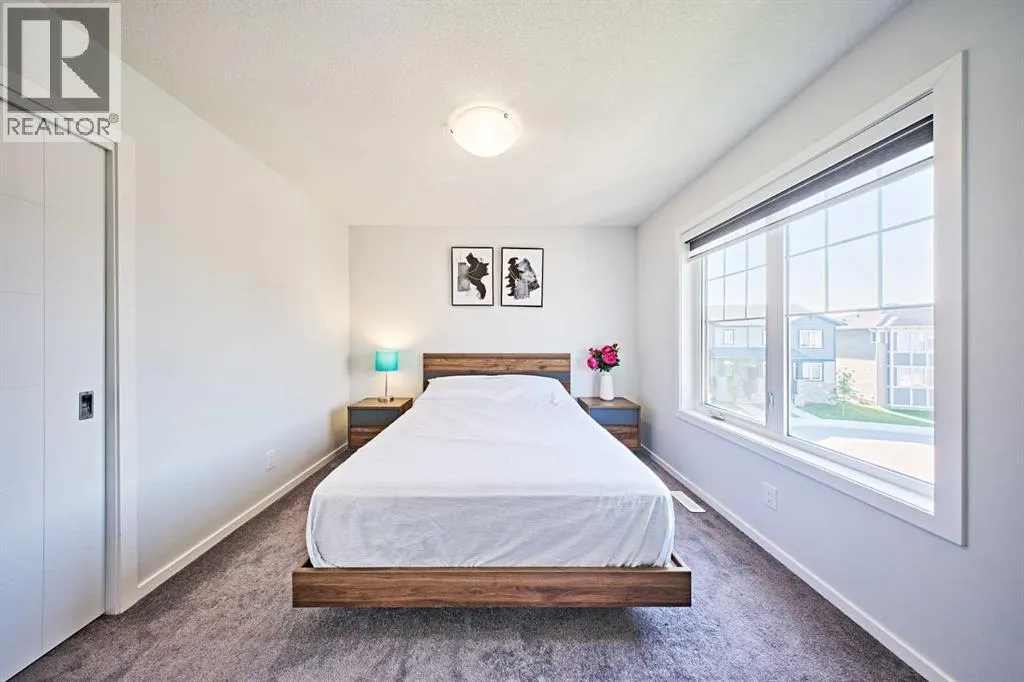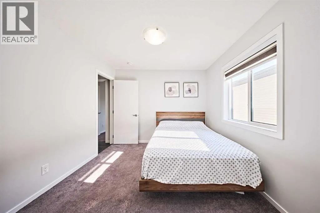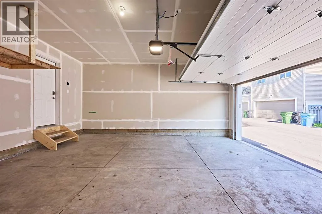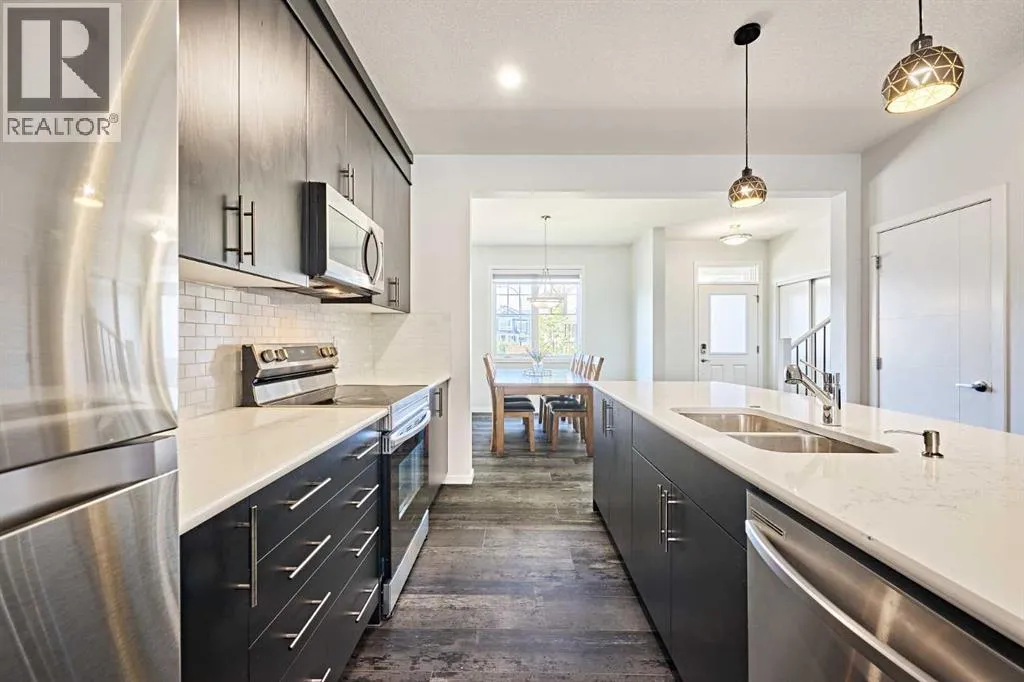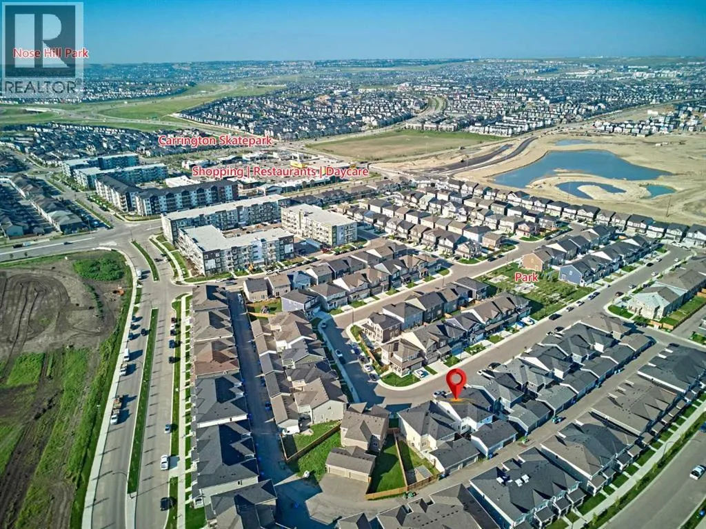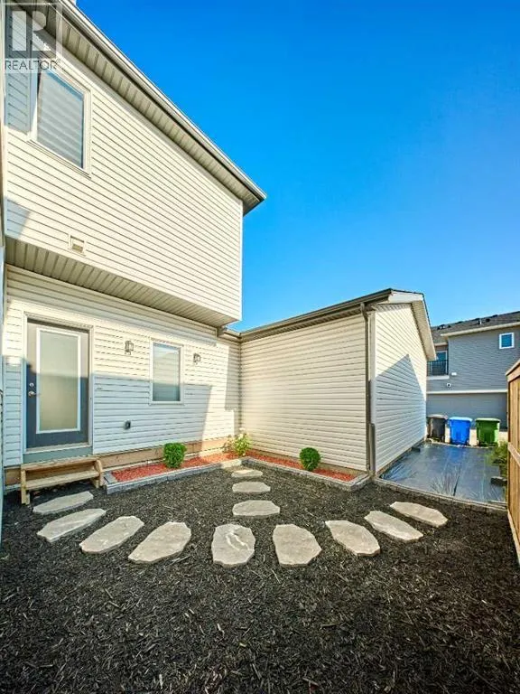 This beautifully upgraded duplex in Carrington offers stylish living with exceptional features throughout.Step through the porch into a spacious front entry, complete with a large closet â perfect for coats and shoes. From there, you're welcomed into a bright open-concept main floor that seamlessly connects the living room, dining area, and a stunning kitchen featuring a huge quartz island, ceiling-height cabinets, and a custom backsplash. The living room showcases a sleek dark-themed feature TV wall with an electric fireplace, adding a modern and elegant touch.At the back of the home, the mudroom provides direct access to the garage, keeping your space organized and functional.Head upstairs via the upgraded railing, where the primary bedroom boasts a spacious 5-piece ensuite, while two additional bedrooms share another full bathroom. Both bathrooms are upgraded with double vanities and granite countertops. A bright, windowed laundry area completes the upper level.The flooring throughout the main and upper levels is modern luxury vinyl plank, while all bedrooms are finished with stylish and comfortable carpet.The private backyard has just been finished with professionally designed new landscaping, creating the perfect outdoor retreat. The unfinished basement (over 750 sq. ft.) is ready for your personal touch, offering endless potential. Located in a prime area of Carrington, this home is close to future commercial developments and offers convenient access to grocery stores, shopping, dining, parks, and more. Additional upgrades include central A/C installed in 2023, new roof and siding installed in 2024, and a garage door upgrade completed in 2025. (id:27476)