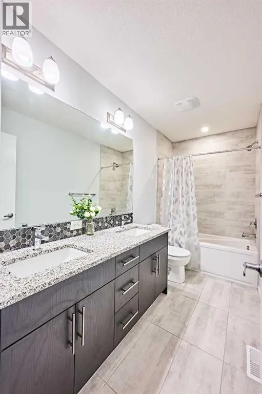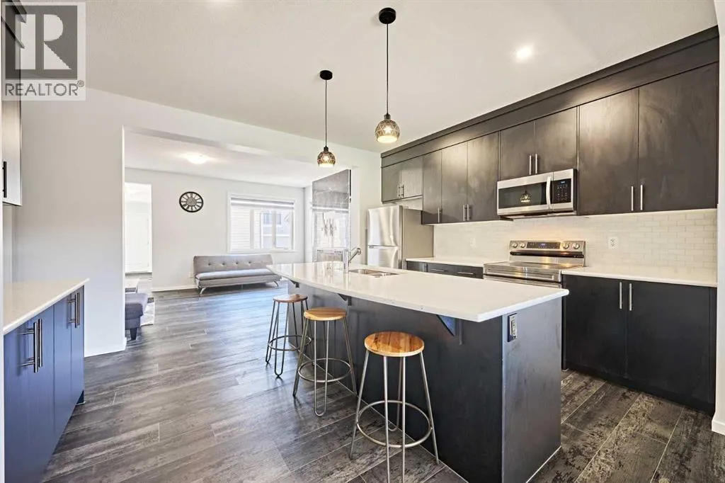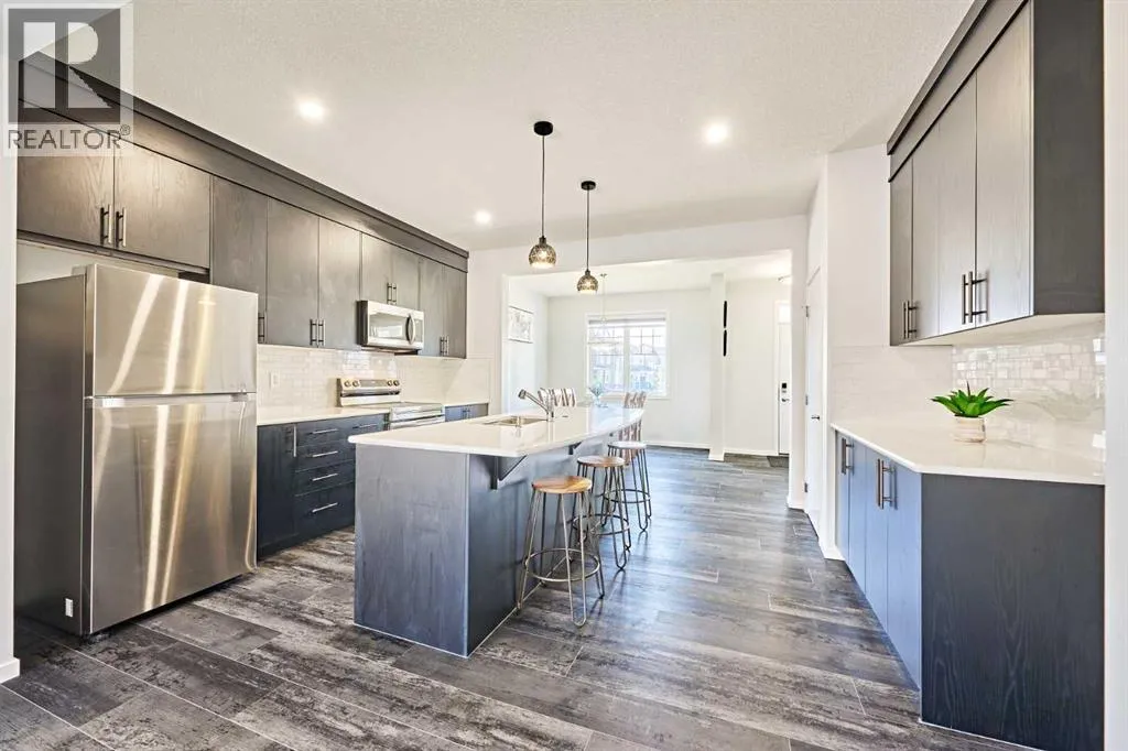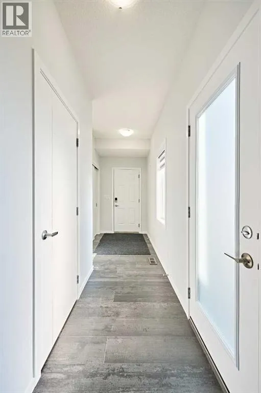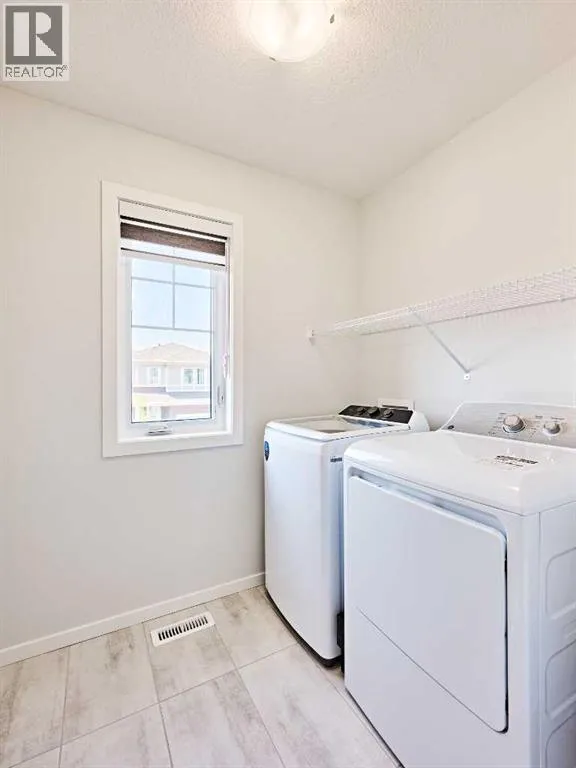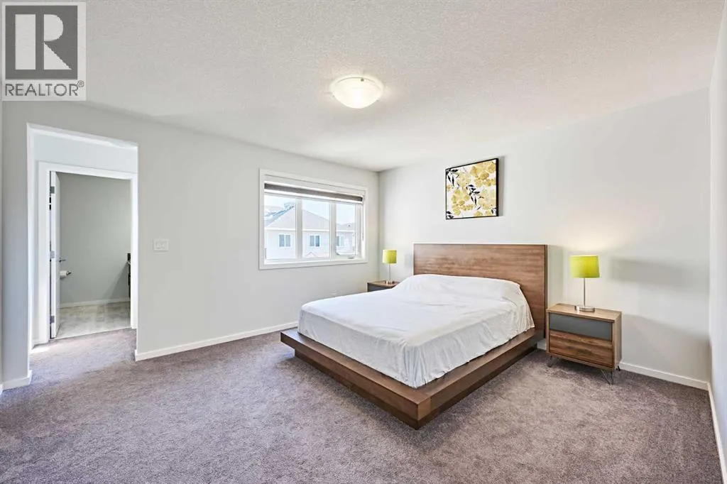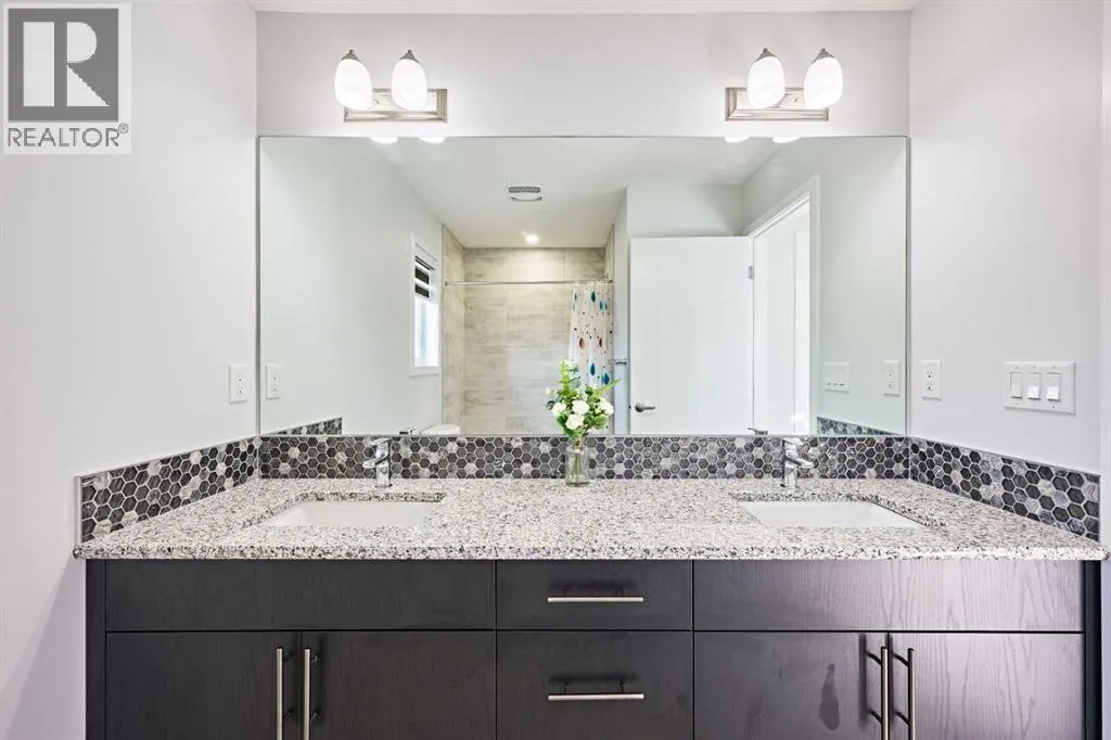 This beautifully upgraded duplex in Carrington offers stylish living with exceptional features throughout.Step through the porch into a spacious front entry, complete with a large closet â perfect for coats and shoes. From there, you're welcomed into a bright open-concept main floor that seamlessly connects the living room, dining area, and a stunning kitchen featuring a huge quartz island, ceiling-height cabinets, and a custom backsplash. The living room showcases a sleek dark-themed feature TV wall with an electric fireplace, adding a modern and elegant touch.At the back of the home, the mudroom provides direct access to the garage, keeping your space organized and functional.Head upstairs via the upgraded railing, where the primary bedroom boasts a spacious 5-piece ensuite, while two additional bedrooms share another full bathroom. Both bathrooms are upgraded with double vanities and granite countertops. A bright, windowed laundry area completes the upper level.The flooring throughout the main and upper levels is modern luxury vinyl plank, while all bedrooms are finished with stylish and comfortable carpet.The private backyard has just been finished with professionally designed new landscaping, creating the perfect outdoor retreat. The unfinished basement (over 750 sq. ft.) is ready for your personal touch, offering endless potential. Located in a prime area of Carrington, this home is close to future commercial developments and offers convenient access to grocery stores, shopping, dining, parks, and more. Additional upgrades include central A/C installed in 2023, new roof and siding installed in 2024, and a garage door upgrade completed in 2025. (id:27476)