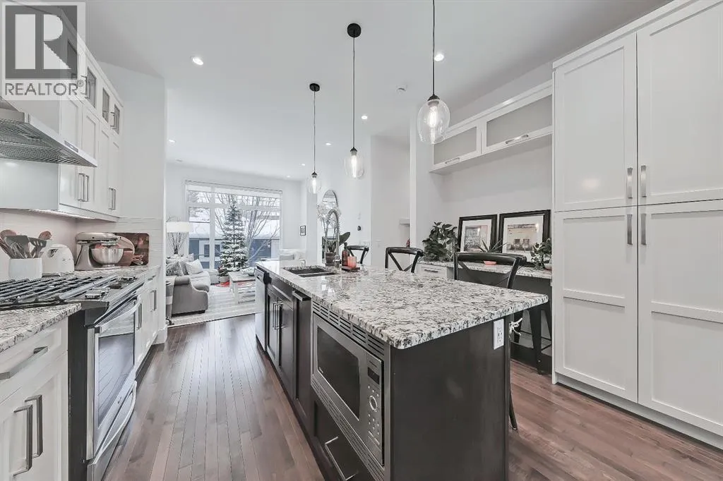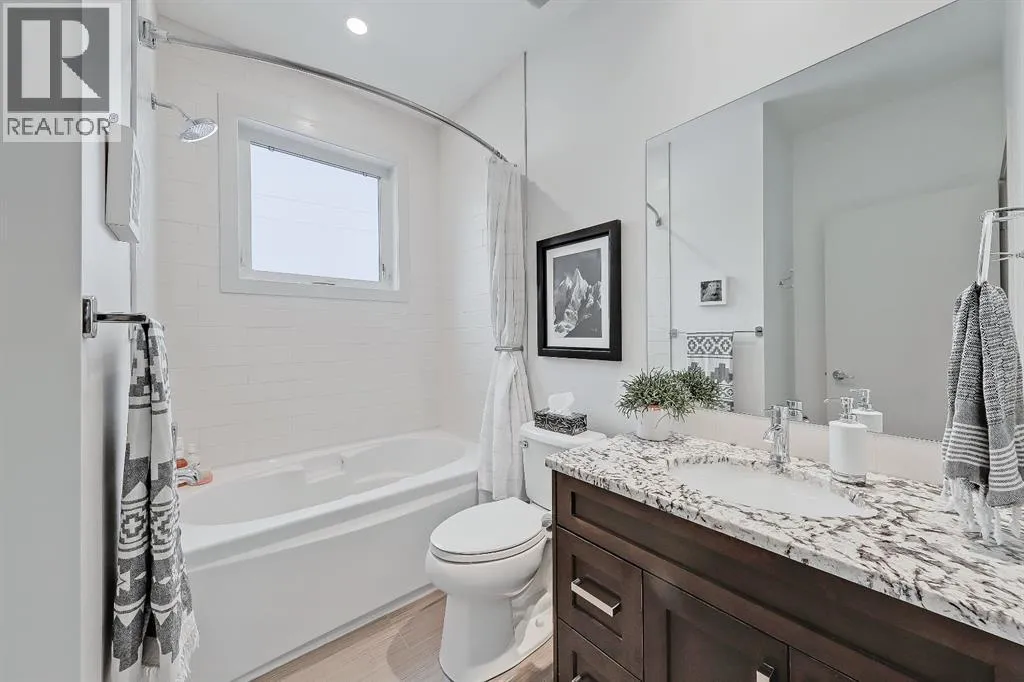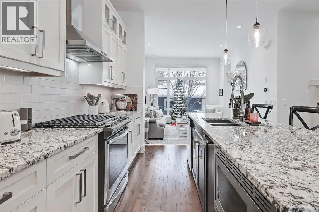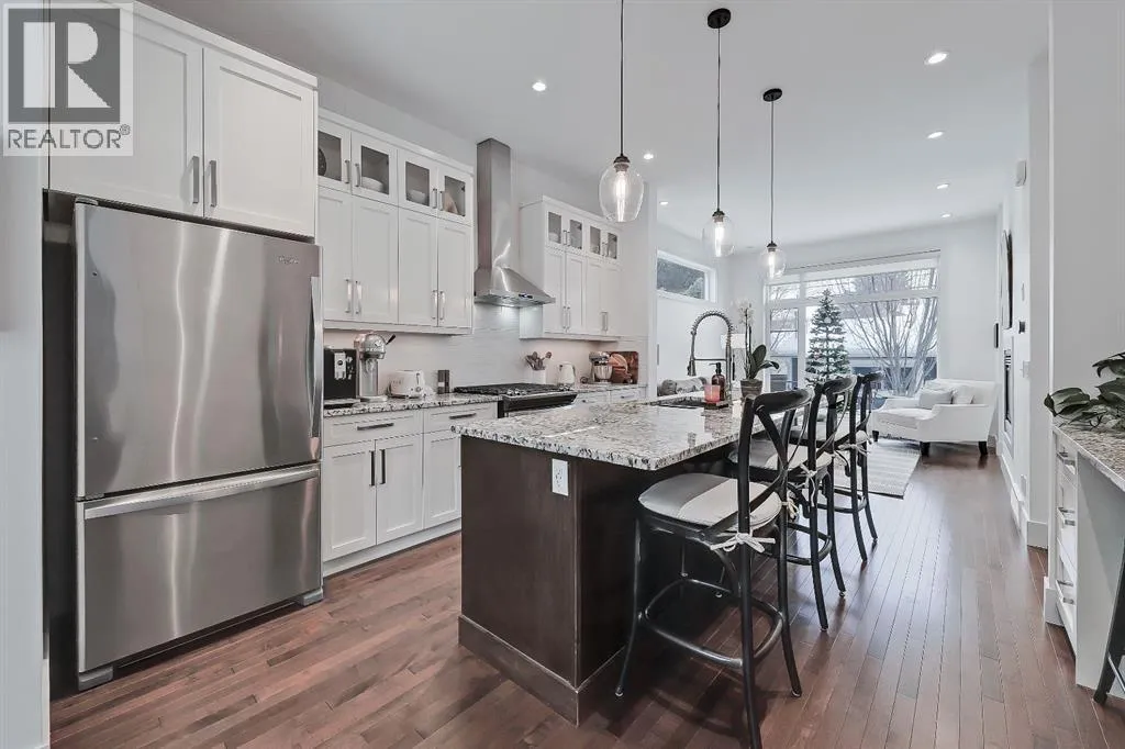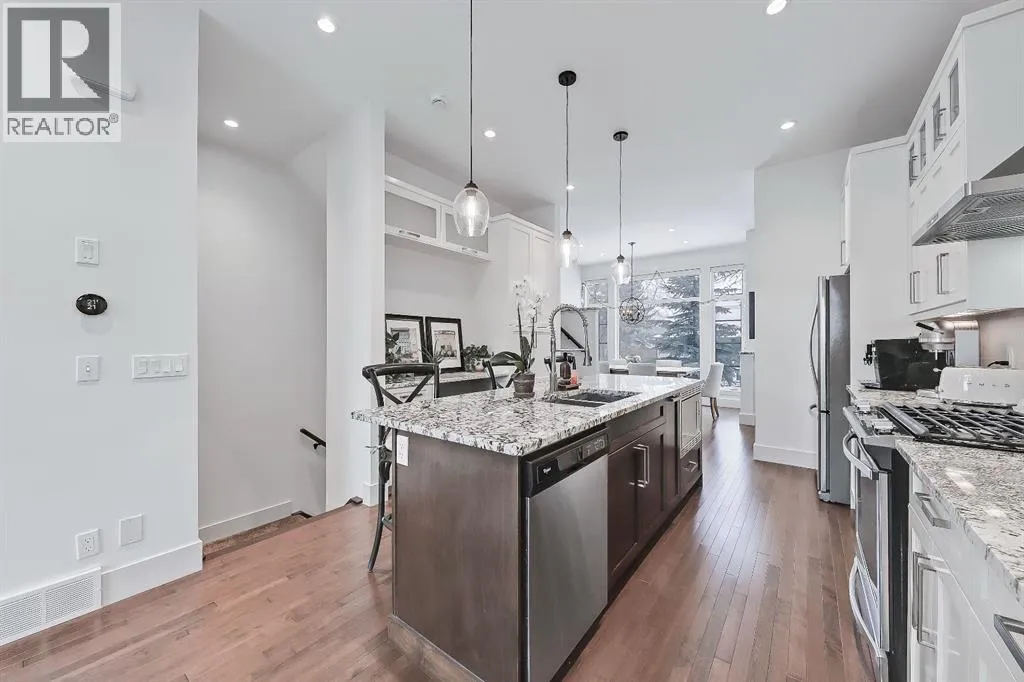 This semi-detached home in Renfrew delivers a bright, modern lifestyle in one of Calgaryâs most walkable inner city communities. With 4 bedrooms, 3.5 bathrooms, and a thoughtfully updated interior, it offers the kind of everyday comfort and design-forward details that make it feel instantly welcoming. The main floor opens with 10 ft ceilings, warm hardwood, and big windows that carry natural light from front to back. A true dining room anchors the front of the homeâbright, inviting, and perfectly sized for hostingâwhile still feeling connected to the main living space. The gourmet kitchen is the heart of the main level, built with GRANITE COUNTERS, CUSTOM CABINETRY, STAINLESS STEEL APPLIANCES, and a large island that works for prepping, gathering, or weeknight meals. The layout keeps everything flowing smoothly toward the living area, where generous seating space makes it easy to settle in, anchored by a cozy GAS FIREPLACEâperfect for chilly evenings. At the back of the home, a functional mudroom includes a good-sized closet to keep shoes, coats, and everyday gear neatly organized. Upstairs, the PRIMARY SUITE feels elevated and calm with its 11 ft ceiling and RENOVATED ENSUITE. The ensuite features DUAL VANITY, updated finishes, and a large glass shower that adds a spa-like feel. Two additional bedrooms share a full bathroom, and UPPER LAUNDRY keeps daily routines simple and efficient. The fully developed basement adds valuable extra living space. A spacious family room offers flexibility for movie nights, play space, or a home gym, and the BUILT-IN WORKSTATION makes work-from-home days easier. A full bathroom and a fourth bedroom with a WALK-IN CLOSET complete the level, creating a comfortable setup for guests or older kids. Outside, the PROFESSIONALLY LANDSCAPED BACKYARD is ready for relaxing, gardening, or outdoor entertaining, featuring a new deck and sunny SOUTH exposure that fills the space with warmth and natural lightâideal for lounging in the sun, firing up the BBQ, and hosting friends and family. A DOUBLE DETACHED GARAGE adds everyday ease with secure parking year-round, plus plenty of extra room for bikes, seasonal gear, tools, and storage. Set in a quiet pocket of Renfrew, this home gives you fast access to parks, pathways, schools, and neighbourhood favourites. Youâre close to the Renfrew Aquatic Centre, the community sports fields, and the shops and restaurants in both Renfrew and Bridgeland. Quick downtown access and nearby transit make commuting easy, while the areaâs strong community feel and walkability add to the day-to-day experience. Altogether, this property stands out as a well-finished, thoughtfully updated inner city home with strong lifestyle value. See it for yourself today! (id:27476)