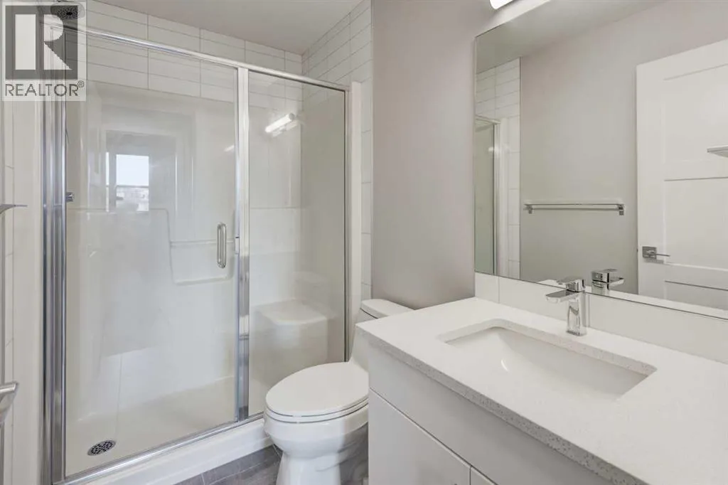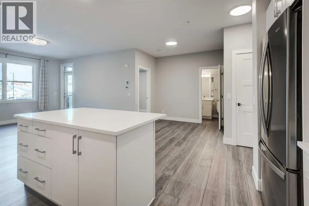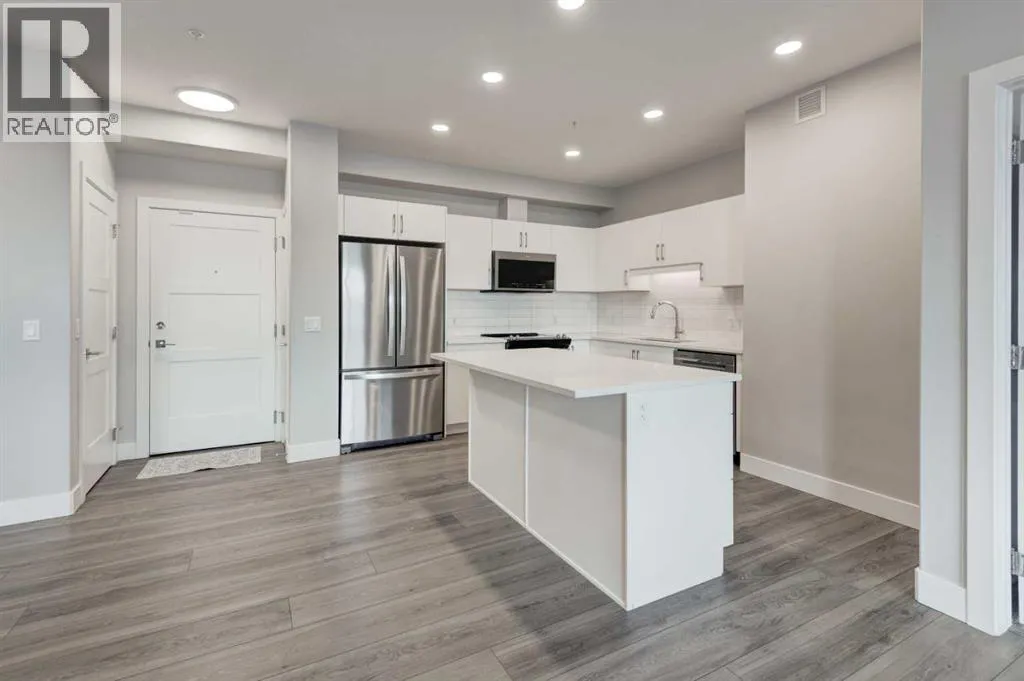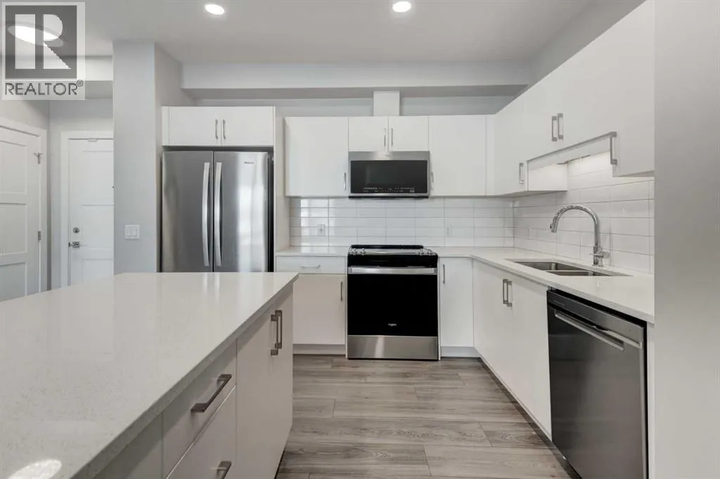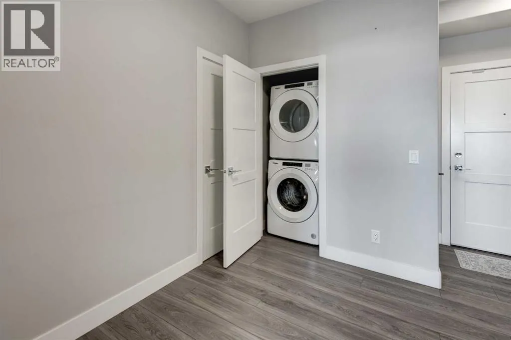 Donât miss out on this 2023-built unitâit still looks brand new inside. It is perfect for a first-time buyer or investor. This unit has only one neighbouring side and features an open-concept floor plan with 9 ft ceilings. The spacious living room comfortably fits a full-size couch, and a patio door leads out to the deck. The modern, bright white kitchen includes QUARTZ countertops, ample cabinet storage, a centre island, and stainless steel appliances. There are two good-sized bedrooms. The primary bedroom includes a walk-in closet and a 3-piece ensuite. The second bedroom also has a walk-in closet and direct access to the 4-piece bathroom. In-unit washer and dryer included. The titled underground parking stall is large enough for an SUV, The assigned storage room is the largest one in the building, and the owner paid $5,500 for it. Walking distance to Aspen Landing Shopping Centre, and only a 5 minute drive to the 69 St C-Train station, Rundle College, the well-known Griffith Woods School (Kâ9), and Ernest Manning High School. (id:27476)