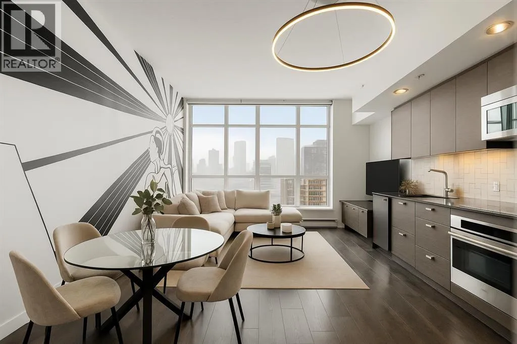 A million dollar view AND underground parking at Drake for under $260K! Sitting 150 feet up in the air looking out to the sparkling downtown skyline, you will feel right at home in this contemporary condo. Perfectly situated a block from 17th Avenue, providing instant access to all of the best restaurants, pubs, cocktail bars + coffee shops Calgary has to offer. Step inside to find an open concept floor plan, art feature wall, wood flooring + large windows. The fashionable kitchen shines with granite counters, stainless steel appliances, dark cabinetry + tile backsplash. Loads of great smart storage options throughout the space and also comes with in-suite laundry plus that coveted underground parking stall. Boasting a rare perfect Walkscore of 100, there is little convincing needed that this prime + central location is at the heartbeat of our city. Whether you're stepping into homeownership or strengthening your rental strategy, this condo delivers big value for a small cost. (id:27476)