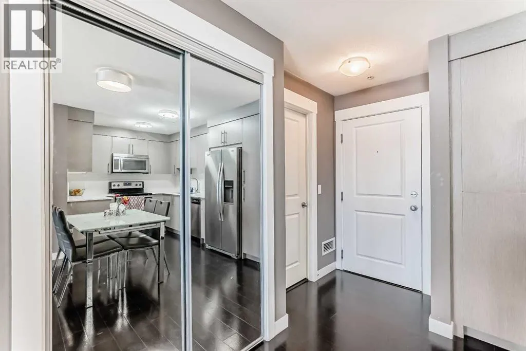 Welcome to modern and beautifully appointed 2-bedroom, 2-bathroom condo backing to green space located in the vibrant community of Skyview Ranch. Ideal for first-time buyers, young professionals, or investors, this stylish home features an open-concept layout with abundant natural light. The unit features a generous living room that provides a comfortable space to relax and extends to a private balcony facing the tranquil green spaceâperfect for enjoying the morning sunrise or settle in for peaceful evenings. A corner chef inspired kitchen with stainless steal appliances and plenty of storage. This thoughtfully designed layout features a spacious primary bedroom complete with double closet and a stylish ensuite. The second bedroom is ideal for guests or as a comfortable space for a growing family. Additional highlights include another 4 piece bathroom, in-suite laundry, an open office area, titled underground parking, and convenient access to amenities such as visitor parking. Enjoy the convenience of quick access to major roadways, including Deerfoot Trail and Stoney Trail, along with nearby public transit for an easy commute to downtown Calgary. Youâre also just minutes from the International Airport. Skyview Ranch is a family-friendly neighborhood offering schools, parks, and shopping within walking distance, plus a short drive to Costco, CrossIron Mills, Chalo FreshCo, Shoppers and many more for all your everyday needs. Donât miss this outstanding opportunity to own a contemporary home in one of Calgaryâs fastest-growing communities. (id:27476)