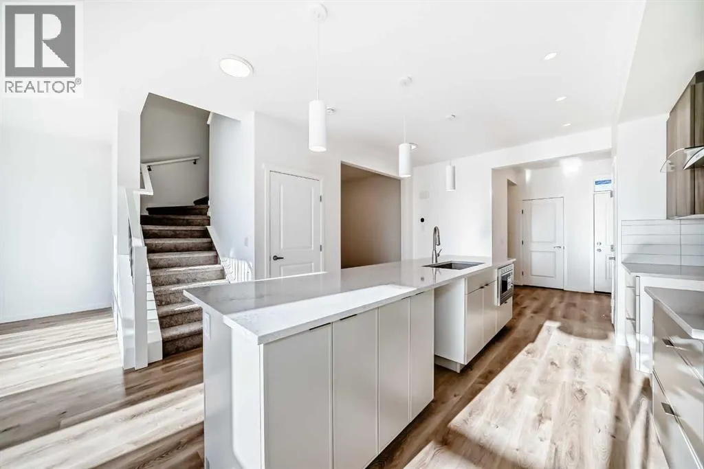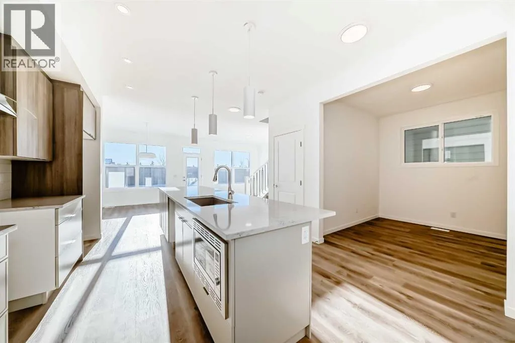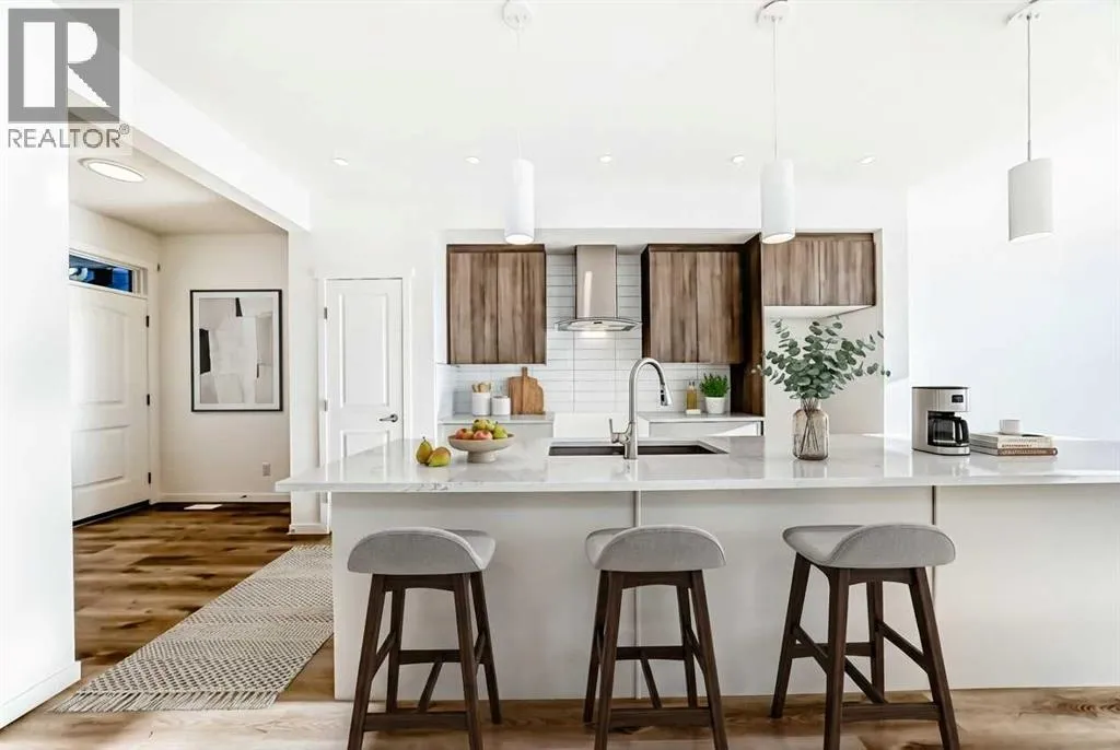 Boxing Day pricing starts NOW! Introducing the exquisite âTilsaâ by Hopewell Residential in Calgaryâs award-winning lake community of Mahoganyâwhere thoughtful design, modern finishes, and four-season lifestyle all come together. From the moment you arrive, this home feels inviting and functional, with an expansive floor plan thatâs made for busy families, casual get-togethers, and everything in between. Step inside and youâre greeted by a versatile main-floor flex room that can easily adapt as your life doesâhome office, kidsâ homework zone, playroom, or hobby space. Just beyond, the open-concept living and dining area creates a seamless flow thatâs perfect for entertaining. Large windows draw in natural light and frame your main floor in a warm, comfortable glow, whether youâre hosting friends for dinner or enjoying a quiet night in. At the heart of the home sits a chef-inspired kitchen thatâs as beautiful as it is functional. The spacious central island offers plenty of seating for casual breakfasts or after-school snacks, while the gorgeous quartz countertops, two-tone cabinetry, extra drawers for organized storage, and classic stacked subway tile backsplash elevate the space with timeless style. A sleek chimney hood fan and stainless steel appliances complete the picture, giving you a kitchen thatâs ready for everything from weeknight meals to holiday hosting. Upstairs, the layout is designed with family living in mind. A perfectly placed central bonus room separates the primary suite from the additional bedrooms, adding privacy and creating an ideal spot for movie marathons, game nights, or watching the big game. The primary bedroom is a true retreatâspacious, serene, and tucked awayâfeaturing a luxurious 5-piece ensuite with dual sinks, a soaker tub, separate shower, and a large walk-in closet to keep everything neatly organized. The additional bedrooms are bright and comfortable, ideal for kids, guests, or a second home office. The upper-floor laundry is jus t steps away from all bedrooms, making day-to-day living that much easier. Outside, this home is set up for sun-filled outdoor living. With sunny south exposure, youâll enjoy warm, bright days on your future deck or patioâperfect for summer BBQs, backyard hangouts, or just unwinding after a day at the lake. The 9' foundation and secondary side entrance open the door to future basement development, making this home ready for a potential secondary suite or extended family space down the road (a secondary suite would be subject to approval and permitting by the city/municipality). A double attached garage provides plenty of room for vehicles, storage, and all your lake toys. Living in Mahogany means youâre not just buying a homeâyouâre stepping into a lifestyle. This is one of Calgaryâs most sought-after communities, centred around a 63-acre freshwater lake with two private beaches, perfect for swimming, paddleboarding, and lakeside picnics in the summer, plus skating and winter fun when the seasons change. (id:27476)