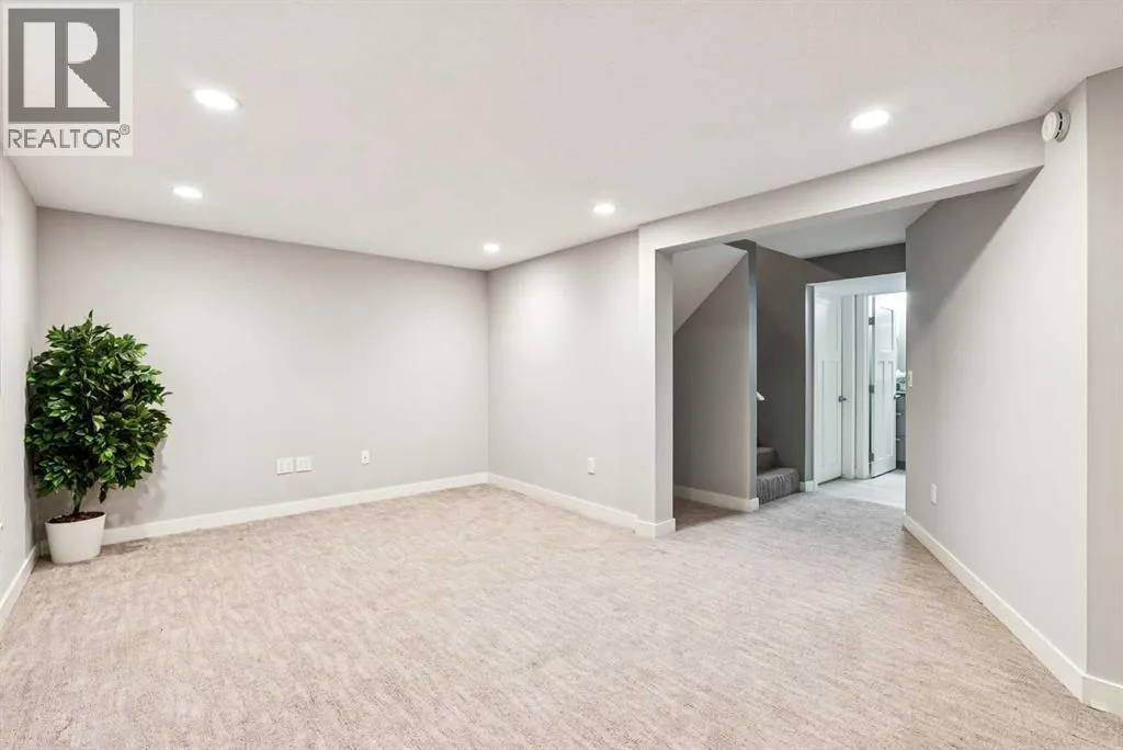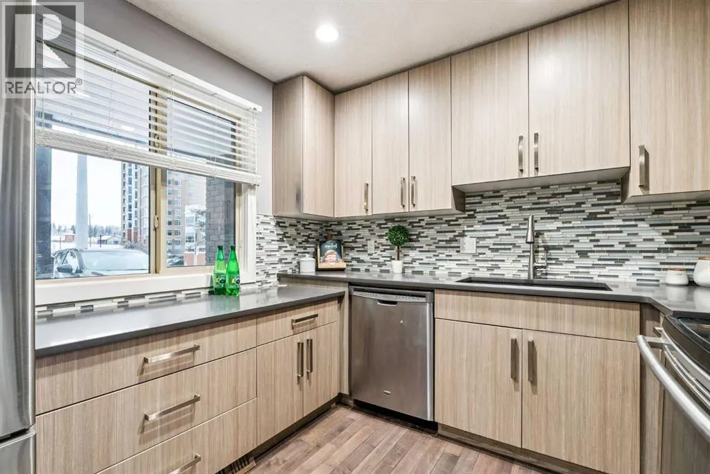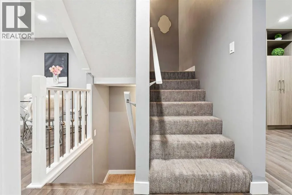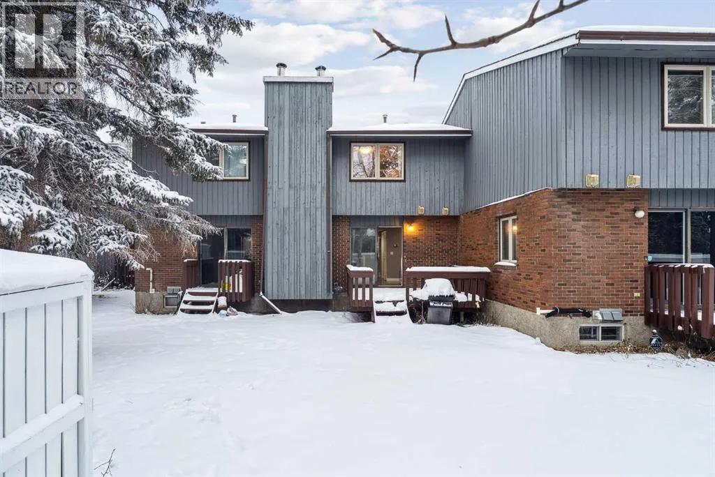 This beautifully cared-for and updated townhouse in Varsity offers the perfect blend of comfort, functionality, and location â ideal for small families or first-time buyers. The main floor features maple hardwood, fresh neutral paint, and an updated kitchen with quartz counters, stainless steel appliances, modern cabinetry, and tile backsplash. The spacious living room includes a cozy fireplace and opens onto a private deck overlooking quiet, shared green space â perfect for morning coffee, entertaining, or watching the kids play nearby. Upstairs offers three generous bedrooms, including a large primary with access to a full bathroom and a private, sun-filled balcony. The lower level is professionally finished with a spacious family room, a full bathroom, and a large storage area â great for a home gym, play area, or media room. The windows have been upgraded to vinyl, adding efficiency and peace of mind. The private south-facing yard backs onto mature trees and green space, offering a peaceful setting with no direct rear neighbours. Youâll also enjoy the convenience of a single attached garage and an additional uncovered parking stall for your guests. Located close to shopping centres, the University of Calgary, and the LRT, this home delivers excellent value in one of Calgaryâs most sought-after communities. The complex is self-managed and well-run, with low condo fees of $200/month. (id:27476)