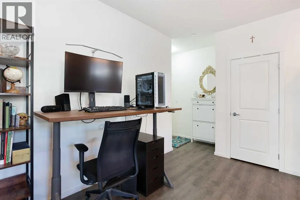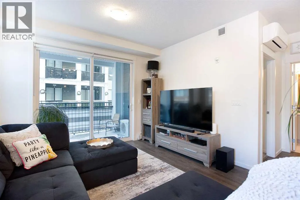 Welcome to a charming main-floor corner unit nestled in the heart of the Legacy community. This inviting 1-bedroom, 1-bathroom condo offers 690 square feet of comfortable, open-concept living space. The bright and airy layout features a modern kitchen complete with a central island finished with quartz countertops, a spacious pantry, and durable luxury vinyl plank flooring that adds both style and practicality. The living area opens seamlessly to a private balconyâperfect for relaxing or enjoying your morning coffee. The generous bedroom includes a custom closet designed for optimal storage, while the stylish bathroom provides both comfort and convenience.This unit offers exceptional practicality with air conditioning for year-round comfort, a surface parking stall just steps away, and an underground storage locker for added convenience. Located directly across the street from All Saints High School, itâs an excellent choice for a teacher or staff member looking to live close to work, while also appealing to investors, couples, or professionals seeking a low-maintenance lifestyle.Living in Legacy means enjoying a vibrant, master-planned community rich with amenities. Residents can take advantage of beautiful parks, scenic walking and biking paths, and abundant green spaces perfect for outdoor activities. The neighborhood offers convenient shopping and dining options, ensuring day-to-day needs are met with ease. Legacy also hosts community events throughout the year and fosters a warm, welcoming atmosphere that truly sets it apart. (id:27476)