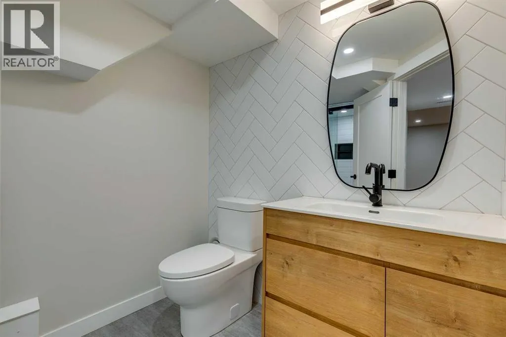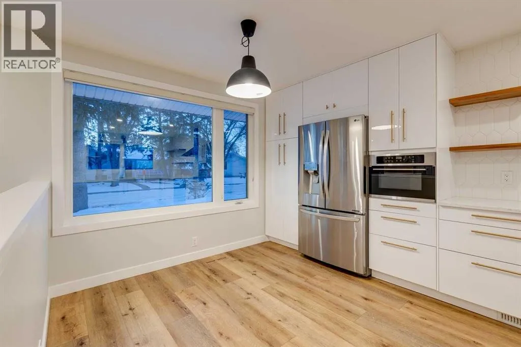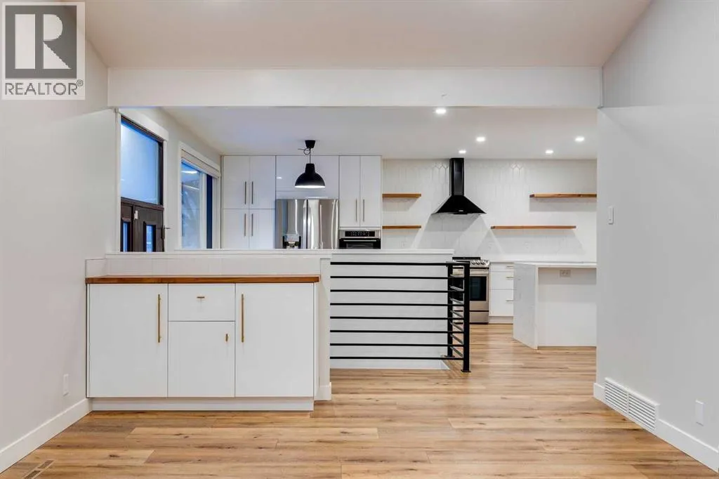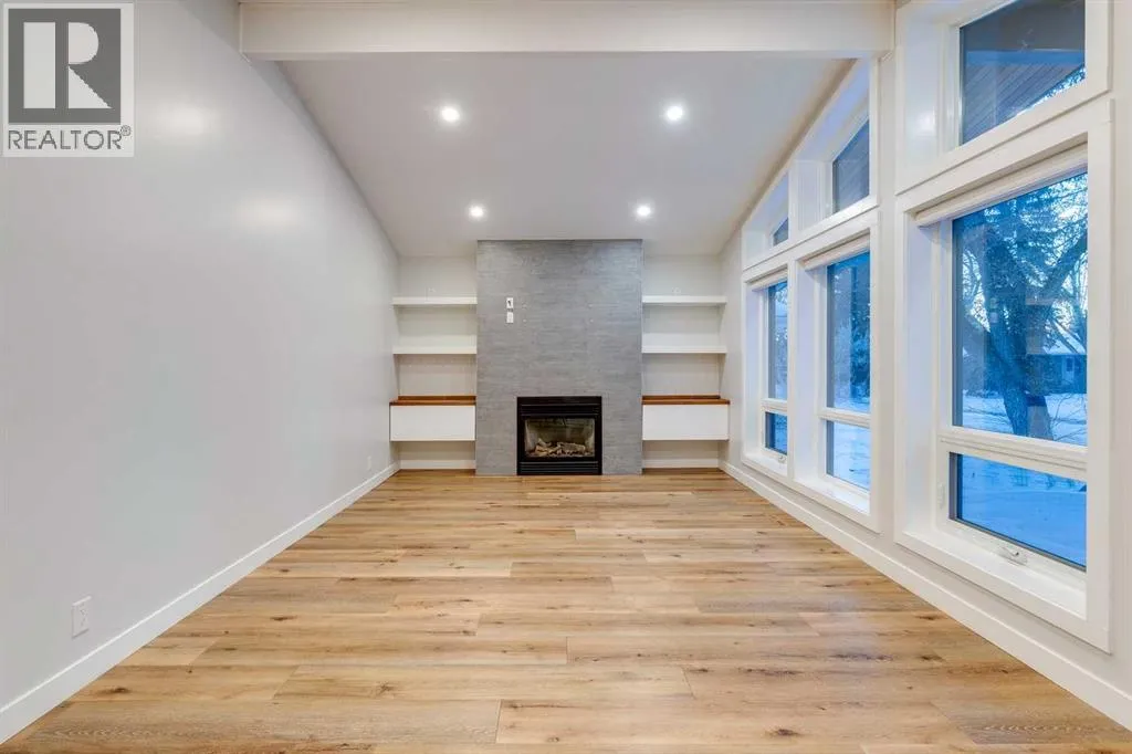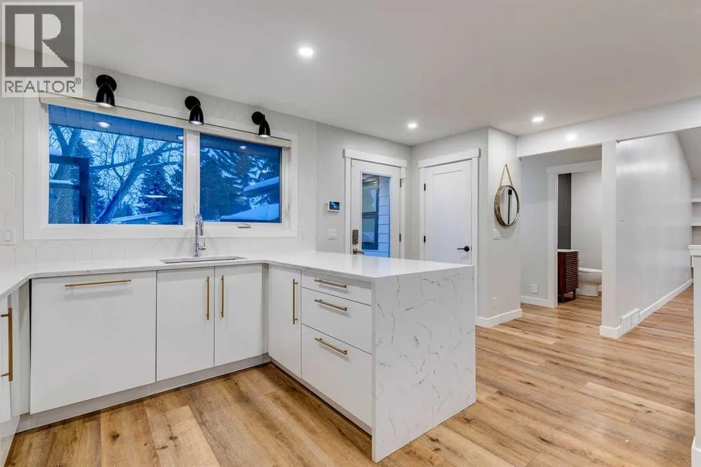Welcome to our beautifully remodelled bungalow in the highly coveted community of Lakeview. The bright and modern main level is showcased with vaulted ceilings, floor to ceiling windows, and a warm and inviting gas fireplace in the living area. The open concept design allows seamless transition into the kitchen and dining area, complete with stainless steel appliances, a granite waterfall countertop and a full height pantry. A bespoke powder room sits just off the main living area before you walk down the hallway, where you will find a contemporary 4 piece bathroom, and three bedrooms, all with new carpet. Each room has new large casement windows with coverings, and recessed lighting. Downstairs youâll find an oversized and secluded gym area with plenty of storage, before entering the family room, complete with electric fireplace and trendy hearth. A wet bar is roughed in, should you choose to complete the rec room conversion, perfect for entertaining and game nights. Down the hall youâll find another 3 piece bathroom with full shower and niche, two additional bedrooms, and a finished laundry room, with sink and central vac system. This stunning home underwent extensive renovations completed in 2023, including new windows and James Hardie siding, as well as new soffits, gutters and roofing. The beautiful front yard is complete with low maintenance hardscape and a patio, perfect for your morning coffee. The backyard boasts a large deck with pergola as well as a fresh lawn and beautiful landscaping. Mature trees in both the front and back add extra privacy and serenity to the outdoor spaces, perfect for relaxation or hosting. The oversized double garage is insulated and finished, giving it a clean and open aesthetic, complete with work bench, storage cabinets and 220V power. Situated on a secluded crescent, but just minutes from Crowchild and Glenmore, this is truly an unbeatable location. Lakeview and Earl Grey Golf Clubs, North Glenmore Park and the Glenmore Ath letic Park are all within walking distance, along with numerous schools, parks and walking paths. Donât miss your opportunity to check out this gorgeous property; reach out to your realtor today to book a showing before itâs too late! (id:27476)