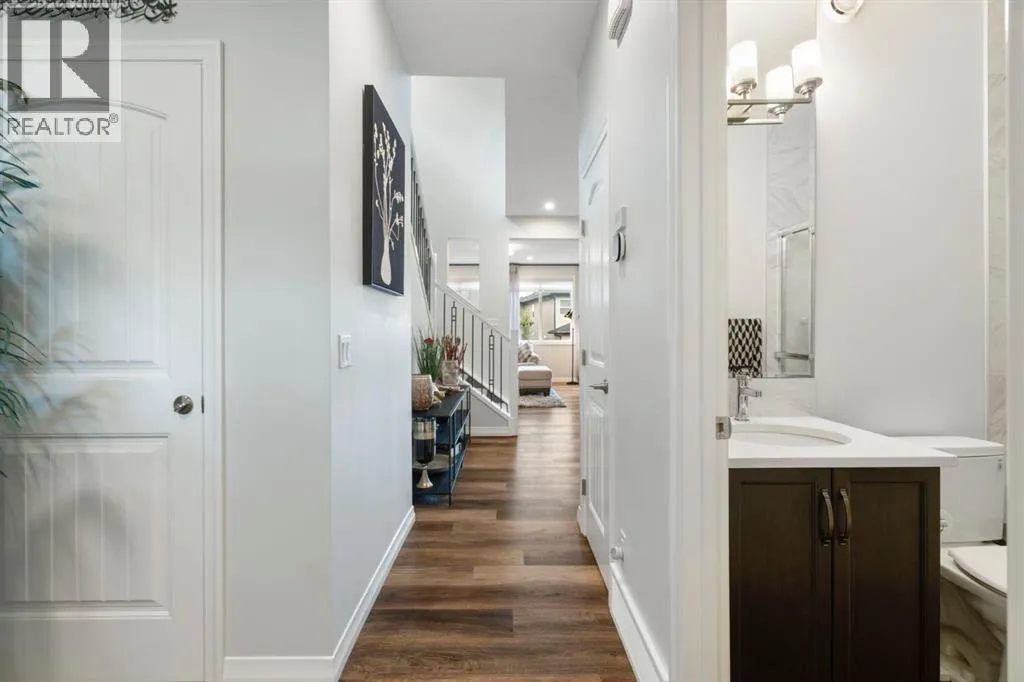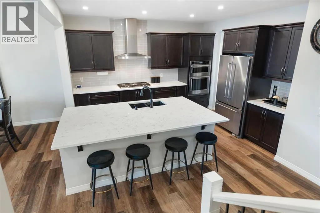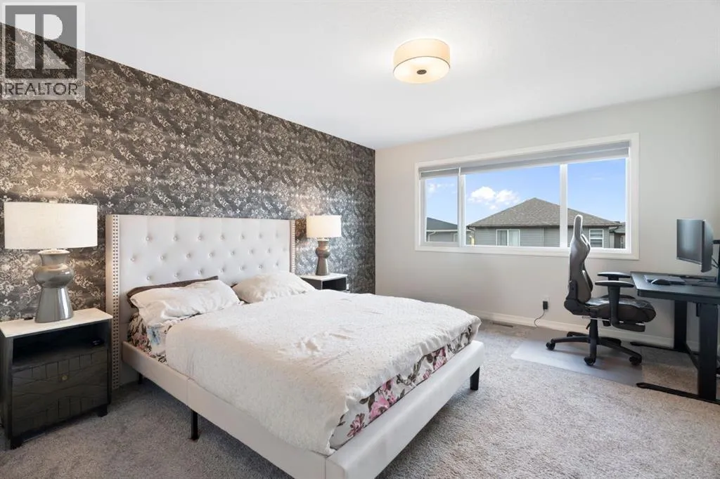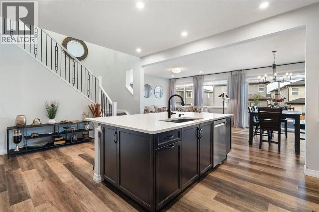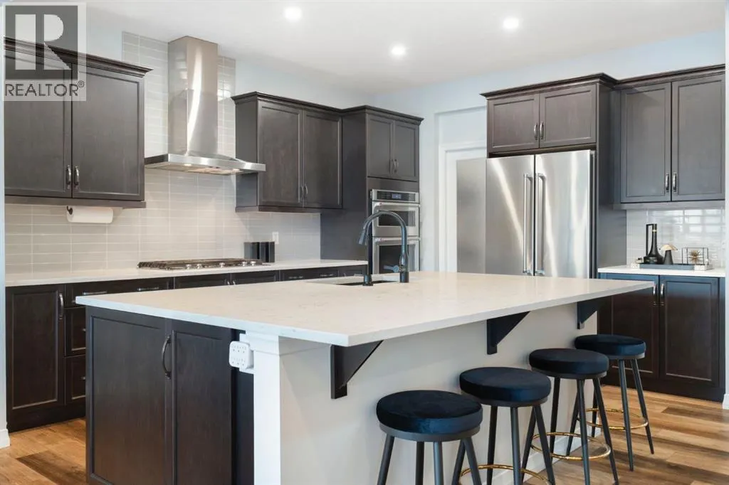 Welcome to this beautifully appointed 2-storey home with a legal basement suite in the vibrant community of Cornerstone perfect for families, multi-generational living, or those looking for an income opportunity. Offering over 3,300 sq ft of living space, this home combines thoughtful design, stylish upgrades, and energy-efficient features for a truly exceptional lifestyle. From the moment you step inside, youâre greeted by a bright, open main level with soaring ceilings and large windows that fill the space with natural light. The executive kitchen is the heart of the home, showcasing a massive upgraded quartz island, premium cabinetry, stainless steel appliances, and a walk-through pantry. Whether youâre hosting family dinners or casual get-togethers, this kitchen is designed for connection. The main floor also features a bedroom with full bath, ideal for guests or extended family, plus easy access to the maintenance-free composite deck perfect for summer BBQs and quiet evenings outdoors. Upstairs, youâll find three spacious bedrooms, including a serene primary retreat with a walk-in closet and spa-inspired ensuite. A generous den offers the perfect spot for movie nights or playtime, while the laundry room adds convenience to daily life. The legal basement suite is a standout feature, complete with its own private entrance, open kitchen and living area, 2 bedrooms, full bath, and separate laundry, ideal for generating rental income or offering comfortable space for extended family. This home is loaded with builder-installed upgrades, including centralized air conditioning, triple-pane windows with low-e and argon fill, a 220-volt/30-amp electric vehicle charging outlet in the garage, an HRV (heat recovery ventilation) system, and a UV-C ultraviolet air purification system installed in the furnace. Additional features like builder-installed solar panels, a Navien tankless water heater, and a centralized water softener help you save on utilities while enjoying moder n comfort. Located in the family-friendly community of Cornerstone, youâre close to parks, pathways, schools, shopping, and have easy access to major routes, making every day effortless and enjoyable. You donât want to miss your chance to see this one! (id:27476)
