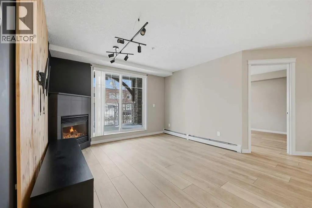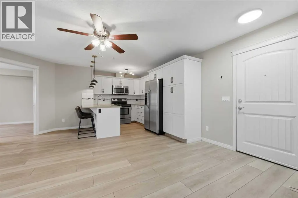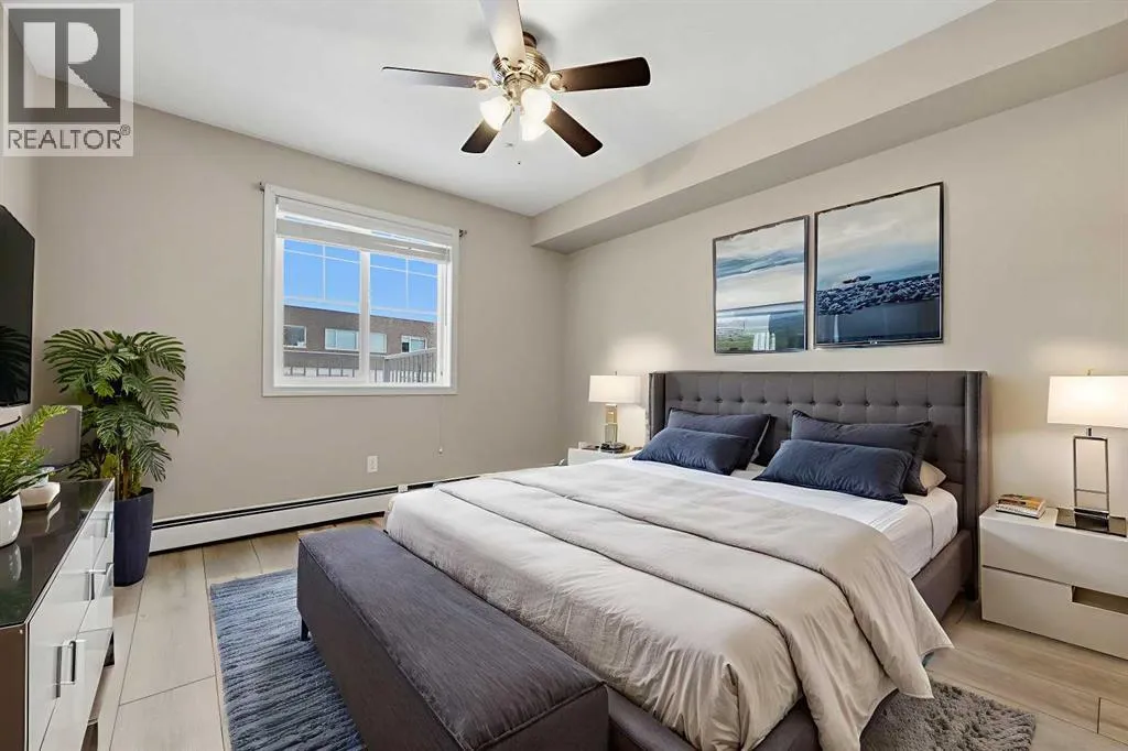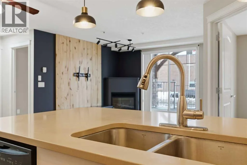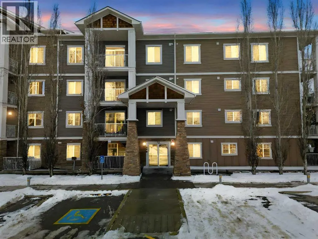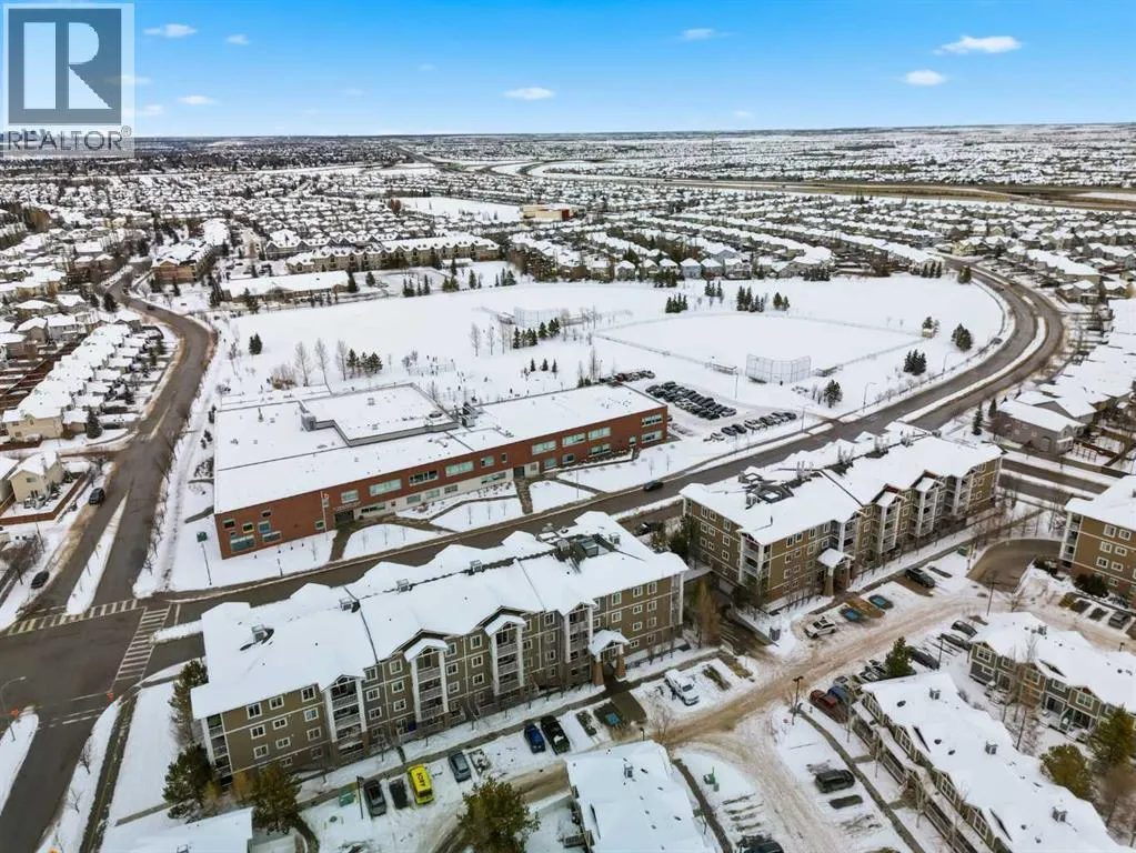 Discover unbeatable convenience in this bright and well-kept 2-bedroom, 2-bath main-floor unit in Cranston Place: a rare street-level patio entrance gives this condo the feel of a detached home. The spacious patio opens directly to the sidewalk and is conveniently located right across from Dr. George Stanley School (Grades 5â9), making this a fantastic fit for families with older elementary or junior-high children. Inside, the open-concept layout is warm and inviting with quartz countertops, stainless steel appliances, ample cabinetry, and luxury vinyl plank flooring throughout. The living room features a cozy gas fireplace; the primary bedroom boasts a walk-in closet and private ensuite, while a second bedroom and full bath offer ideal separation for guests, roommates or a home office. Additional conveniences include a generous in-suite laundry room, titled underground parking, and an assigned storage locker. The location offers quick access to local amenities: nearby green spaces, parks, walking paths, shopping, transit connections, and major roadways. Well-managed and low-maintenance, this complex delivers exceptional value in one of Calgaryâs sought-after communities. Donât miss the opportunity to own a rare ground-floor home-style unit in Cranston with true street access and unbeatable convenience. (id:27476)