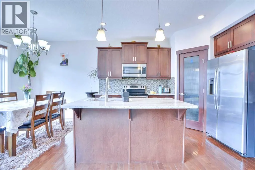 **WATCH VIDEO!** Welcome to 21 Saddlelake Gardens! 2014-built 2018 sq ft 2 Storey Home w/ Double Front Garage, Double Master Bedrooms, Illegal Rental Basement Suite in a prime location of Saddleridge, walking distance to school! Main level: open foyer, open living room, separate family room w/ gas fireplace, open to a wonderful kitchen w/ plenty of cabinets, stainless steel appliances, granite counters, & more; deck off of the eating area, and a half bath & laundry complete the main level. Upstairs, 4 bedrooms, 3 full baths, which means you have 2 MASTER BEDROOMS! Main master has a 5-piece ensuite bath w/ a soaker tub, separate shower, & double sink. All spacious bedrooms. All upstairs bathrooms have granite counters. Basement: separate entry, kitchen, huge living room, two bedrooms, and full bath make up for your mortgage helper 2 Bed Illegal RENTAL BASEMENT SUITE! Great location in the heart of Saddleridge's Saddlelake area, walking distance to public elementary school, also close to bus stops, shopping plaza (Tim Horton's, Sanjha Punjab, Liquor Store, gas station & more), Saddletowne Circle (Chalo Freshco, multiple banks, Boston Pizza & other restaurants, medical, & more), Saddletown LRT Train Station, Genesis Place Recreation Centre & Calgary Public Library, a high school, & more! Don't miss out on the opportunity to call this your new home, call your favourite Realtor today! (id:27476)