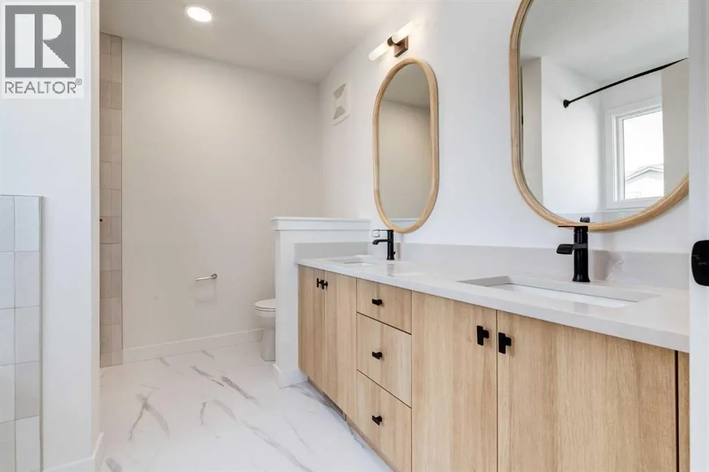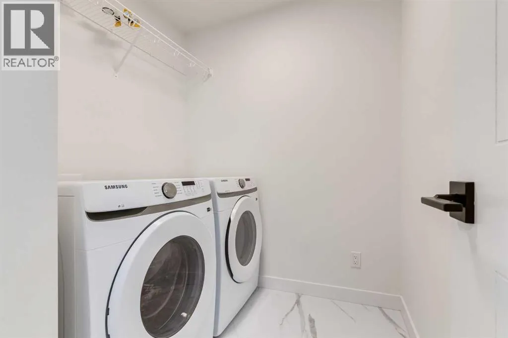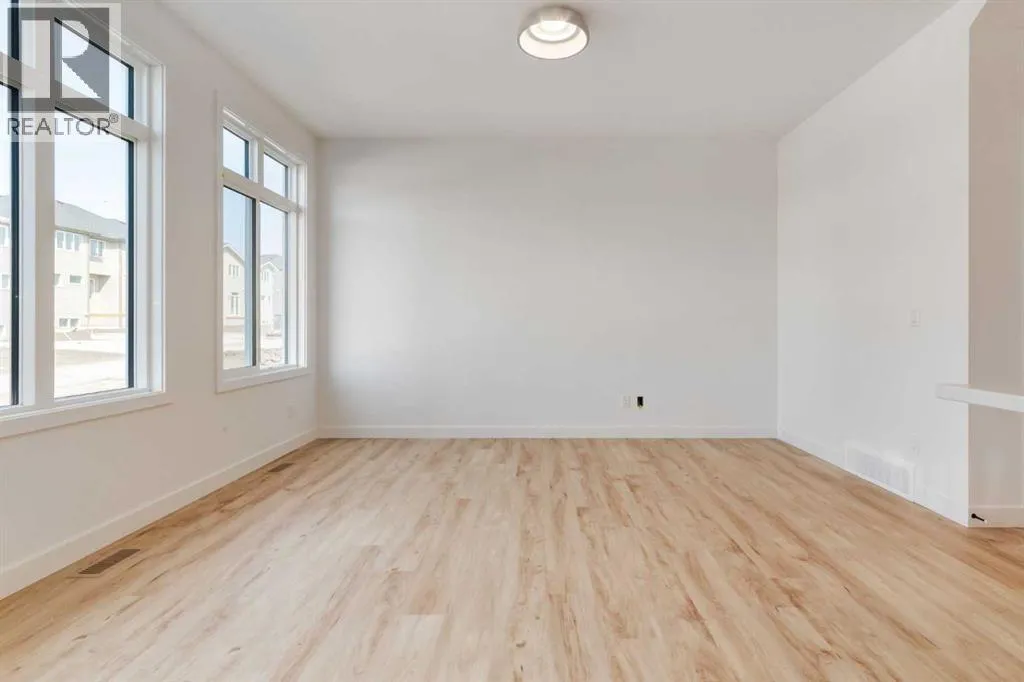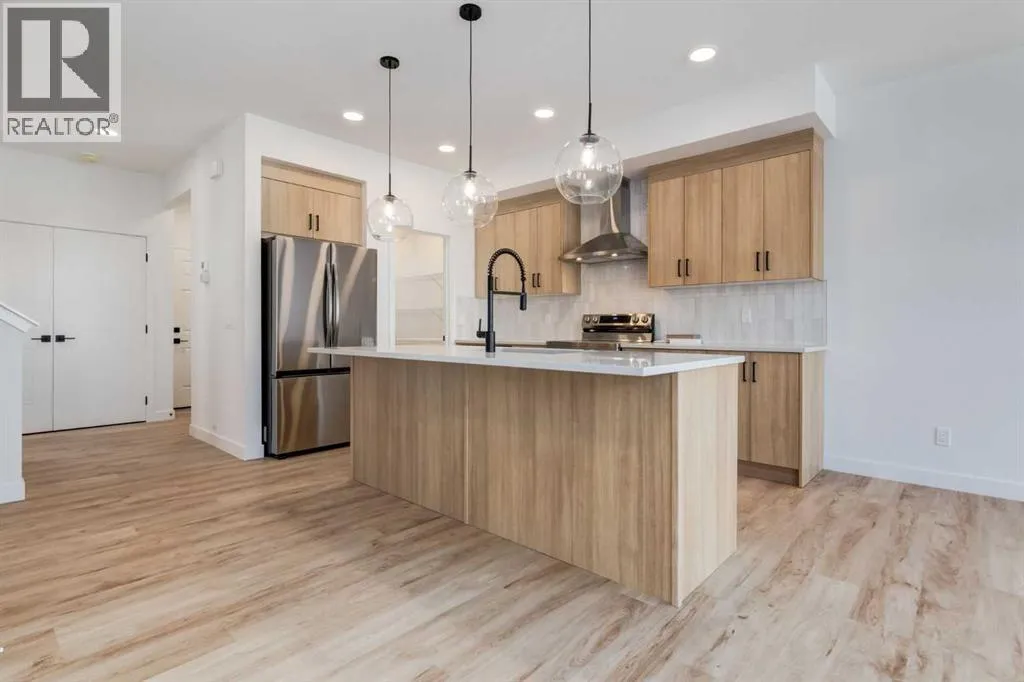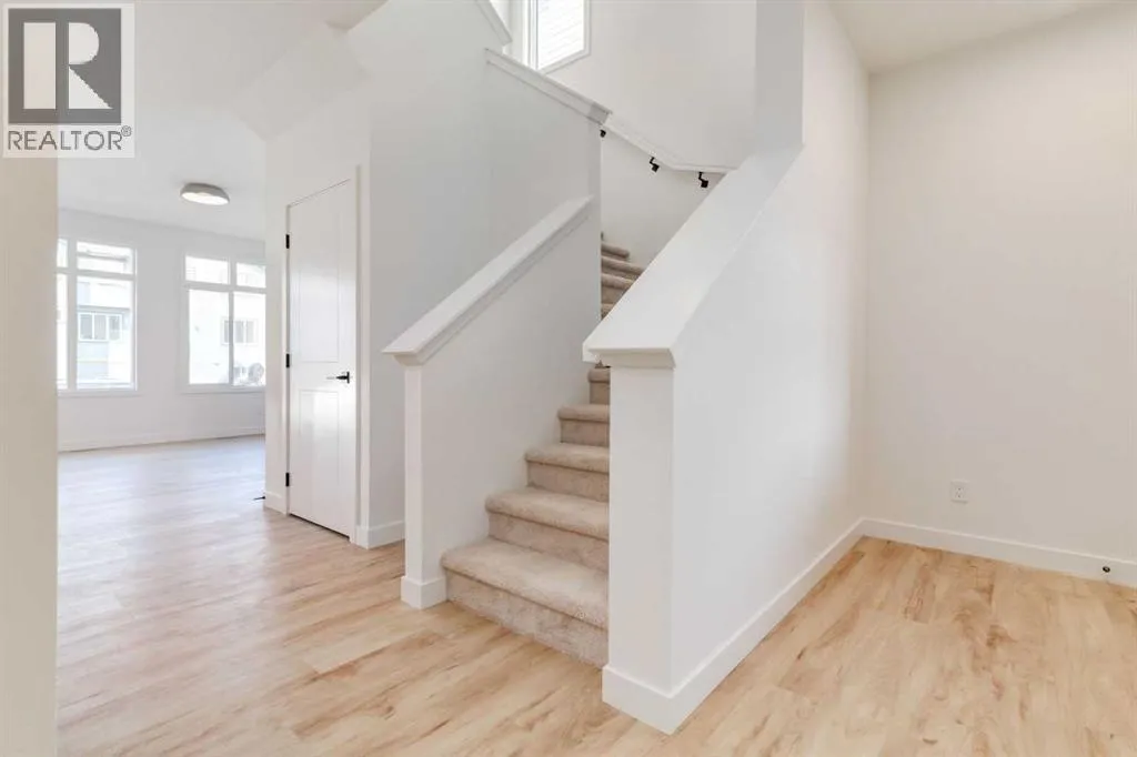Welcome to the Easton by Rohit Homes, a front-attached garage home offering 1657 square feet, three bedrooms upstairs, a central bonus room, and a separate upper laundry room. This thoughtfully designed home features a 9 foot ceiling on the main level, an oversized 8 foot kitchen island, walk-in pantry, side entrance, and a full appliance package including washer and dryer. Designed for both function and comfort, the Easton delivers a layout that supports everyday living while offering flexibility for growing households. The main floor is anchored by a spacious, open-concept kitchen designed around an efficient work triangle for seamless cooking and entertaining. The oversized island comfortably seats four and serves as the heart of the home, while the walk-in pantry adds exceptional storage. Large rear-facing windows flood the living and dining areas with natural light, creating an open, bright, and welcoming atmosphere. A wide foyer provides practical space for coats, footwear, and everyday organization, while the double attached garage offers room for two vehicles plus additional storage. Finished in the Ethereal Zen interior palette, the interior features custom lighting, curated mirrors, and designer-selected details that create a calm, modern aesthetic with layered warmth and texture. Upstairs, the centrally located bonus room provides flexible living space ideal for a media room, home office, or play area. All three bedrooms are located on the upper level, including a generous primary retreat with a sizeable walk-in closet and a full ensuite featuring a soaker tub and shower. The additional bedrooms are well-sized to accommodate queen beds and workspaces. The separate upper laundry room adds everyday convenience and practicality. Located in the southeast Calgary community of Heartwood, residents enjoy quick access to major roadways, nearby shopping, dining, schools, parks, and everyday amenities. With close proximity to Seton, the YMCA, the South Health Campu s, and recreation facilities, Heartwood offers the convenience of established services with the feel of a growing neighborhood. This home is backed by full Alberta New Home Warranty coverage for added peace of mind. (id:27476)