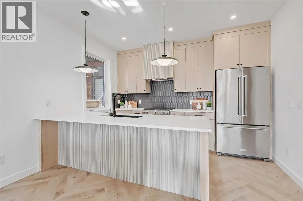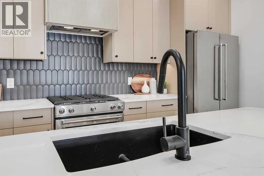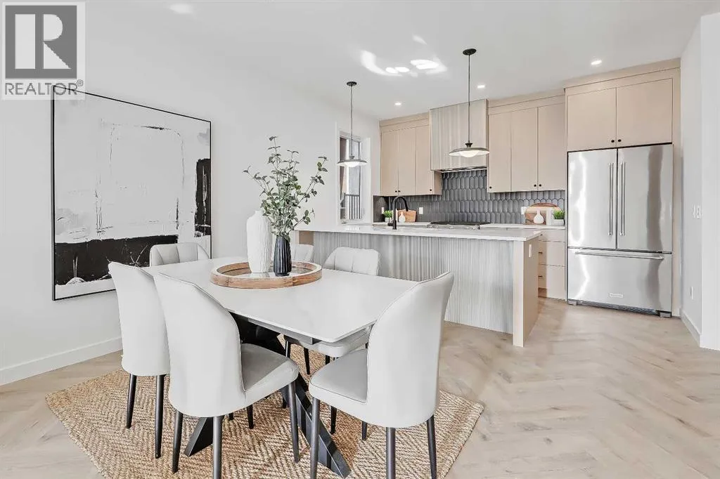 Move into the heart of South Calgary today with this brand-new, walkout townhome that perfectly blends luxury, location, and low-maintenance living! Thoughtfully designed w/ 3 beds, 2.5 baths, and a LEGAL 1 BED SUITE (approved by the city), this is inner-city living without compromise! The interiors strike a perfect balance between modern luxury & livable design. Find high-end finishes that are rare to find at this price point â blonde wood tones, sleek custom cabinetry, and modern & thoughtful tile. Designer hardware, mid-century inspired embellishments, and a clean neutral palette give this space a fresh, elevated vibe. The kitchen is the heart of the home, designed w/ both form and function in mind. A large quartz island anchors the space w/ bar seating for casual meals or morning coffee. There's a full stainless steel appliance package, generous cabinetry, and a stylish backsplash that adds just the right amount of visual interest. It's open to the dining area and spacious living room & balcony, creating the perfect layout for hosting or just relaxing at home. And donât forget the upscale powder room, complete w/ designer lighting. Upstairs, the primary suite feels like a boutique hotel retreat w/ a PRIVATE BALCONY, a large walk-in closet, and a modern 3-pc ensuite w/ a fully tiled walk-in shower. Two additional bedrooms and a full bathroom give you space for guests, kids, or home office! And yes, there's a laundry room upstairs, tucked conveniently between bedrooms. Downstairs is perfectly set up for a mortgage helper, additional income generator, or the perfect spot for multi-generational living w/ a LEGAL 1-BED SUITE (approved by the city). The modern touches flow into this space as well, w/ an open kitchen & living room space w/ ceiling-height cabinetry, stainless steel appliances, and quartz countertops, complete w/ separate laundry, a great-sized bedroom, and a full 4-pc bathroom. There is a separate entrance to the suite, as well as access from the main h ome to the suite for complete ease of use. The suite also boasts a private deck. The low-maintenance landscaping and a detached garage at the back are a serious bonus in the inner city. The backyard also features upright bike racks & secure CycleSafe lockers for added convenience. Youâre tucked into a tree-lined street in South Calgary, but just a short stroll to absolutely everything. Our Daily Brett and South Calgary Pool & library are just at the end of the street, cSPACE King Edwardâs arts & community programming is just a few blocks over, and all the everyday amenities in Marda Loop are w/in walking distance â Blush Lane Organic Market, Safeway, Shoppers, fitness studios, and an incredible lineup of restaurants. Youâre minutes from 17th Aveâs restaurants & nightlife, and a quick commute to downtown! Whether you're looking for a stylish new home in an established neighbourhood or a long-term rental property w/ strong demand, this unit is an incredible opportunity! *pictures from show suite* (id:27476)