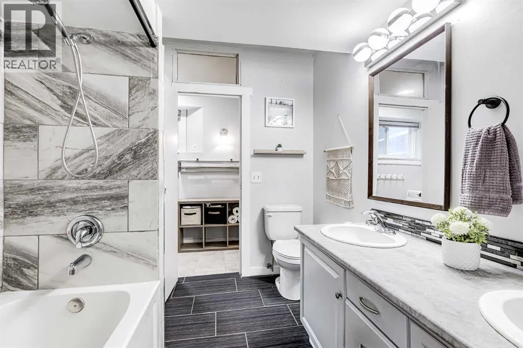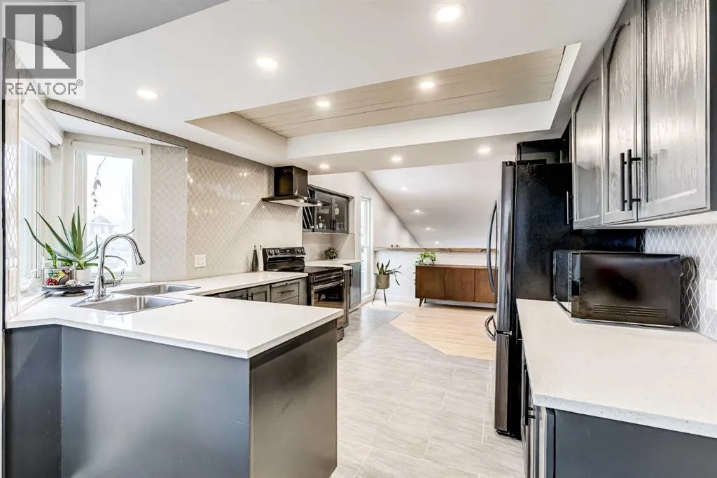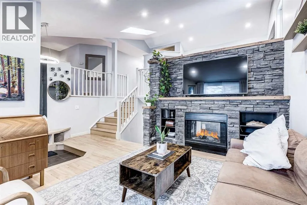 OPEN HOUSE SUNDAY DEC 21 - (12:00-2:00pm). Impeccably renovated residence, ideally situated on a quiet cul-de-sac in the highly sought-after lake community of McKenzie Lake. This property sits on a huge, uniquely shaped lot with convenient alley access, offering rare space for all your needs.This home has been thoughtfully updated, featuring four bedrooms and two-and-a-half modern bathrooms. Highlights of the renovation include sleek new countertops throughout and luxurious, plush new carpeting. The main floor is designed to impress, with vaulted ceilings and a skylight that bathes the entrance in natural light, leading to a bright living room centered around a cozy double-sided feature fireplace.For ultimate comfort, the Kitchen and Dining areas feature in-floor heating throughout.The interior boasts three levels of finished living space, including an awesome, bright den/office on the main floor and a fully finished basement, ensuring ample room for relaxation and entertaining.Outdoor living is maximized with five separate entertaining areas, extensive landscaping, a secure gated area for RV/Trailer storage, a large shed, and tons of extra space for vehicles or recreational toys, all complemented by an oversized HEATED double detached garage. The exceptional location provides effortless walking distance to schools and the exclusive Lake McKenzie facilities, along with quick access to Stoney Trail (22X) and Deerfoot Trail. This home perfectly blends refined style, community access, and unparalleled utility. (id:27476)