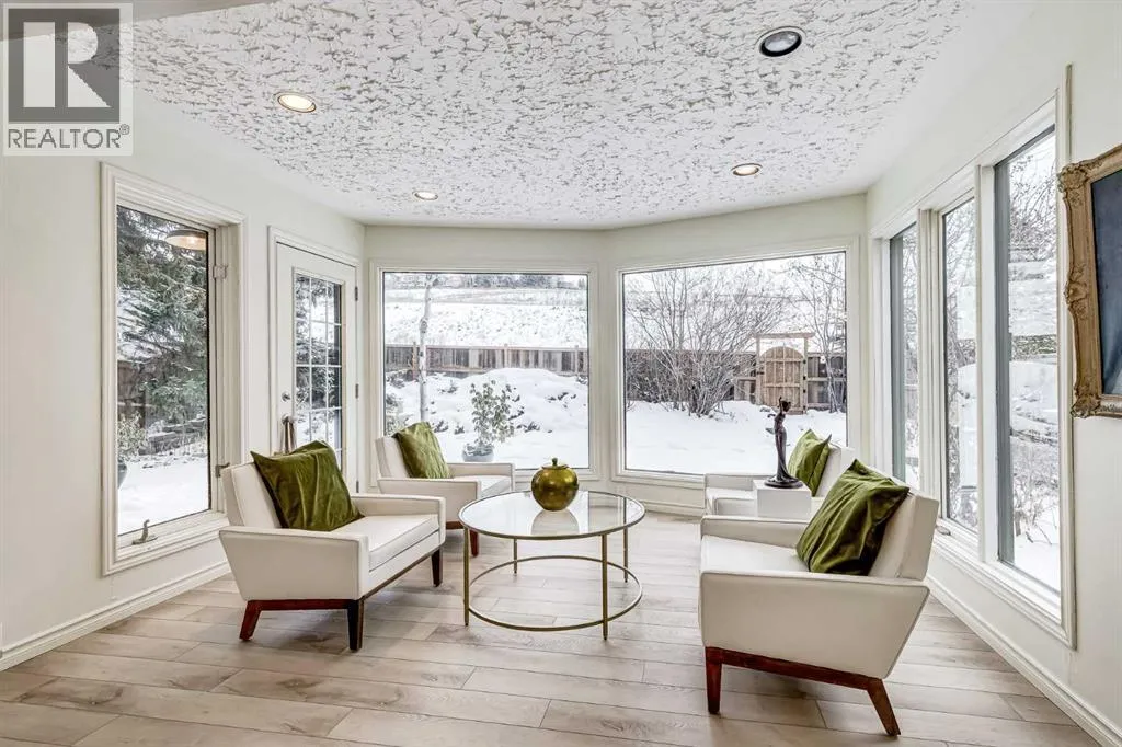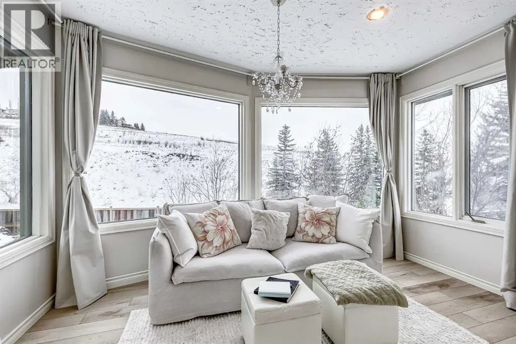 OPEN HOUSE SATURDAY Dec 20 (11:00am-1:00pm). Discover unparalleled elegance in this fully renovated home, ideally situated on a quiet street in the sought-after Edgemont Estate, with a premium location that backs directly onto Nose Hill Park. This unique five-level split offers over 2,900 square feet of developed living space, featuring high-end design and finishes throughout, including a new roof and downspouts for ultimate peace of mind. The spacious layout accommodates four generous bedrooms and three-and-a-half luxurious bathrooms.Enjoy the seamless flow of durable engineered hardwood flooring installed throughout the main living areas, complemented by a gourmet kitchen boasting sophisticated quartz countertops and brand-new appliances, including an induction stove and air fryer. Adjacent to the kitchen is a bright breakfast nook, a half bath, and the dedicated laundry room. The main level features two bright living rooms, one with a dedicated sun-soaked sitting area, and outside, a large deck off the front entrance welcomes guests.The private upper level hosts the primary retreat, which includes its own gorgeous sunroomâthe perfect spot for morning coffeeâplus three additional bedrooms. The beautiful backyard provides direct access to the walking path around the hill park behind the house. It features a perennial garden and professional landscaping designed for loads of fresh cut flowers throughout the summer, all easily maintained by the underground sprinkler system. Finally, the oversized heated garage completes this remarkable, turn-key property. (id:27476)