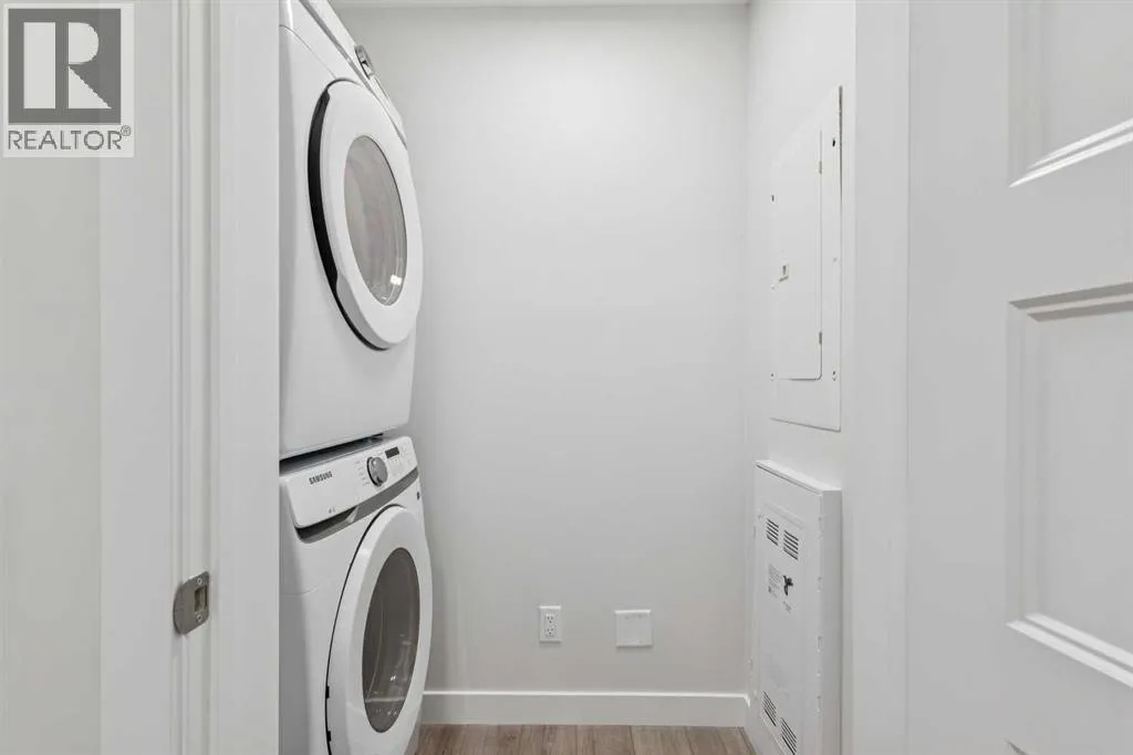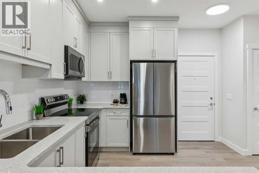 Welcome to The Whitney in beautiful Springbank Hill, where modern design meets natural serenity. This gorgeous suite is ideal for professionals, first-time homebuyers, mature couples, or investors seeking exceptional value in a premium location. Itâs a rare opportunity to own a beautifully finished home in a prestigious neighbourhood - one that offers luxury living at an affordable price. Step into your brand-new 1-bedroom/1-bath home, thoughtfully designed with elevated finishings throughout. The heart of the home is the stunning kitchen, featuring an open layout that feels bright and effortless. Enjoy luxury vinyl plank flooring, quartz counters, upgraded soft-close cabinetry, and stainless-steel Samsung appliances -perfect for gourmet cooking or entertaining. The spacious bedroom offers a true retreat, complete with an extensive walk-through closet that provides exceptional storage and flows into the 4-piece sparkling bathroom. One of the standout features of this home is the generous balcony, adding an impressive 148.8 sq. ft. of outdoor living space - ideal for morning coffee, evening dinners, container gardening, or simply relaxing. Youâll love the comfort and convenience of in-suite laundry and air conditioning. Convenient features continue with titled underground parking, storage, and premium sound attenuation for added peace and quiet. Outside your door, an exceptional lifestyle awaits. Youâre just a 5-minute stroll to Aspen Landing, home to more than 50 shops and services-Safeway, Starbucks, Shoppers Drug Mart, restaurants, banks, and more. The C-Train, transit, and major routes like 17th Ave SW are moments away, making it an easy 10-minute commute to downtown. The upcoming Springbank Hill Market will add even more vibrancy to this already sought-after neighbourhood. With its perfect blend of style, comfort, and walkable urban-meets-nature living, this home is a winner! Book your showing today, as it's move-in ready and waiting for you! (id:27476)