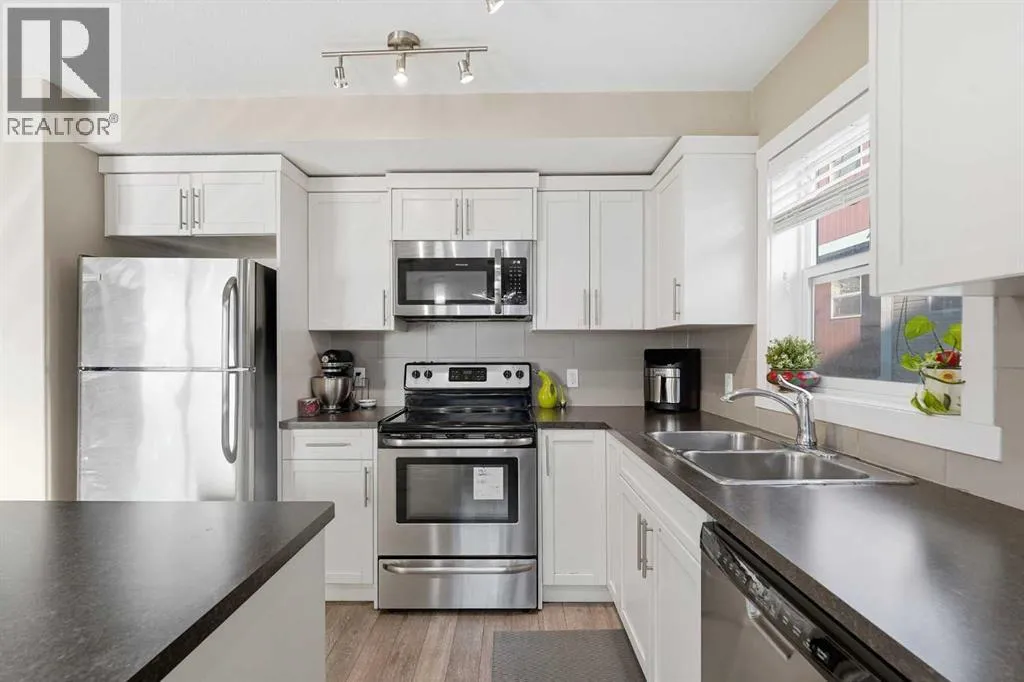 ***CORNER UNIT - PRICED TO SELL! LOW CONDO FEES!*** This beautifully maintained three-storey townhome offers natural lights and modern living. Move in worry-free with recent updates, including a NEW ROOF and repaired siding. Safety is covered with BRAND-NEW FIRE and CO2 ALARMS on every floor. Inside, enjoy an upgraded ceiling light in the dining area and a NEW microwave. The middle-floor washroom features a LARGE SINK and the attached OVERSIZED GARAGE comes with new wall racks for extra storage. Ground Level: Flexible den or private home office, plus access to your SINGLE ATTACHED GARAGE with extra storage room.Main Level: The kitchen boasts rich cabinetry, quartz countertops, stainless steel appliances, and an island with breakfast bar. It flows seamlessly into the dining area and cozy living room. Step out to your sunny BALCONY with BBQ GAS OUTLET, perfect for summer entertaining.Upper Level: Retreat to three spacious bedrooms, including a primary bedroom with VAULTED CEILING, walk-in closets, and a private ensuite. Two additional bedrooms share a full bathroom. Convenience is key with THREE CEILING FANS and a dedicated laundry area on the main level.Located just minutes from schools, shopping, restaurants, the airport, and major routes like Stoney Trail and Deerfoot.Whether youâre a first-time buyer, investor, or growing family, this move-in-ready gem combines style, comfort, and smart updates in one fantastic package. Donât miss your chance and book your private showing today! (id:27476)