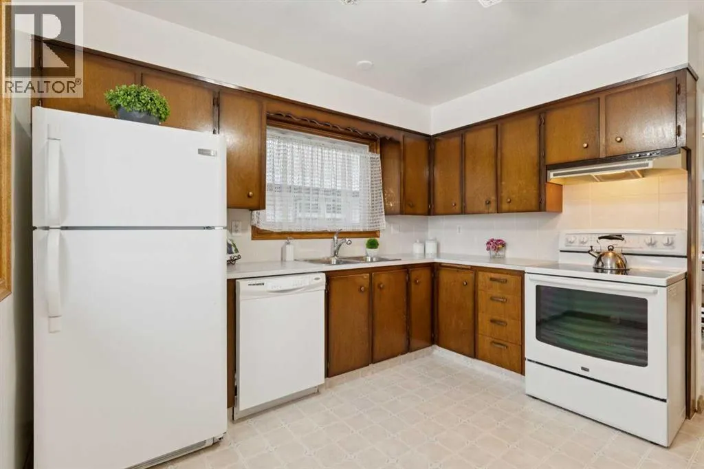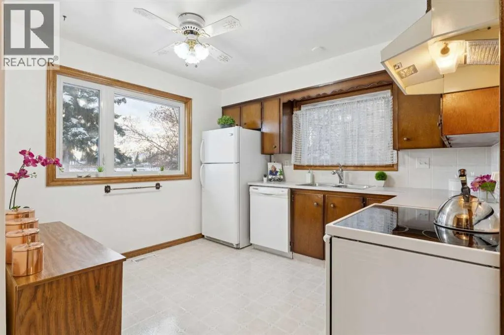 This well-maintained bungalow in Cedarbrae is a standout opportunity for move-up families, renovators, or investors. With 1,281 sq.ft. on the main floor, this home offers space, comfort, and the potential to add value. The layout includes 3 bedrooms and 2 bathrooms on main floor, with a sunken living room featuring a brick fireplace and a dining area with a built-in china cabinet. The kitchen offers plenty of space for a breakfast nook, and the main-floor laundry adds to the everyday convenience. The finished basement expands your options with a fourth bedroom, a full bathroom, large rec room, wet bar, and cold storage. Ideal for guests, extended family, or a future basement suite (subject to city approval). The backyard is a highlight, south facing, backing onto green space and featuring a large concrete patio, a perfect setup for summer evenings or family gatherings. The oversized double detached garage and extended driveway offer plenty of parking and easy yard access. Recent updates include triple-pane windows 2007, a new water tank 2021, and a newer furnace 2014, giving you peace of mind and improved energy efficiency. Located in a quiet, established neighbourhood close to parks, schools, and shopping, this home has been lovingly cared for and is ready for its next chapter. Whether you're moving in, upgrading, or investing. (id:27476)