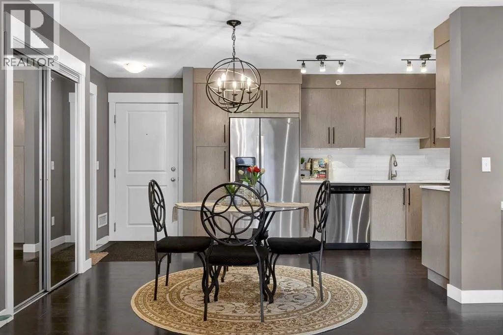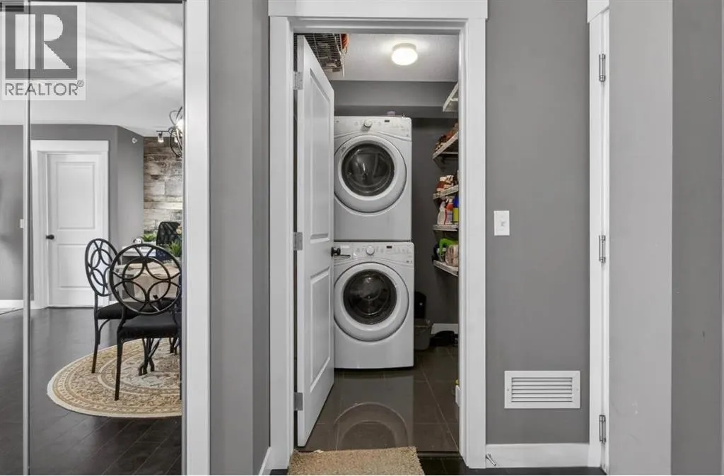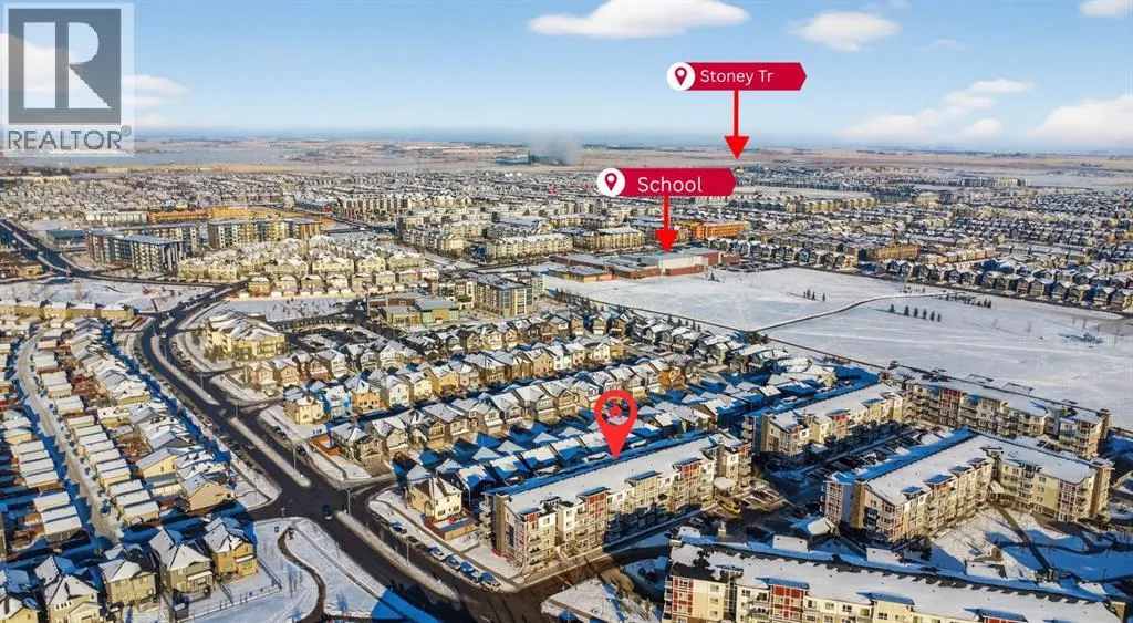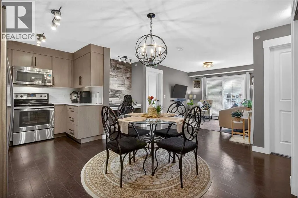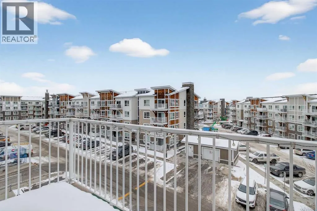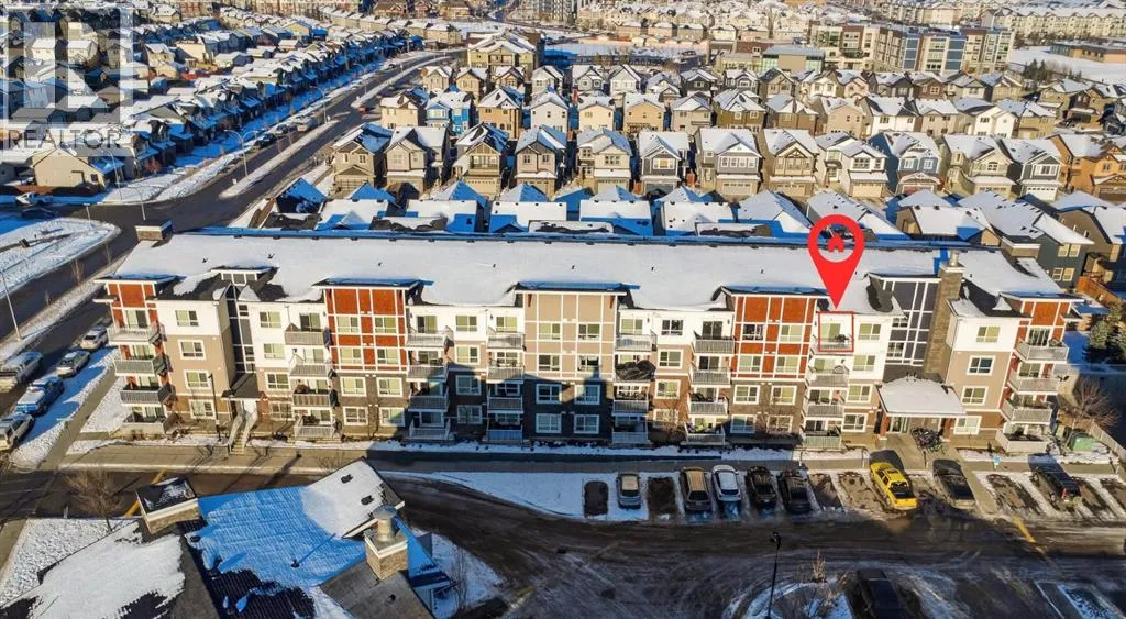 Some homes simply resonate the moment you step inside. This thoughtfully curated 2 â bedroom, 2âbathroom topâfloor unit in Skyview Ranch blends style and substance effortlessly, with every room crafted for comfort, natural light, and connection. Morning sunshine streams through the patio doors, bathing the open-concept living area in a gentle glow. From the living room, sliding glass doors usher you onto a generous balcony overlooking the mountains, where you can savor outdoor meals all summer long. The spacious kitchen, framed with full-height cabinetry and refined finishes, feels both grounded and welcoming, including quartz countertops, stainless steel appliances, in-suite laundry, cork flooring, and carpet. A modern light fixture anchors the dining area, perfectly centering your dining table. A built-in desk area is nestled between the dining and living rooms, offering a convenient place for remote work or school assignments. Both bedrooms are ample and finished with luxurious carpeting. The primary bedroom boasts a walk-through closet that opens into a private 4-piece ensuite with a tub/shower combo. The second large bedroom on the far side of the unit is served by an adjacent 4-piece bath. The in-suite laundry is a welcome convenience and provides sufficient storage. This condo also includes the convenience of a titled underground parking stall, along with an additional storage locker located in front of the stall, perfect for seasonal items. As a resident of Skyview Ranch, youâll enjoy an unbeatable lifestyle with access to schools, shopping, restaurants, parks, and excellent transportation routes, making commuting easy. With quick access to Stoney Trail, Deerfoot Trail, CrossIron Mills, Amazon shipping depot, and The Airport. Youâll be well-connected to go anywhere you want to explore. Schedule your showing today! (id:27476)