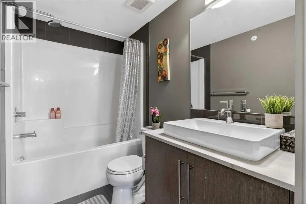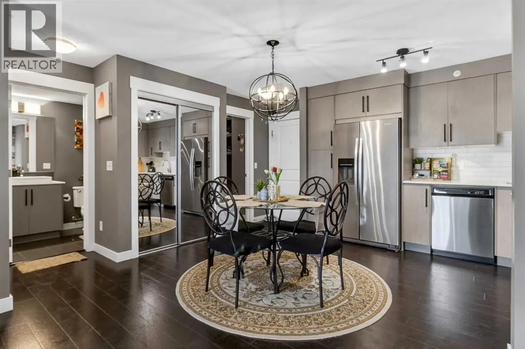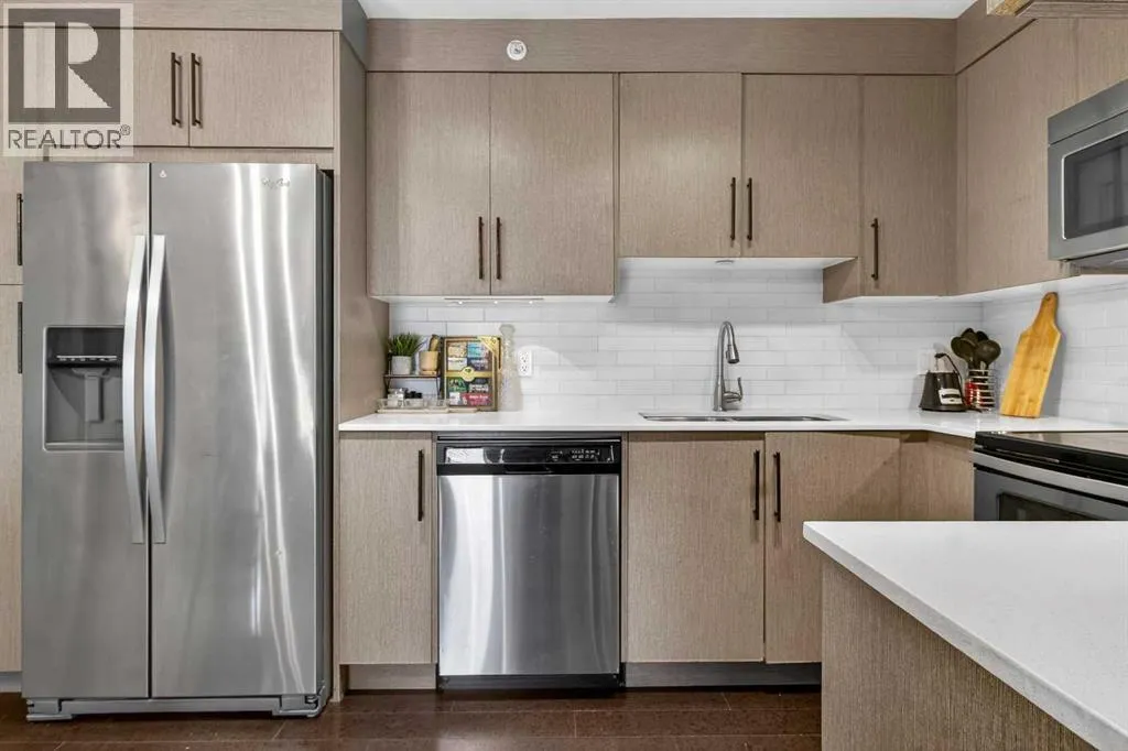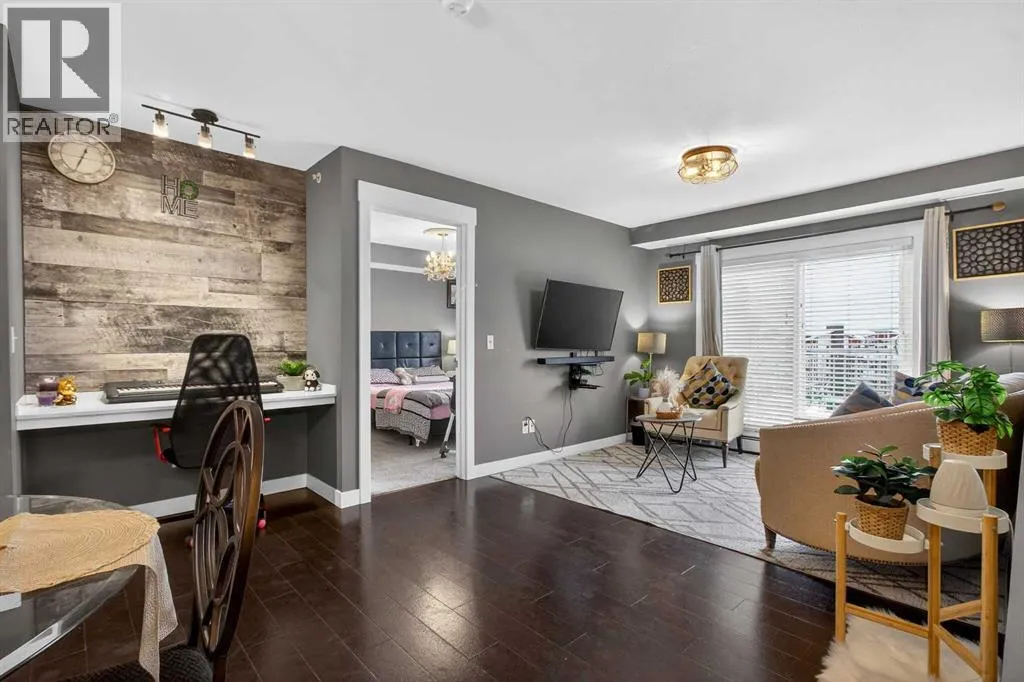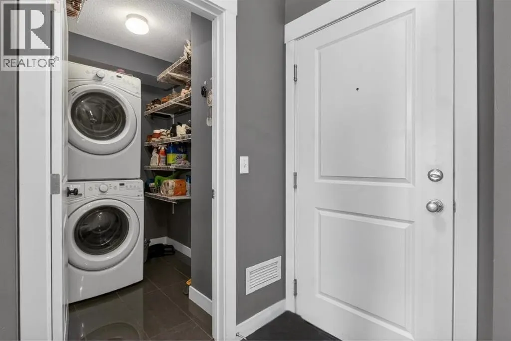 Some homes simply resonate the moment you step inside. This thoughtfully curated 2 â bedroom, 2âbathroom topâfloor unit in Skyview Ranch blends style and substance effortlessly, with every room crafted for comfort, natural light, and connection. Morning sunshine streams through the patio doors, bathing the open-concept living area in a gentle glow. From the living room, sliding glass doors usher you onto a generous balcony overlooking the mountains, where you can savor outdoor meals all summer long. The spacious kitchen, framed with full-height cabinetry and refined finishes, feels both grounded and welcoming, including quartz countertops, stainless steel appliances, in-suite laundry, cork flooring, and carpet. A modern light fixture anchors the dining area, perfectly centering your dining table. A built-in desk area is nestled between the dining and living rooms, offering a convenient place for remote work or school assignments. Both bedrooms are ample and finished with luxurious carpeting. The primary bedroom boasts a walk-through closet that opens into a private 4-piece ensuite with a tub/shower combo. The second large bedroom on the far side of the unit is served by an adjacent 4-piece bath. The in-suite laundry is a welcome convenience and provides sufficient storage. This condo also includes the convenience of a titled underground parking stall, along with an additional storage locker located in front of the stall, perfect for seasonal items. As a resident of Skyview Ranch, youâll enjoy an unbeatable lifestyle with access to schools, shopping, restaurants, parks, and excellent transportation routes, making commuting easy. With quick access to Stoney Trail, Deerfoot Trail, CrossIron Mills, Amazon shipping depot, and The Airport. Youâll be well-connected to go anywhere you want to explore. Schedule your showing today! (id:27476)