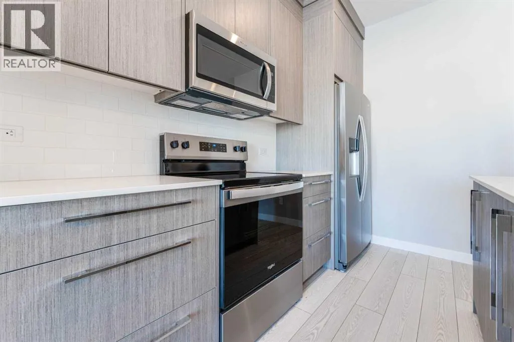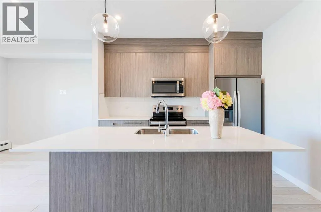 Welcome to 3613, 60 Skyview Ranch Road NE â a bright and thoughtfully designed 2-bed, 2-bath condo offering 708.99 sq ft of modern, comfortable living. This inviting home features durable vinyl plank flooring throughout, tile in both bathrooms, and an abundance of pot lights that enhance the clean, contemporary feel. Large windows fill the space with natural light, creating a warm and open atmosphere. The kitchen is stylish and functional, complete with stainless steel appliances including a microwave hood fan, stove, refrigerator, and dishwasher. Stone countertops, generous drawers, and a convenient breakfast bar make this space perfect for cooking, hosting, or enjoying a relaxed morning coffee. The primary bedroom includes a walk-in closet and a private ensuite with a spacious walk-in shower. The second bedroom is well-sized, with the nearby full bathroom offering a tub/shower combo â ideal for guests or roommates. In-suite stacking laundry adds everyday convenience. This unit includes a titled underground parking stall, access to bicycle storage, and the building features two elevators for easy movement throughout. The community also offers a lovely picnic area, perfect for enjoying sunny days outdoors. Located with quick access to Metis Trail, Stoney Trail, and Deerfoot Trail, commuting is seamless, and youâre just a short drive from the shopping, dining, and entertainment at CrossIron Mills. A great opportunity for first-time buyers, downsizers, or investors looking for comfort and convenience in a well-connected location. (id:27476)