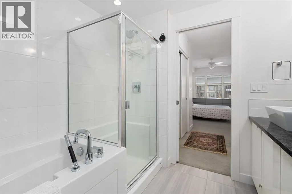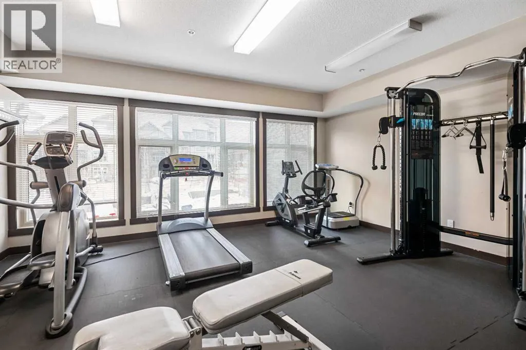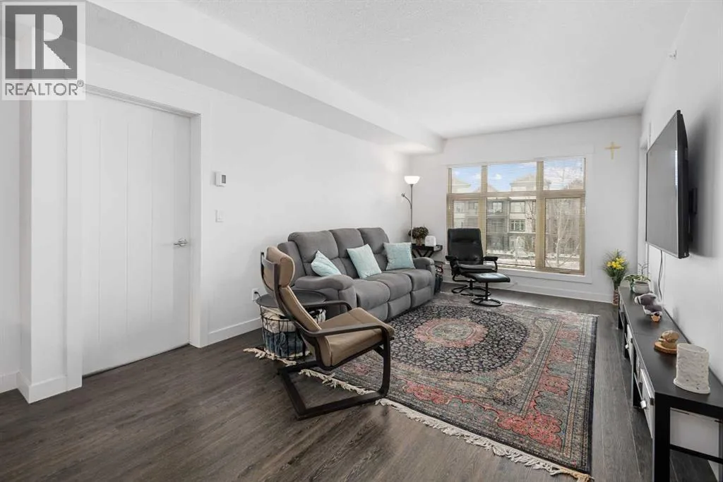 Welcome to Valmont at Aspen! This bright spacious 2 bedroom - 2 bath unit faces SW allowing for plenty of natural light and afternoon/evening sun year around. The well appointed kitchen has plenty of cabinets, stainless appliances, granite counters with waterfall feature and a unique breakfast bar table-top island with seating for 2 and overlooks your large living room. The living room has a door leading to your covered SW facing balcony which overlooks the central green space. There are 2 good sized bedrooms perfect for sharing or guests. The primary bedroom can accommodate a king sized bed and has a walk-through closet leading to the ensuite which has 2 sinks, granite counters, soaker tub and separate shower. The second bedroom is adjacent to the main bath which also has 2 sinks and granite counters. The insuite laundry room has plenty of storage space, plus you have an assigned storage locker. You also have 2 titled parking stalls, 1 in the underground heated parkade and 1 surface stall. The Valemont has a fitness gym and secured bike storage plus is a pet friendly building (with board approval). Just a few steps and you are accessing the walking and bike paths around Aspen Woods Lake. You are also within walking distance of shopping, transit and LRT stop, not to mention you have great access to major throughfares making commuting around the city a breeze. Don't miss out on this amazing home! (id:27476)