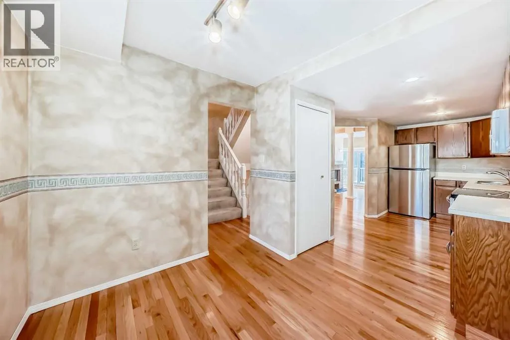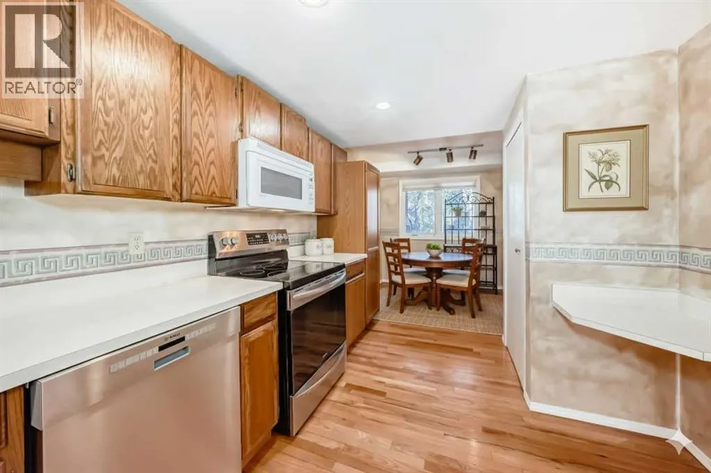 *OPEN HOUSE Sunday, Dec 14 2-4pm* Well cared for and featuring a rare and coveted two-storey floorplan, this Point McKay townhome offers an amazing opportunity to own in one of Calgaryâs most sought after communities. A large entryway welcomes you inside. To your right, the kitchen is a mix of original elements like oak cabinetry with newer appliances, and is sure to spark your remodel dreams. A floating corner desk is an ideal command central, and a full pantry adds to this functional room. Take a break with your favourite beverage in the breakfast nook, or head into the dining area, where the layout is a breathtaking combination of natural light and architectural details as you step down into the living room. Beautiful original hardwood throughout the level adds a warm, homey feel. An original, wood-burning fireplace has the perfect retro-chic aesthetic, complete with a brick hearth and oak mantle. Floor to ceiling windows face southwest, giving you tons of sunlight throughout the day. Sliding glass doors step out to a spacious deck thatâs ready for al fresco meals in the warm months. The final piece is a powder room in the hall to complete the level. Upstairs, the primary bedroom is a perfect canvas for your updates. Ready with a walk-in closet, full ensuite, and a balcony, you will instantly fall in love with this serene retreat. Two more generous bedrooms share a renovated main bathroom, where a sleek tiled shower is the star with both rainfall and angled spray and a bench. In the unfinished basement, your ideas can take root. A laundry area and tidily arranged utility section make it easy to add your ideal living spaces. The single-attached garage has a dedicated furnace, perfect for frost-free parking and year-round hobbies. Outside, the back deck is surrounded by mature trees and backs onto the courtyard pathway, giving your outdoor living area a wonderfully private feel. This communityâs phenomenal locale along the Bow River gives you access to hours of enj oyment, with area pathways and parks just steps from your door. Commuters can get downtown quickly by car or by bike, and proximity to Foothills and the Alberta Childrenâs hospitals as well as the University make this central location excellent for medical and education professionals. Also in walking distance, some of the cityâs restaurant gems are sure to become your go-to, like the Lazy Loaf and Kettle or LICS Ice Cream. Nearby restaurant hotspots like trendy Kensington are only a few minutesâ drive, or you can be passing the city limits headed to the mountains in under ten minutes for all your favourite snow sports and alpine adventures. Ready to make your design inspo, and your lifestyle goals, a reality? See this one today! (id:27476)