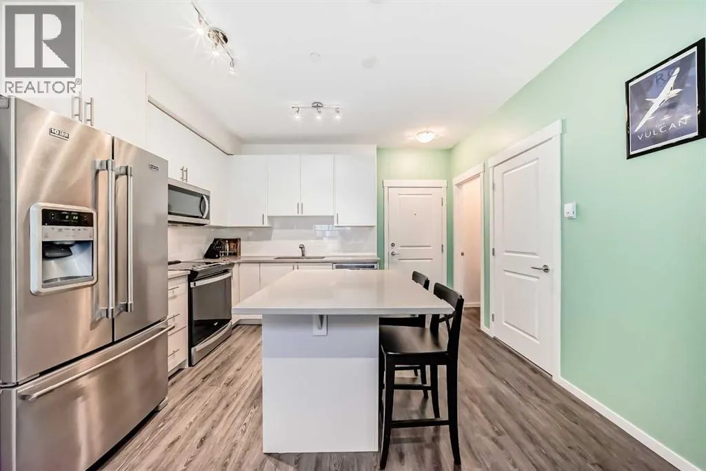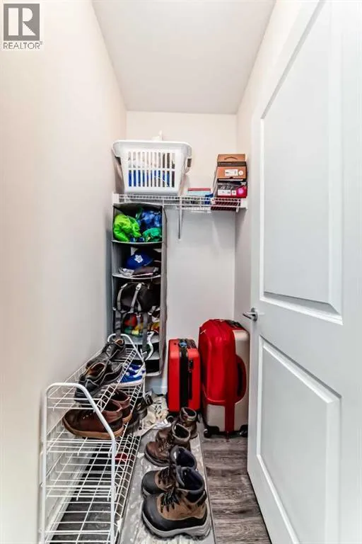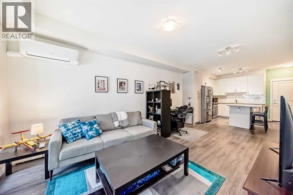 Welcome to Legacy Park II, Building 8000. Built by Brad Remington Homes, this oversized, bright, and tastefully designed 1-bedroom, 1-bath condo offers more than 600 sq. ft. of open, comfortable living space. A modern kitchen features quartz countertops, premium soft-close cabinetry, stainless steel appliances, and clean, stylish finishes. The living area extends onto a private balconyâcomplete with a BBQ gas lineâmaking it the ideal spot for morning coffee or evening relaxation.The spacious primary bedroom features large, light-filled window and a convenient walk-through closet with built-in cabinetry. An in-suite laundry room provides added functionality, with extra space available for future shelving. Additional perks include air conditioning (AC), titled underground parking, and a dedicated storage unit.Thoughtfully built with 9 ft. ceilings, knockdown ceiling texture, plush stain-guard carpeting, engineered floor and wall systems for superior sound attenuation, high-performance low-e windows, and a timeless exterior of brick and premium siding, this home blends comfort with quality craftsmanship.Perfectly located just steps from a full shopping plaza with groceries, dining, gas, and everyday essentials, this condo offers simple, stress-free city living. Ideal for first-time buyers, downsizers, or investorsâthis is a home that truly has it all. Book your showing today and experience why itâs anything but ordinary. (id:27476)