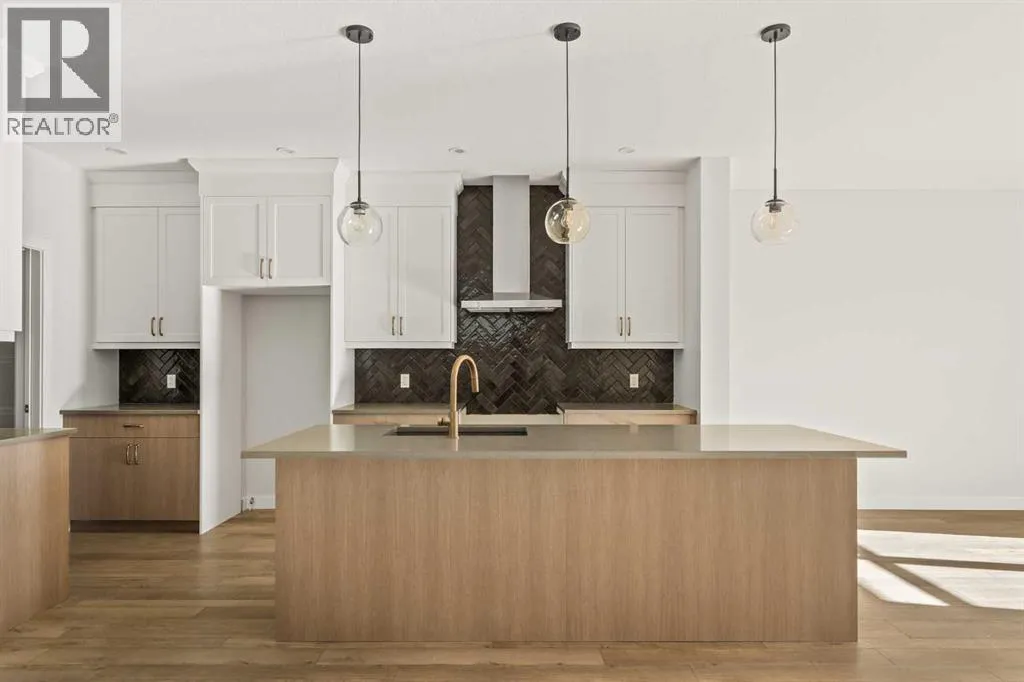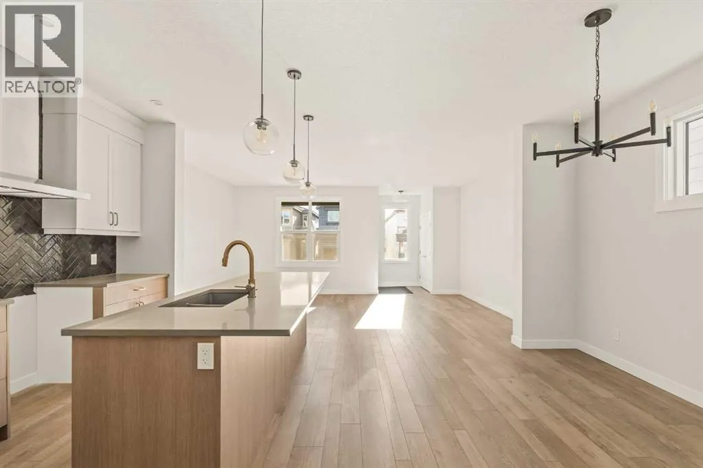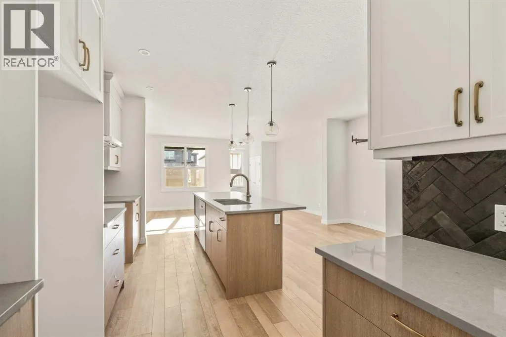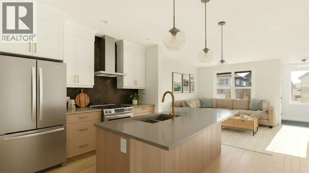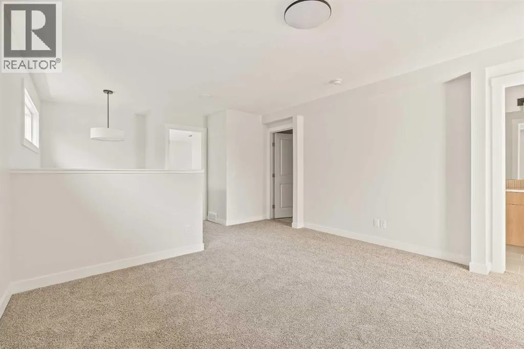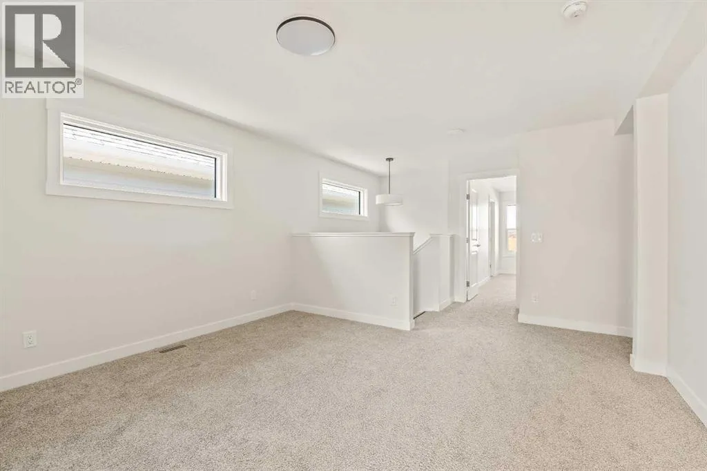 This brand new home, the 'Oxford', is an incredible opportunity in the desirable new community of Rockland Park and ready for immediate possesion! This home is situated on a bright and sunny lot with a southeast facing front yard - allowing natural light to pour through the main level all day long while offering west sun in the backyard during the evening. Featuring 3 bedrooms, 2.5 bathrooms and two living spaces + a home office / flex space and an undeveloped basement with a private side entrance, this property is perfect for investors, multi-generational living or those that want a large family home with space to grow! Built by Brookfield Residential, the Oxford is a stunning home boasting nearly 2,000 square ft. of living space. This open concept main floor has 9 ft. ceilings and extended height cabinets and a large island with a gourmet kitchen package including chimney hood fan, built-in microwave and gas range. The main floor features a large great room with plenty of natural light and a main floor flex space with double doors for added privacy - making it perfect for a work-from-home space! Luxurious and resilient LVP and tile flooring flow throughout the main level, making it perfect for those with children and pets. The upper level features a central bonus room that separates the primary bedroom from secondary rooms. Enjoy the luxury of this large primary suite that spans nearly 13'x13' and is complete with a beautiful ensuite bathroom with dual sinks and a walk-in shower. Two more bedrooms, a full bathroom and a laundry room complete the second level. The basement has direct access via a side entrance and is undeveloped but includes 9' foundation walls and rough-ins for a future suite (subject to City of Calgary approval)! Completing the home is a rear BBQ gas line for daily convenience and a double gravel parking pad with ample space to accommodate a garage if desired in the future. This home is brand new and comes with builder warranty + Alberta New Home Warranty! (id:27476)